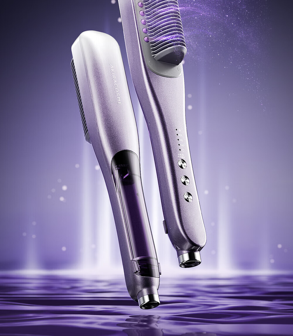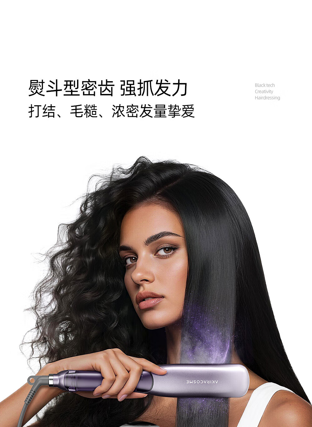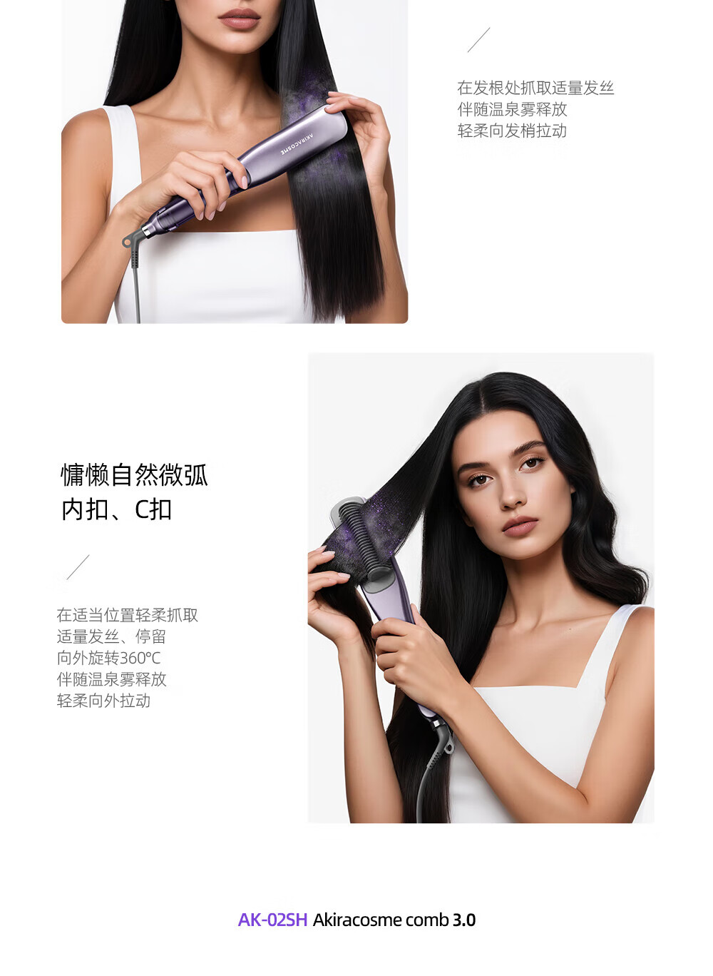 AKiracosme爱极拉蒸汽直发梳熨斗卷直两用负离子护发不伤发持久定型拉直防烫热蒸汽直发AK-02SH【新春礼盒】