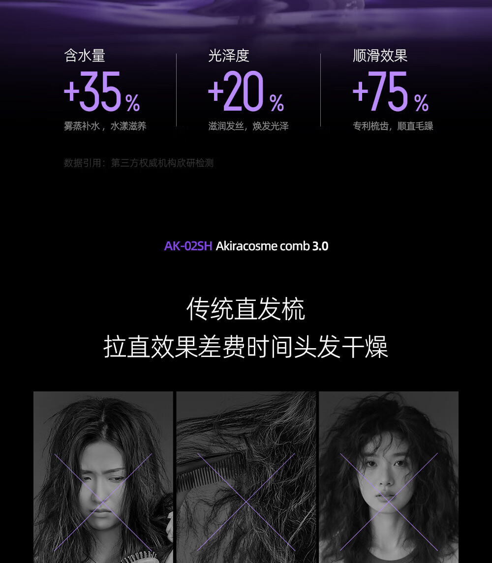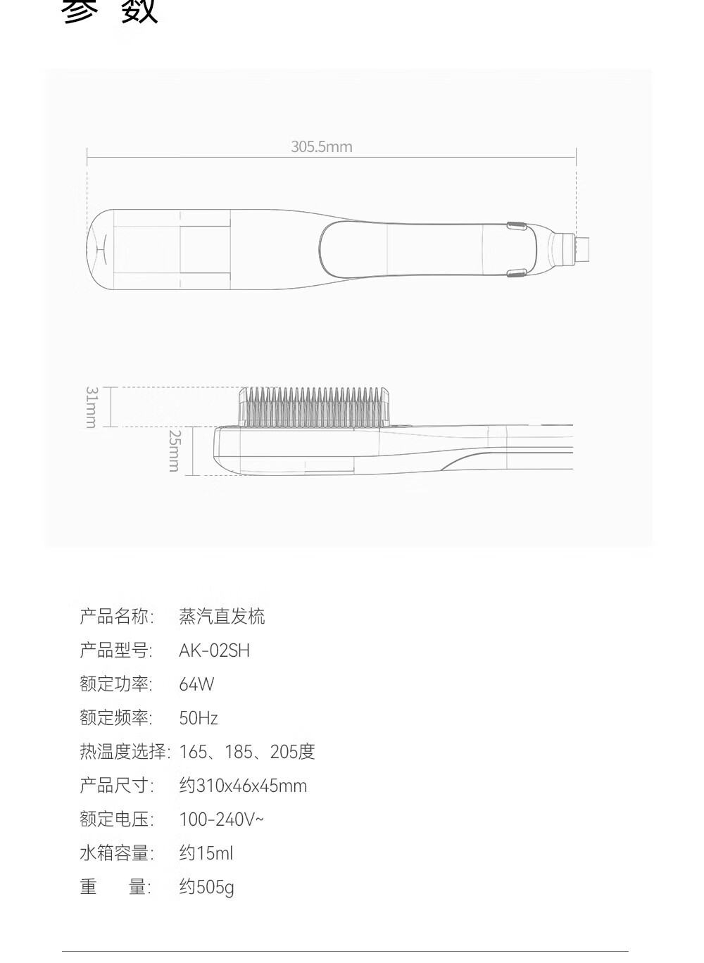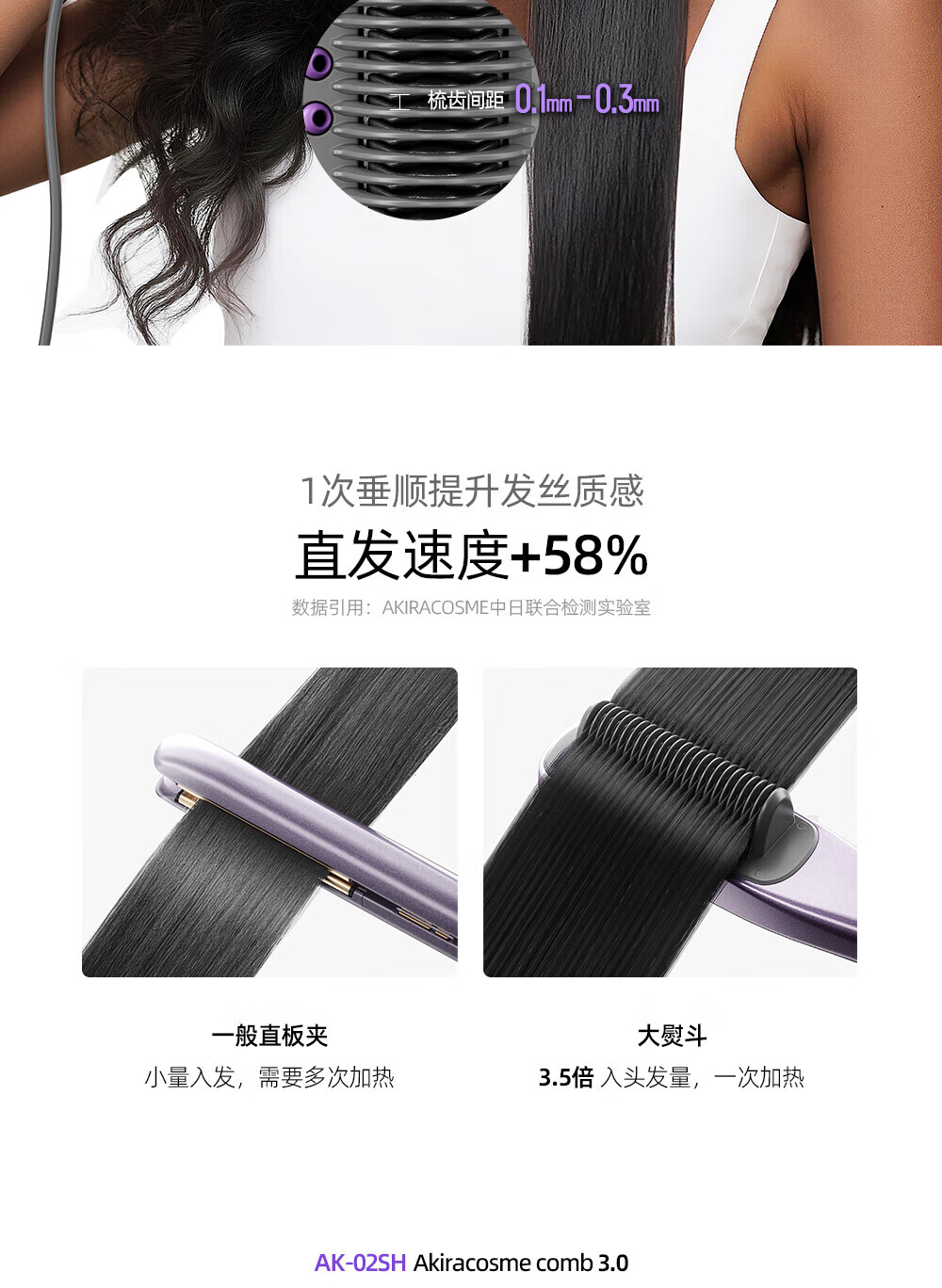 AKiracosme爱极拉蒸汽直发梳熨斗卷直两用负离子护发不伤发持久定型拉直防烫热蒸汽直发AK-02SH【新春礼盒】