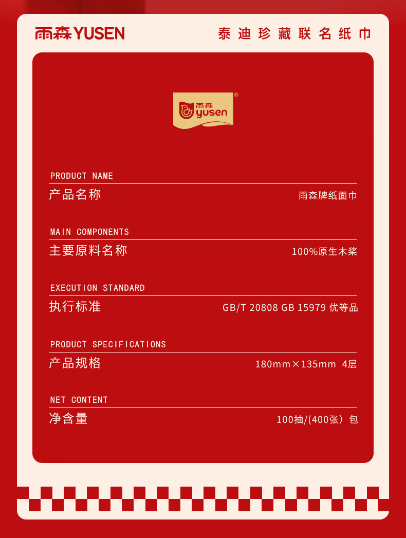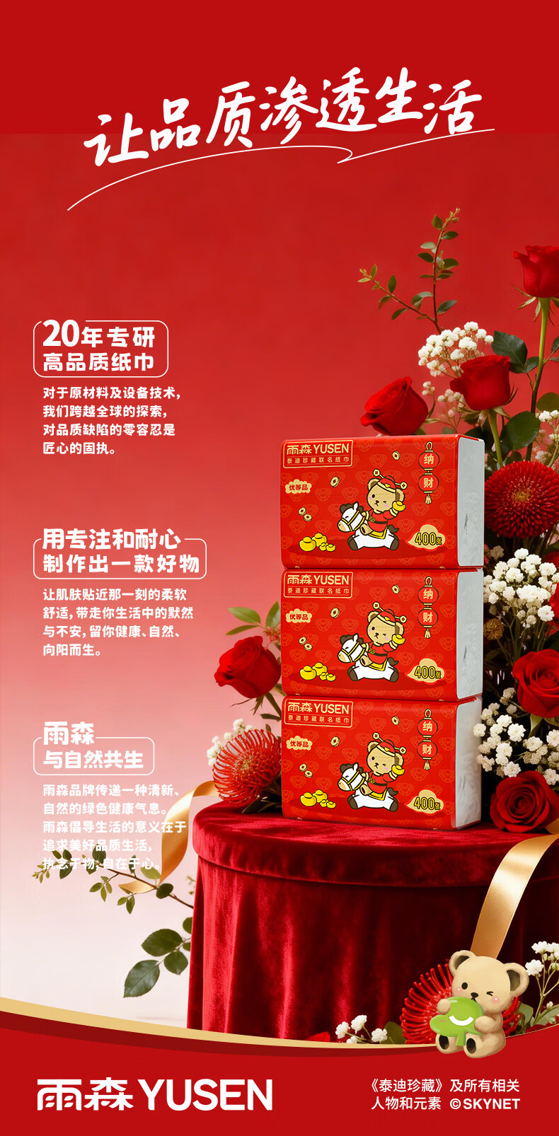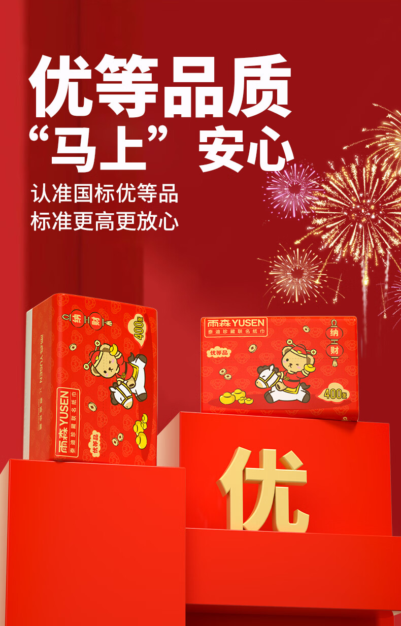 雨森泰迪联名珍藏抽纸400张100%原生木浆纸巾家用纸抽4层加厚餐纸 4层 100抽*12包