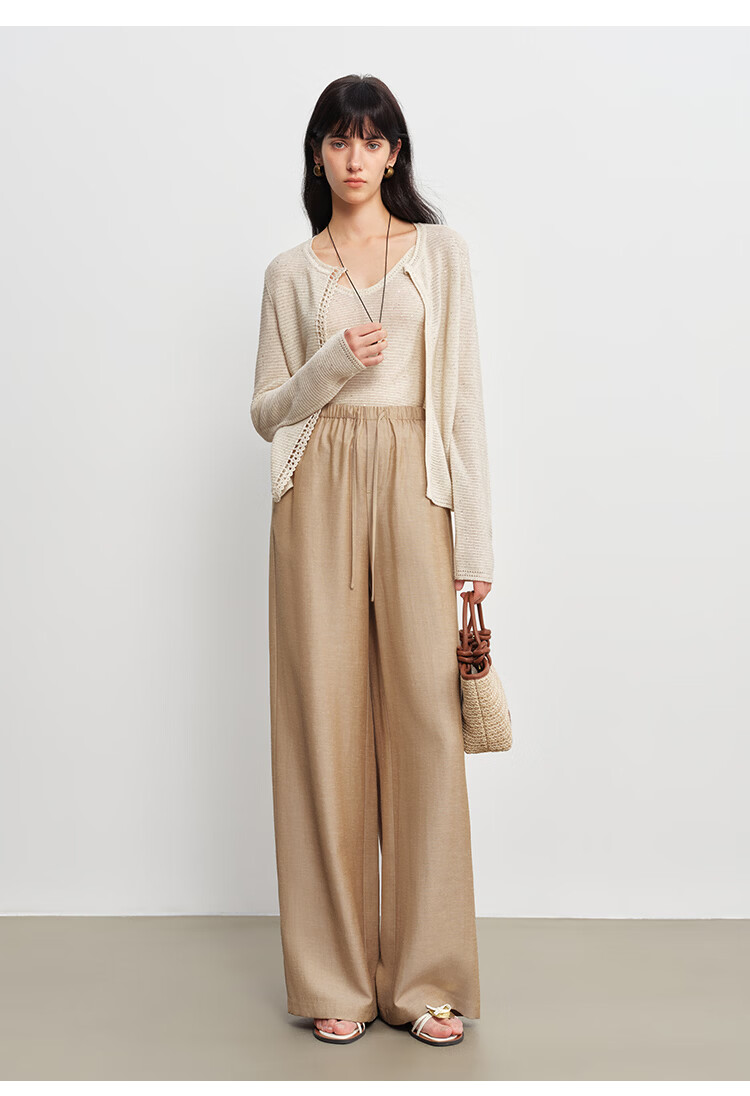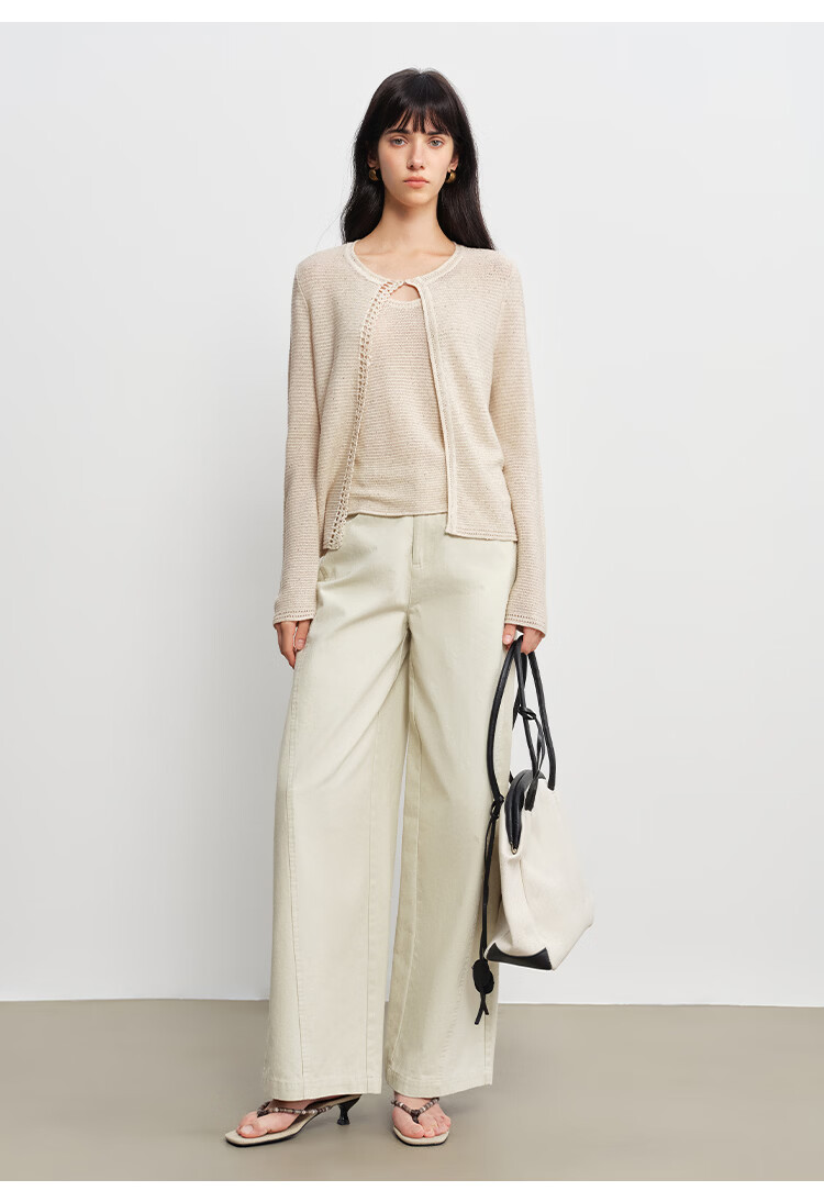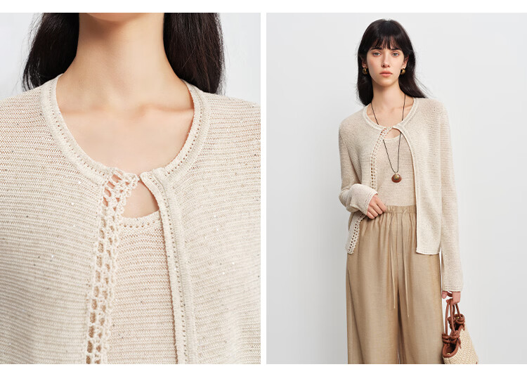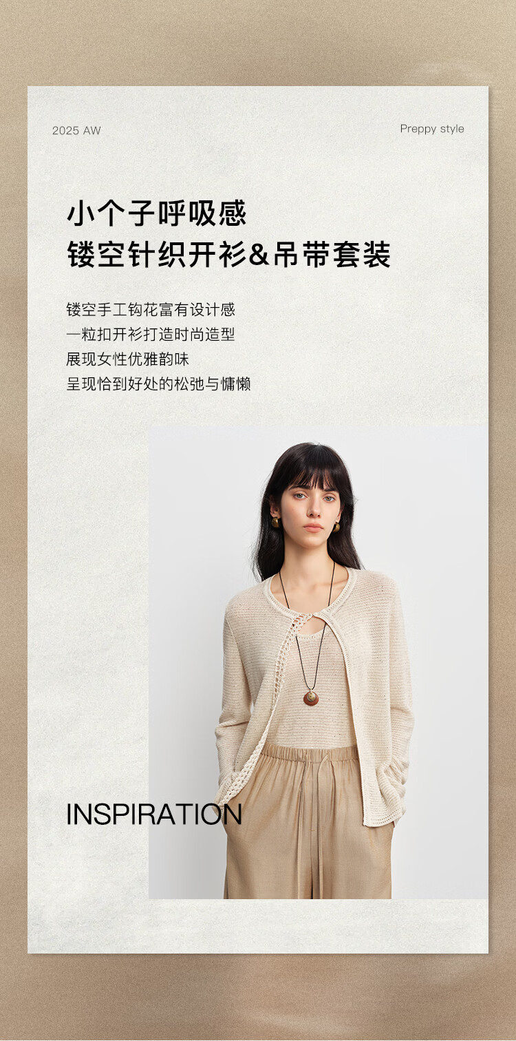 自巧小个子呼吸感手工钩花珠片针织开衫&背心套装女2026春季新品 巧米色背心 均码 JM