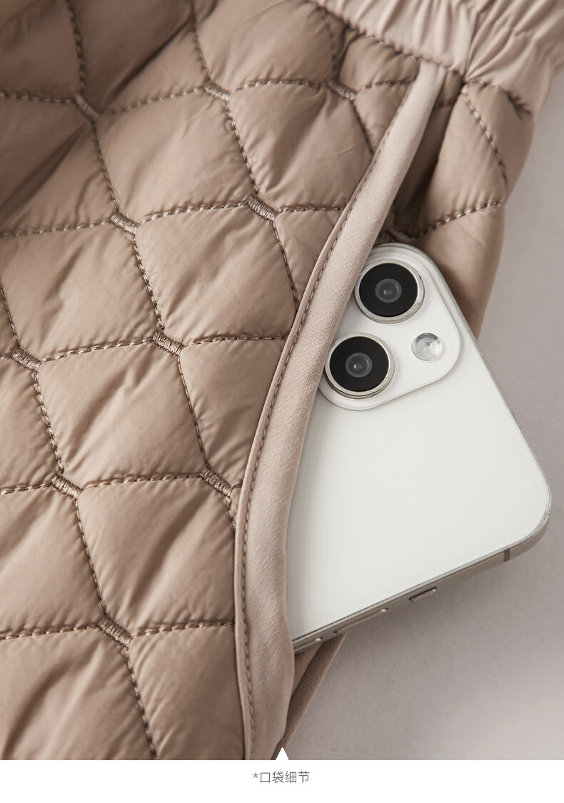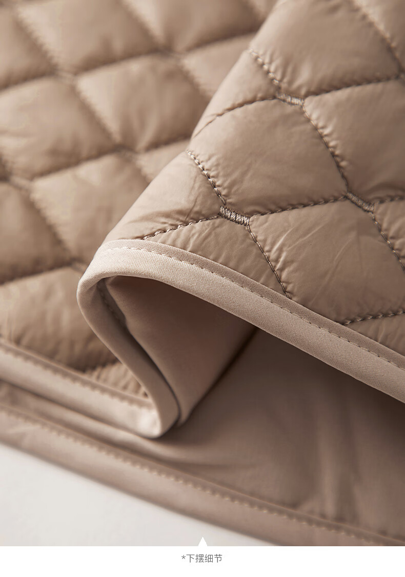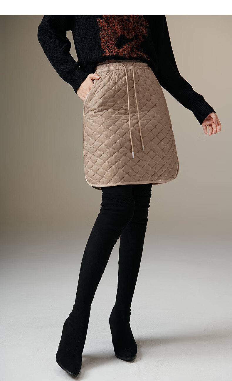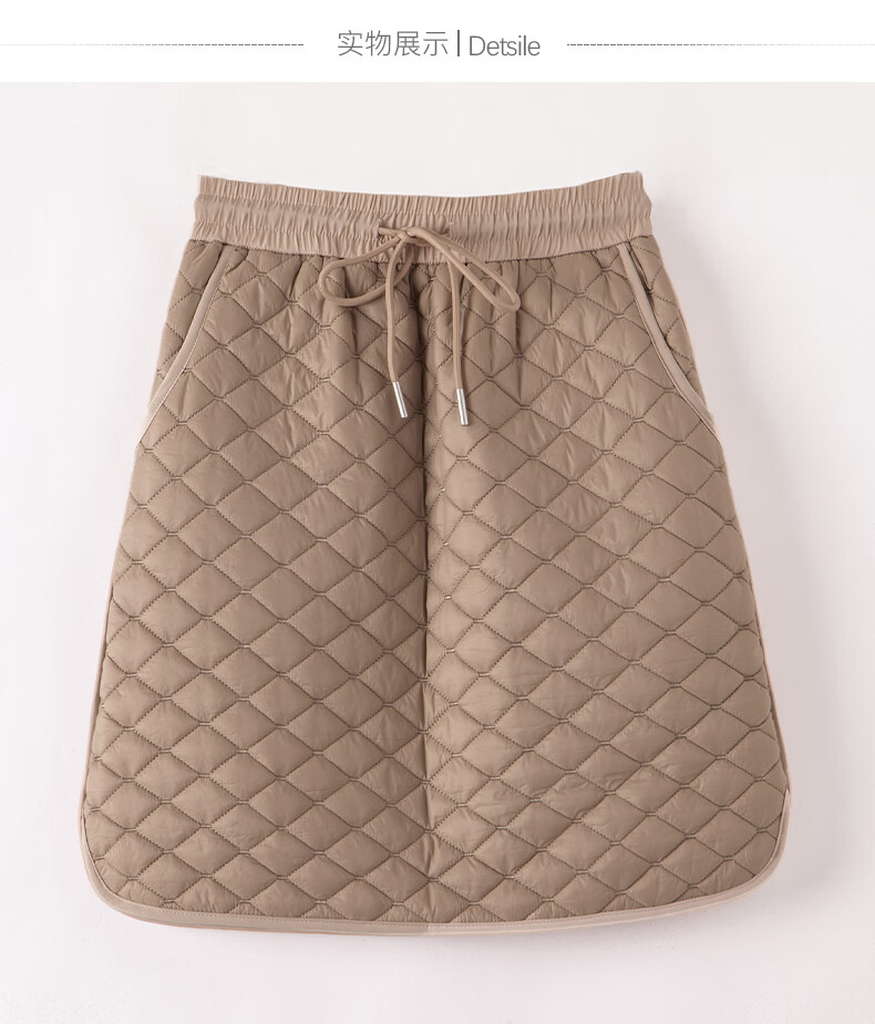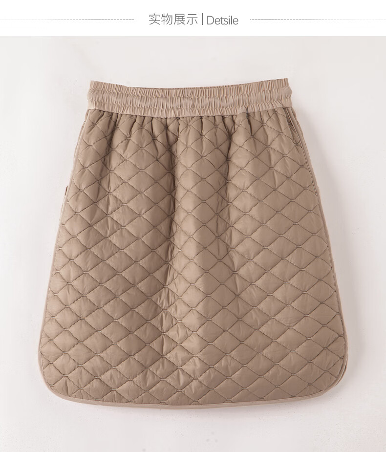 晚白【专享】2026年春款经典菱格纹半裙高腰修身夹棉保暖小A短裙 卡其色 S