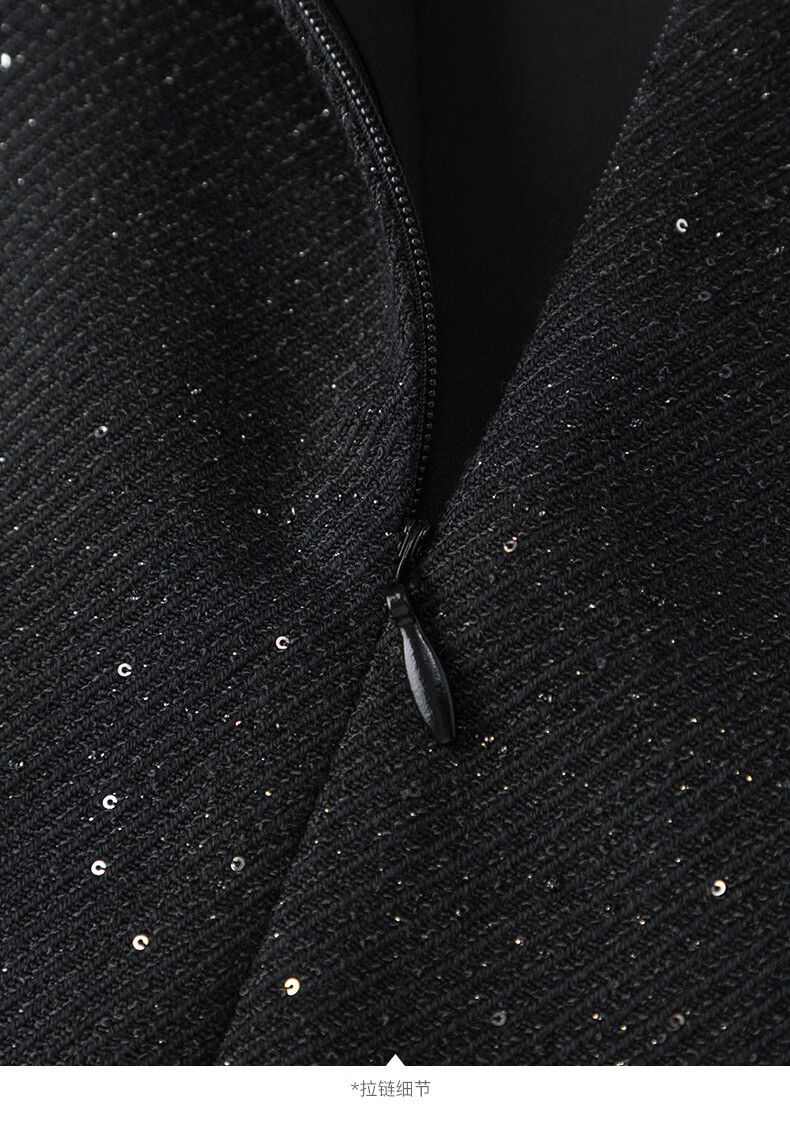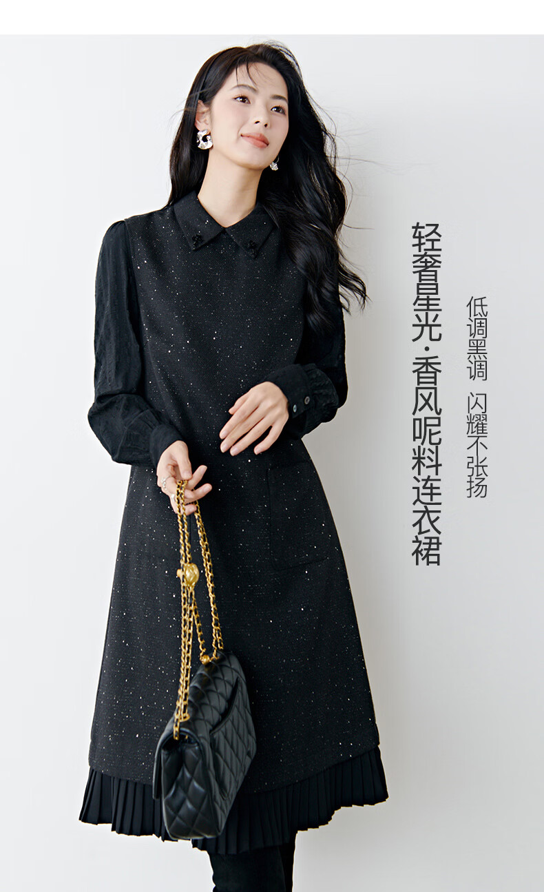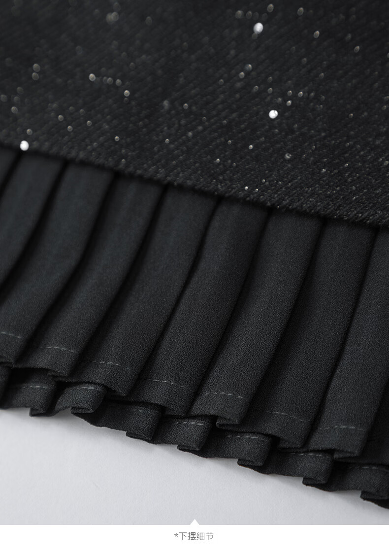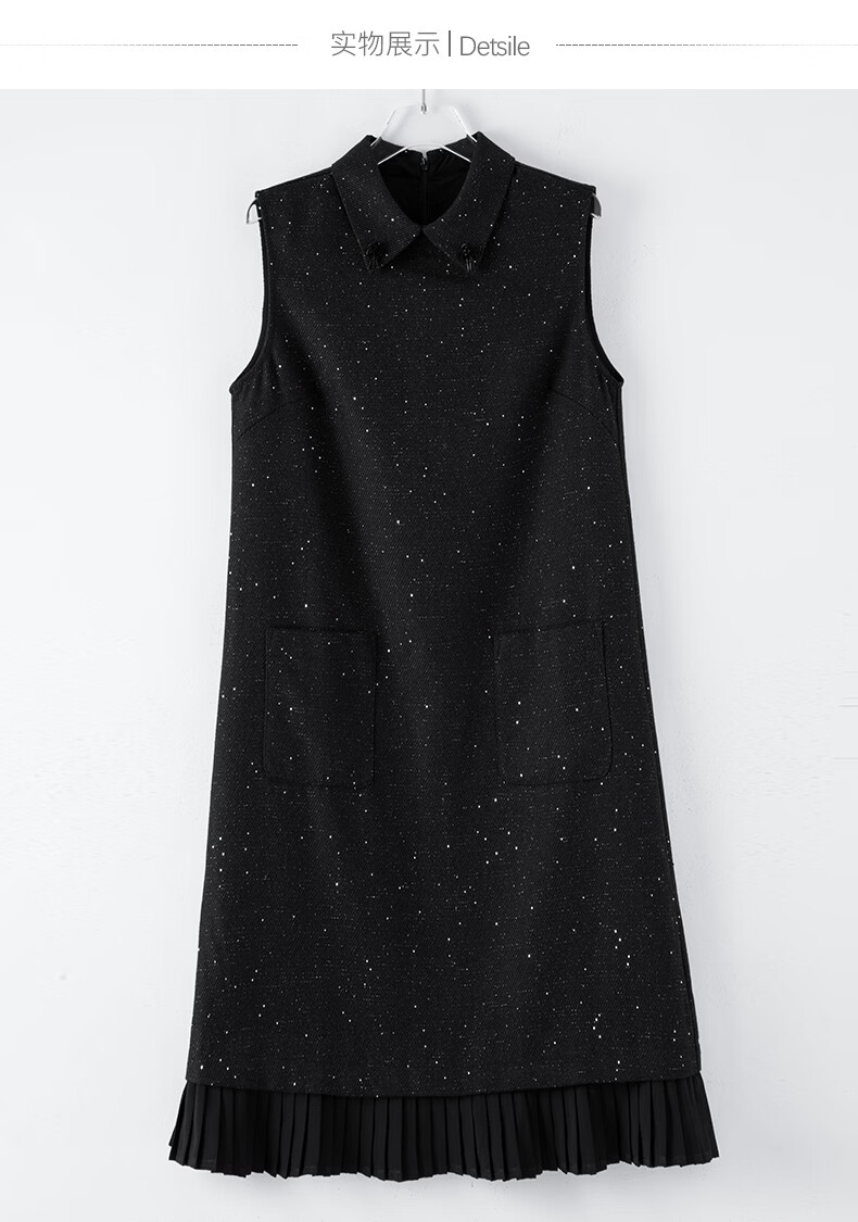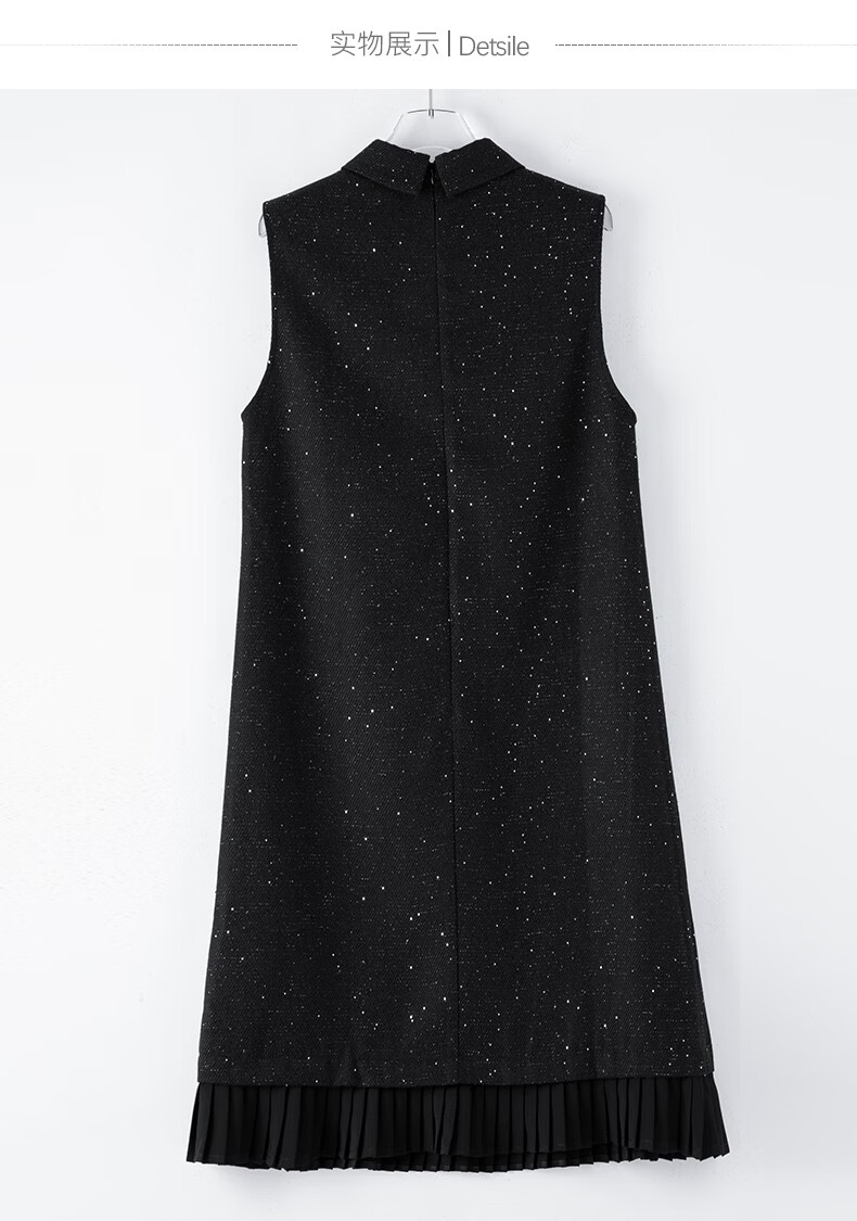 晚白亮闪闪小香风花呢背心裙2026春款时尚拼接百褶显瘦无袖连衣裙 黑色 M