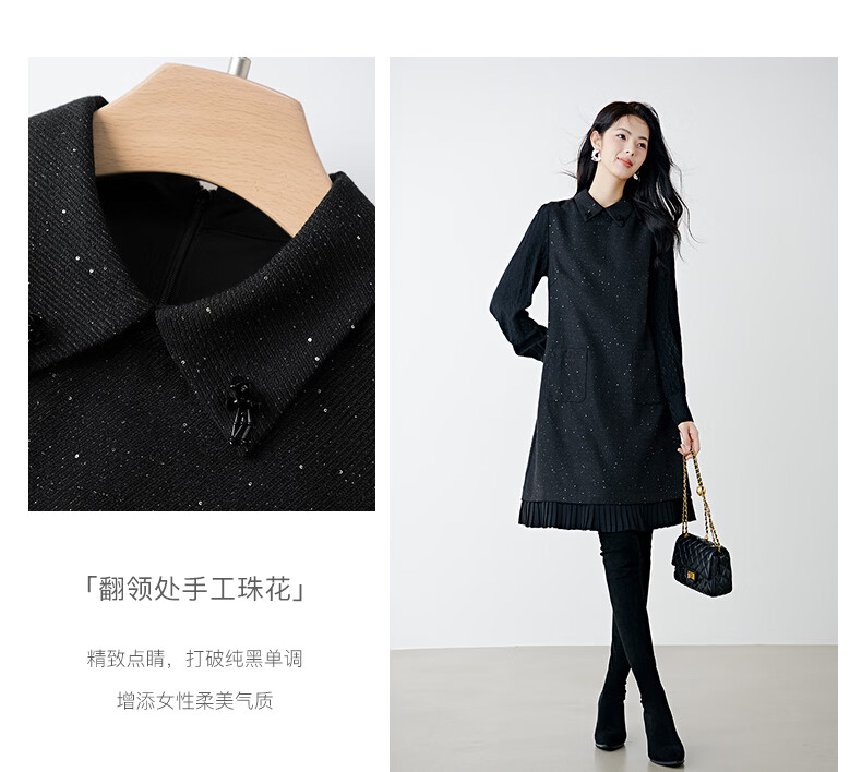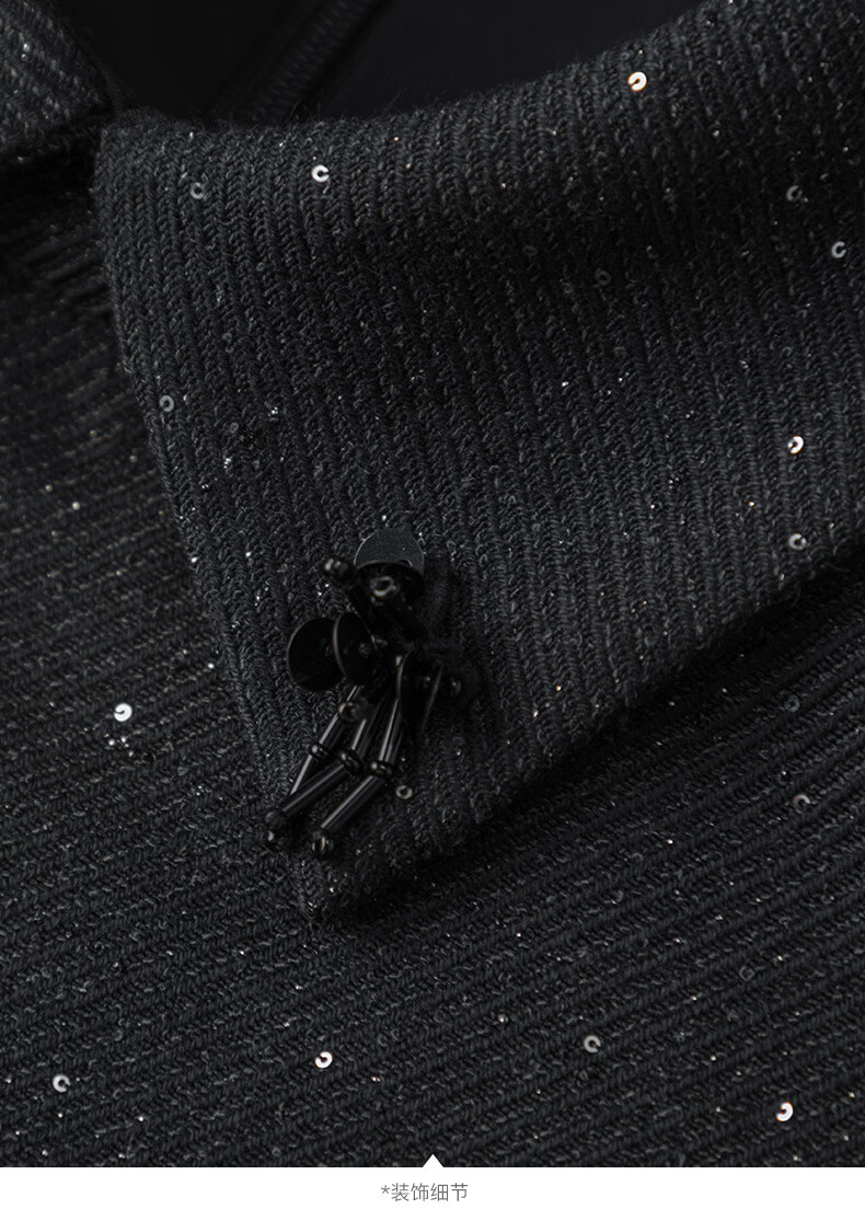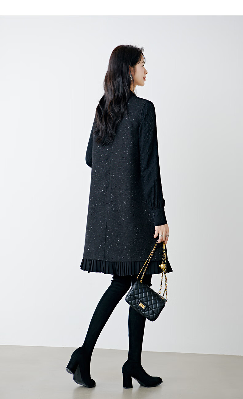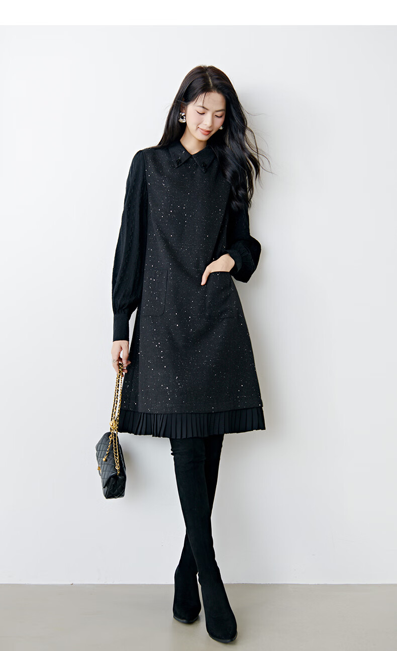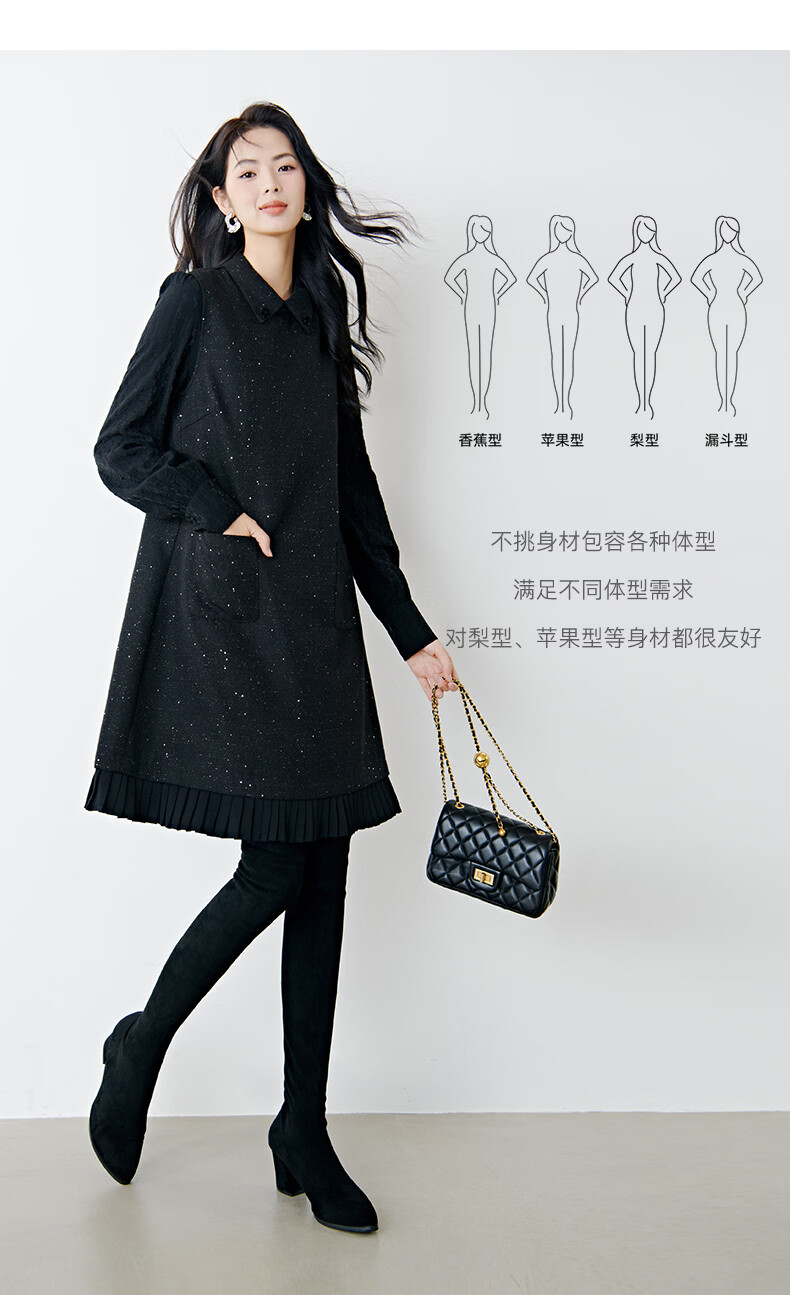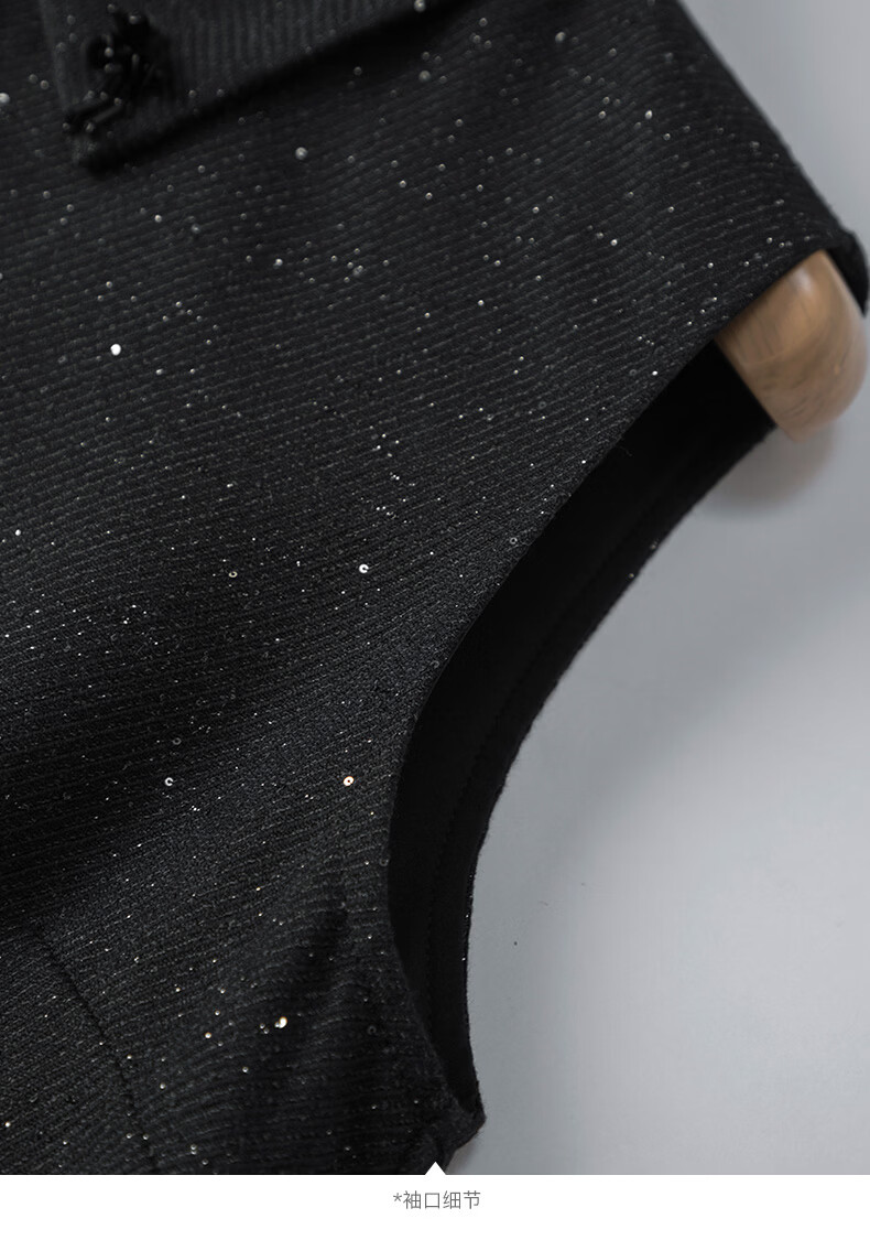 晚白亮闪闪小香风花呢背心裙2026春款时尚拼接百褶显瘦无袖连衣裙 黑色 M