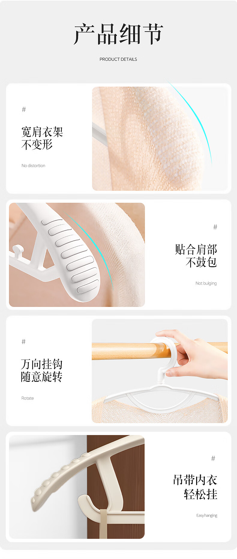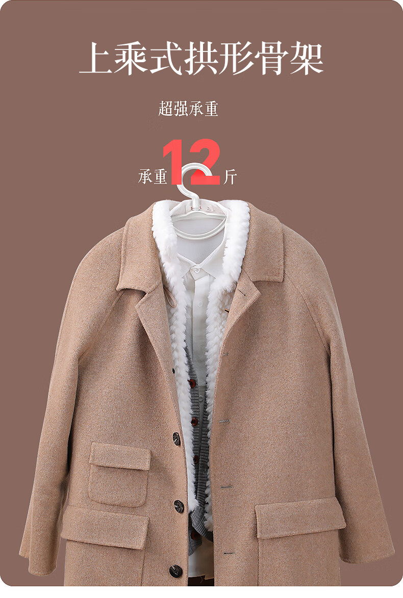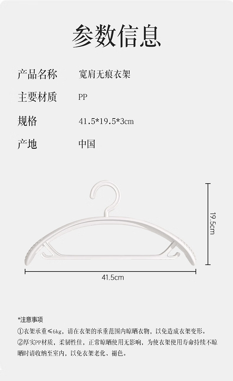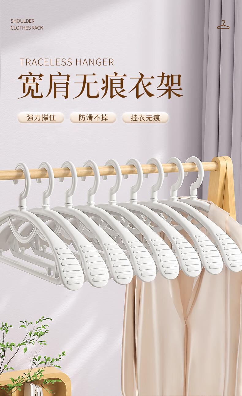 妙馨思无痕衣架成人衣服架子撑子挂衣架撑晾衣架子无痕防滑挂钩衣柜裤架 宽肩大衣架【10个装/灰色】