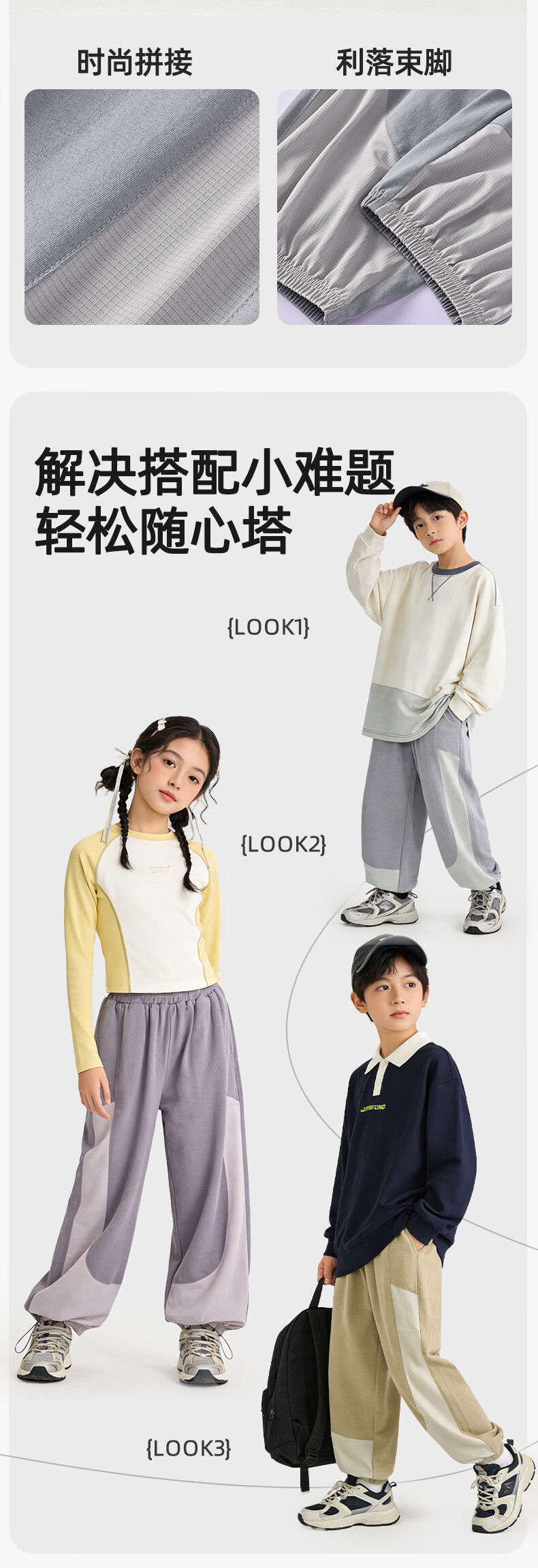 马克华菲(MARK FAIRWHALE)2026男女童裤子春秋款透气儿童户外拼接冲锋裤中大童运动裤 纯色紫色 170