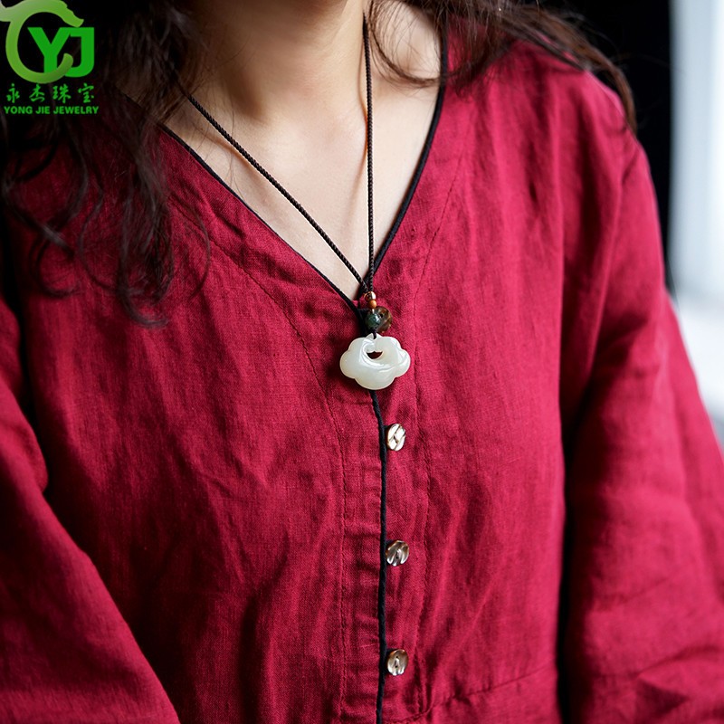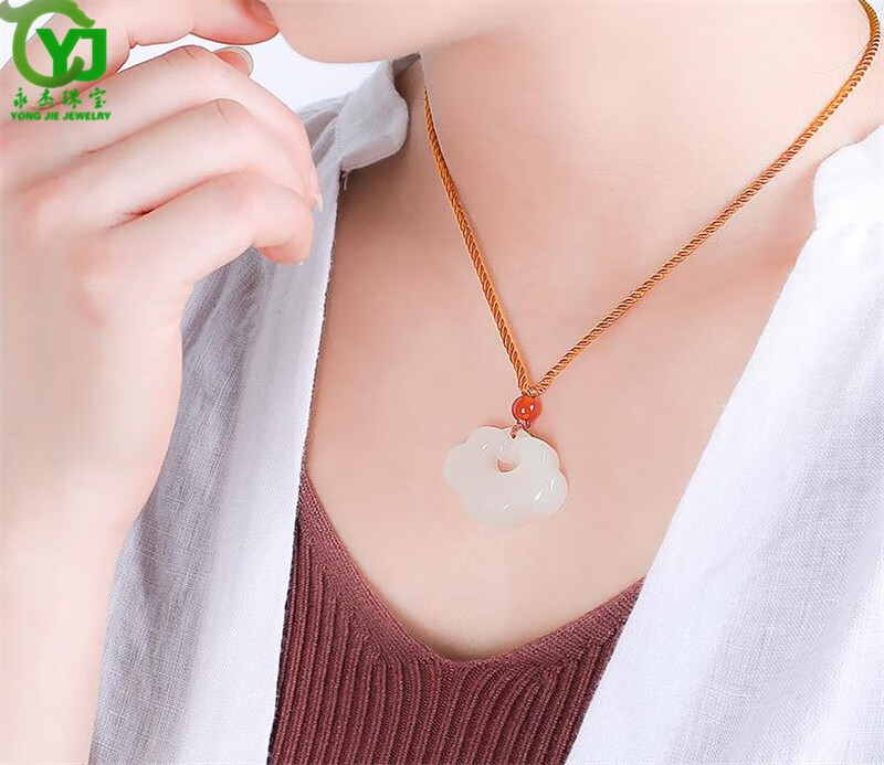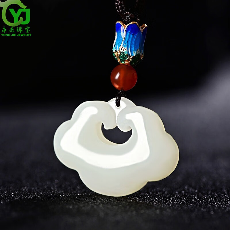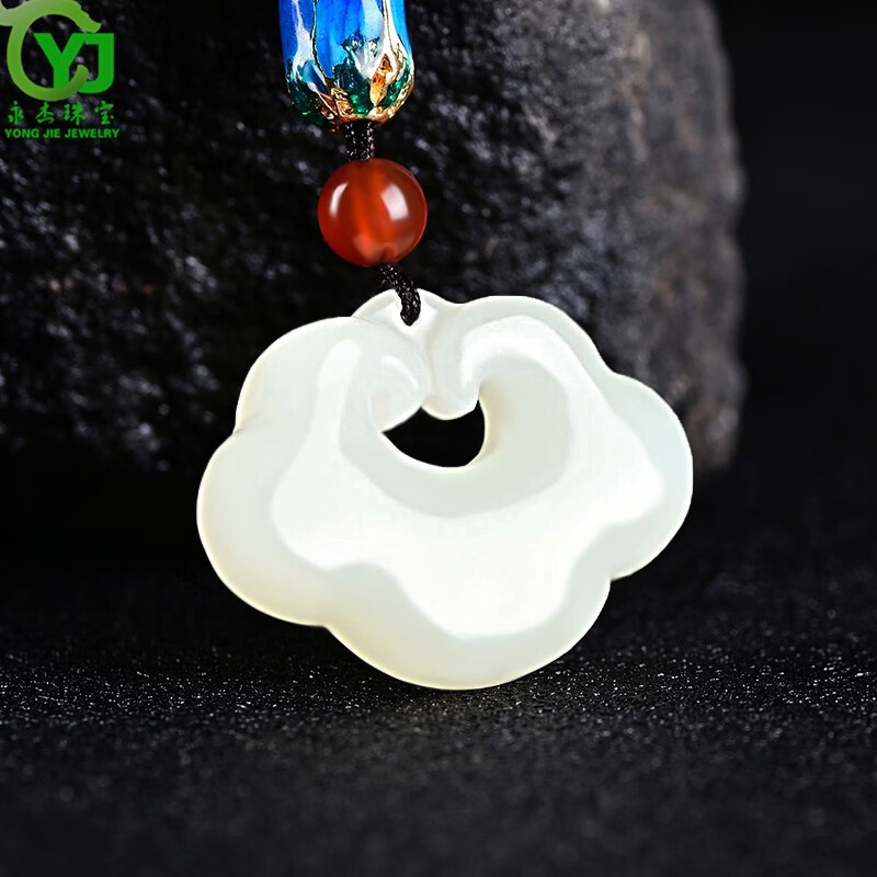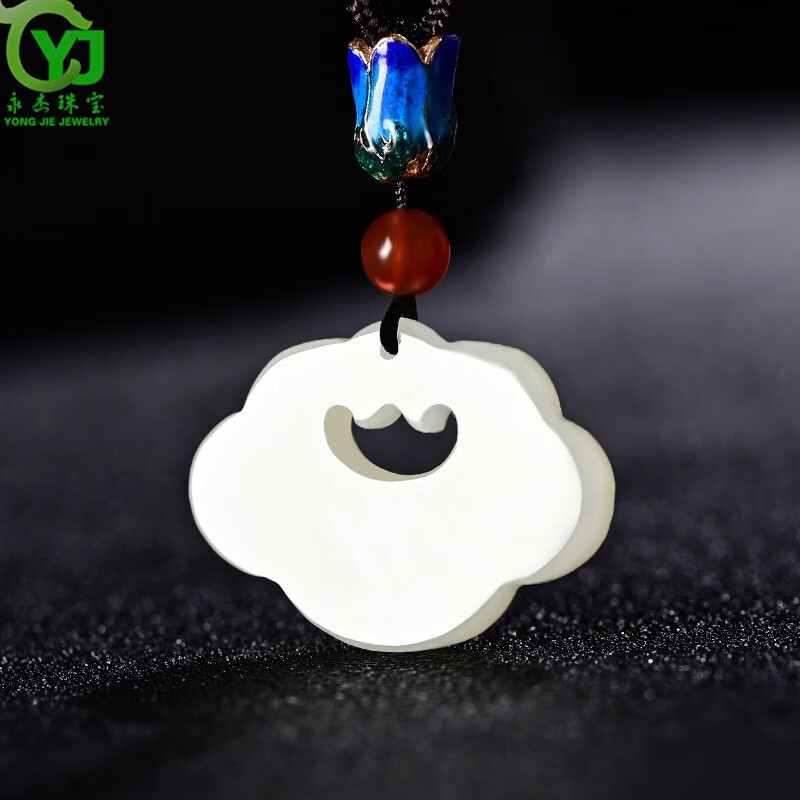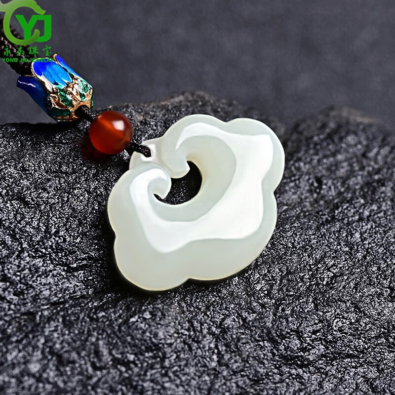 永杰珠宝 原创新款和田玉吊坠平安锁白玉百岁锁宝宝男女款礼物带证书