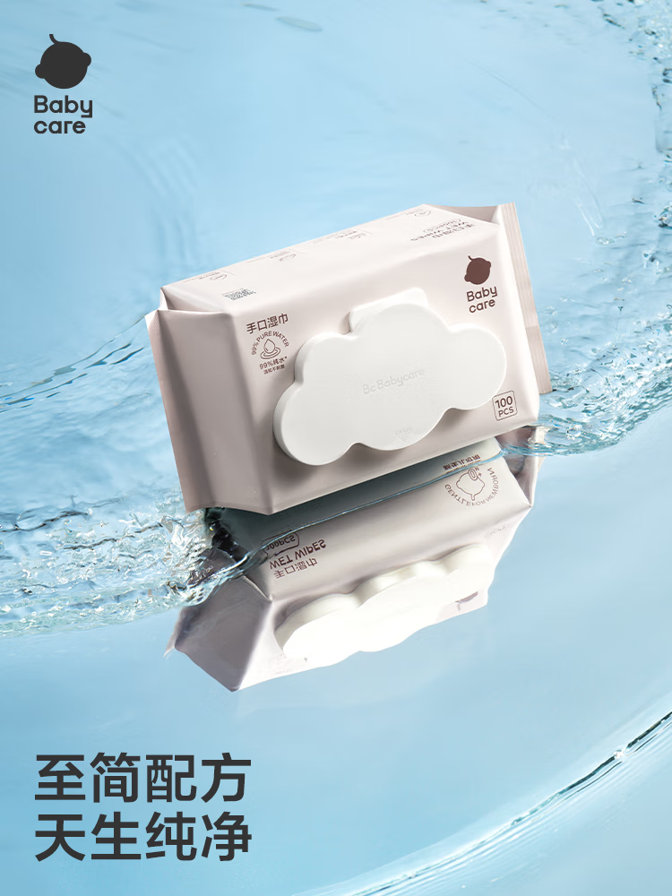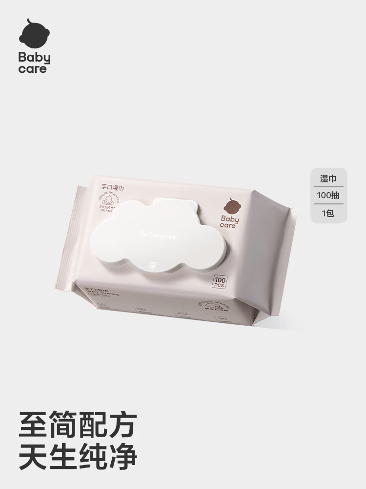 babycare 粉盖湿巾婴儿湿巾新生儿手口湿纸巾 宝宝带盖加厚 100抽 12包