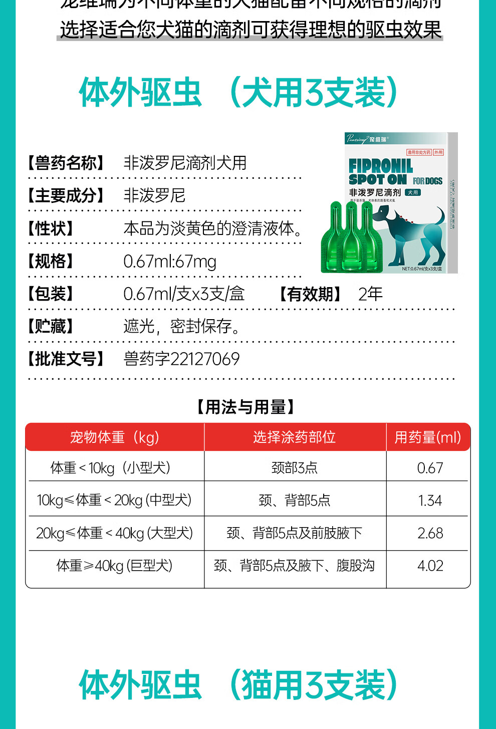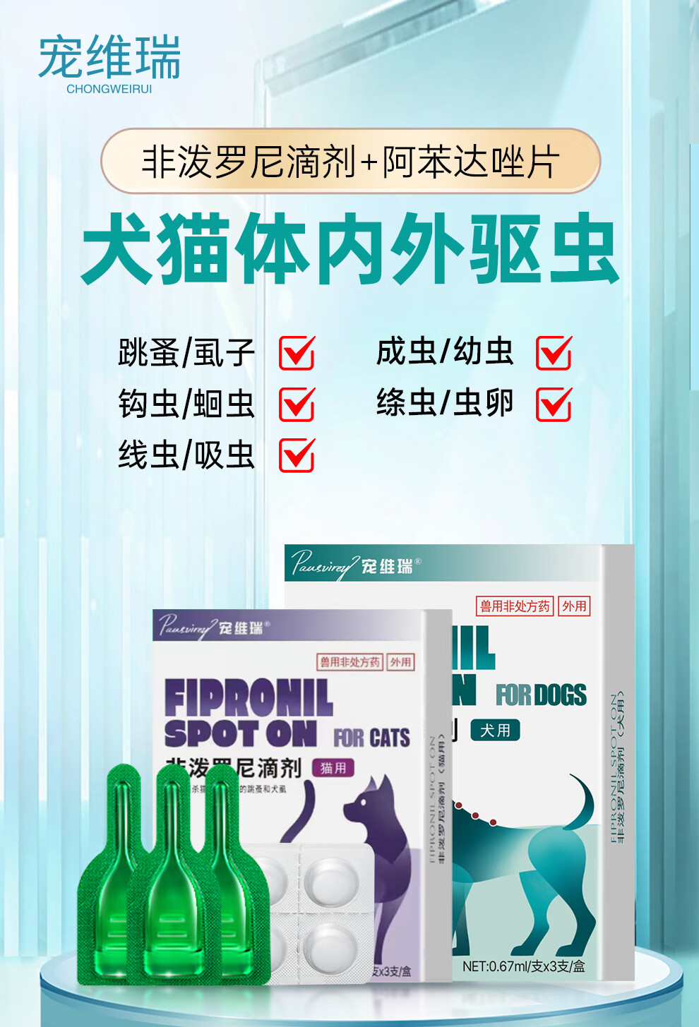 宠维瑞猫咪狗狗驱虫药体内外一体同驱幼猫幼犬跳蚤蜱虫虱子非泼罗尼滴剂 【猫用】丨体外驱虫6支丨体内驱虫4片丨3盒