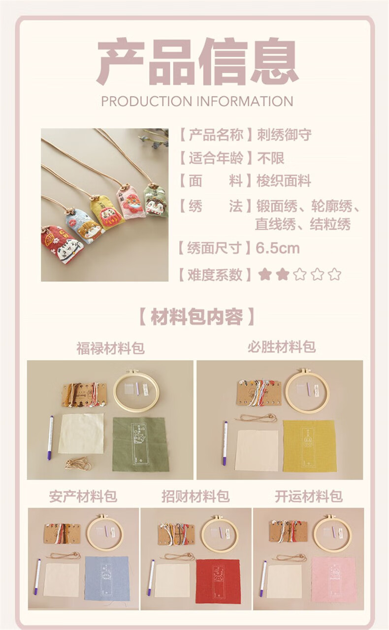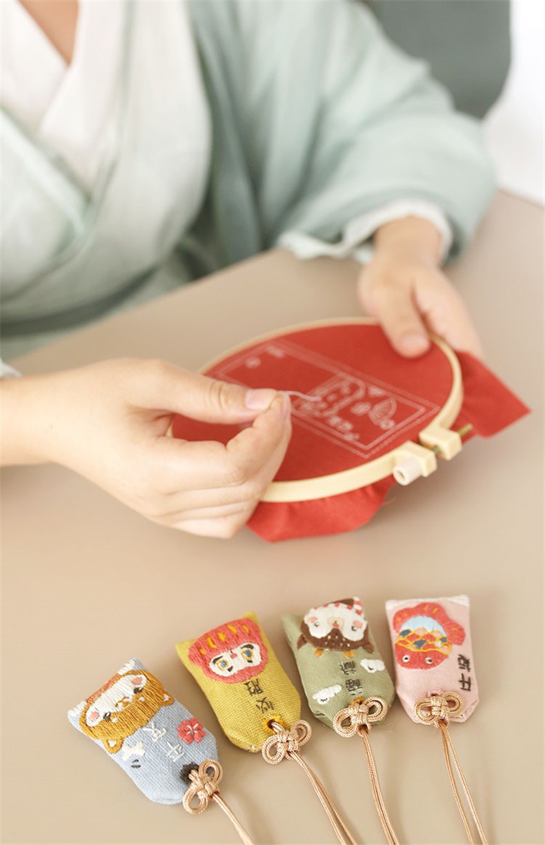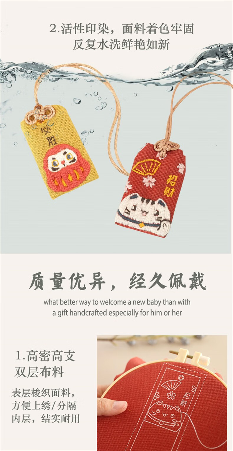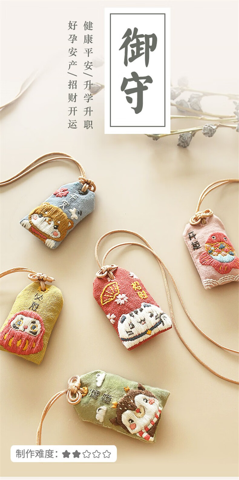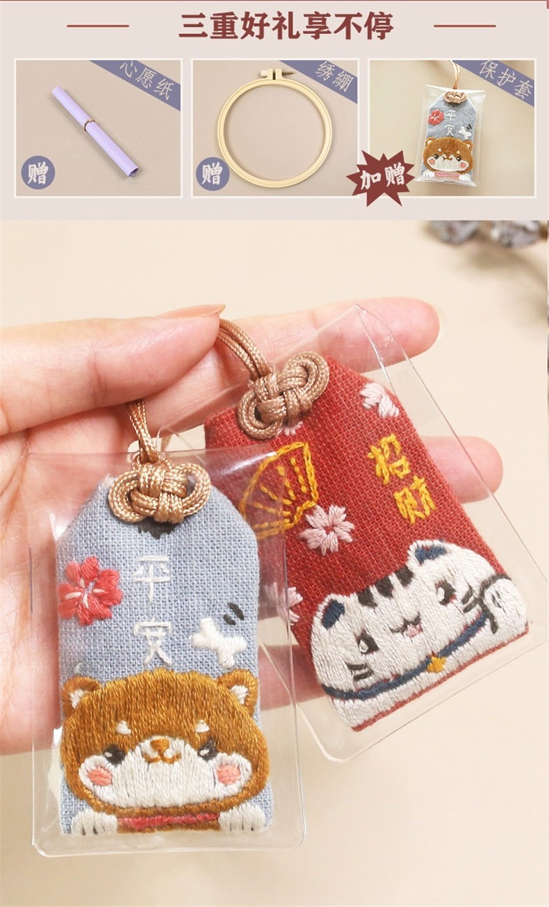 哈尼 平安符手工刺绣diy十字绣汽车挂件刺绣手工礼物送男友自绣平安福护身符diy车内装饰材料包 平安柴犬(含绣绷、保护套、许愿纸)