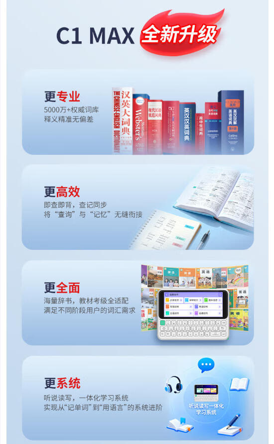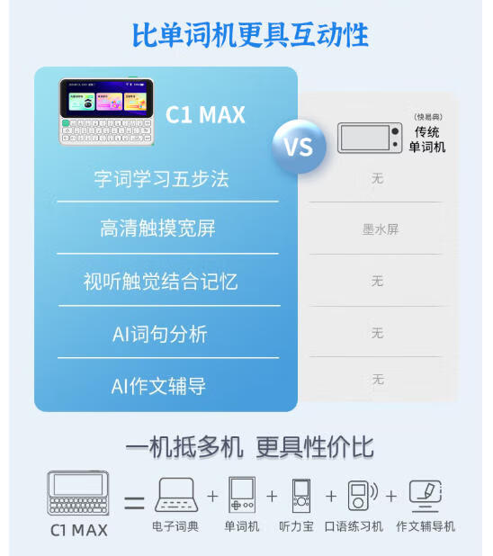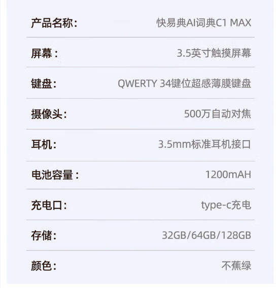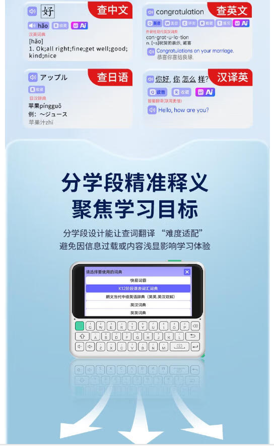 快易典(Koridy)AI电子词典英语日语学习机C1离线翻译机小学初中高中考级词汇教材同步单词机单词卡便携学习机E2 【经典款】C1 Slim 64GB