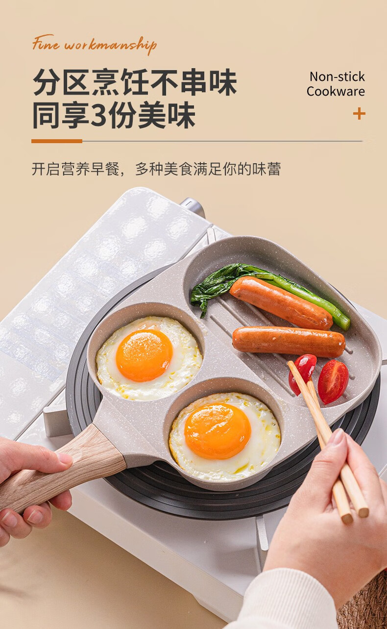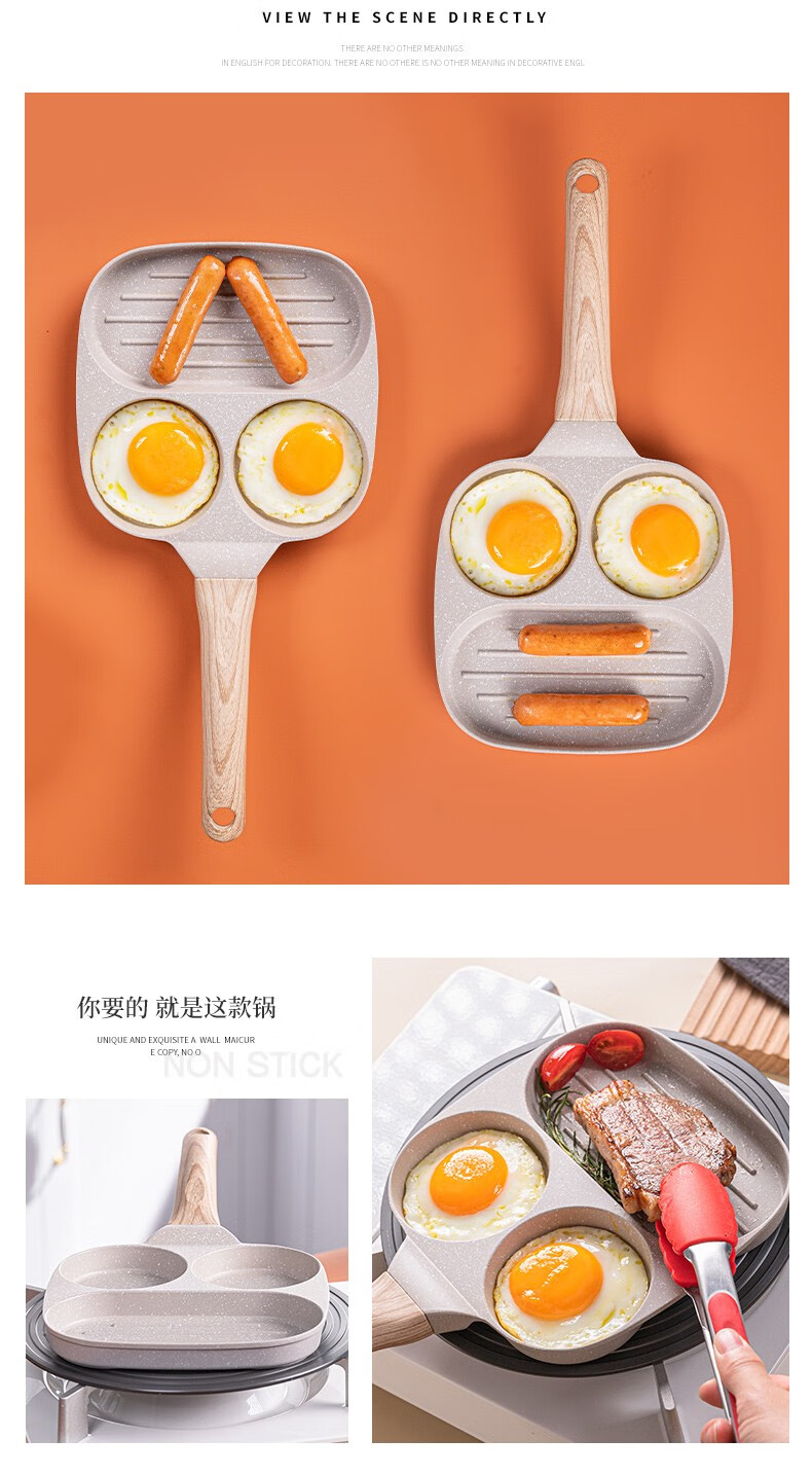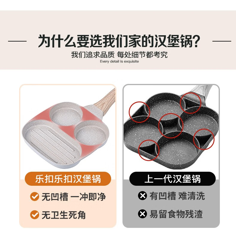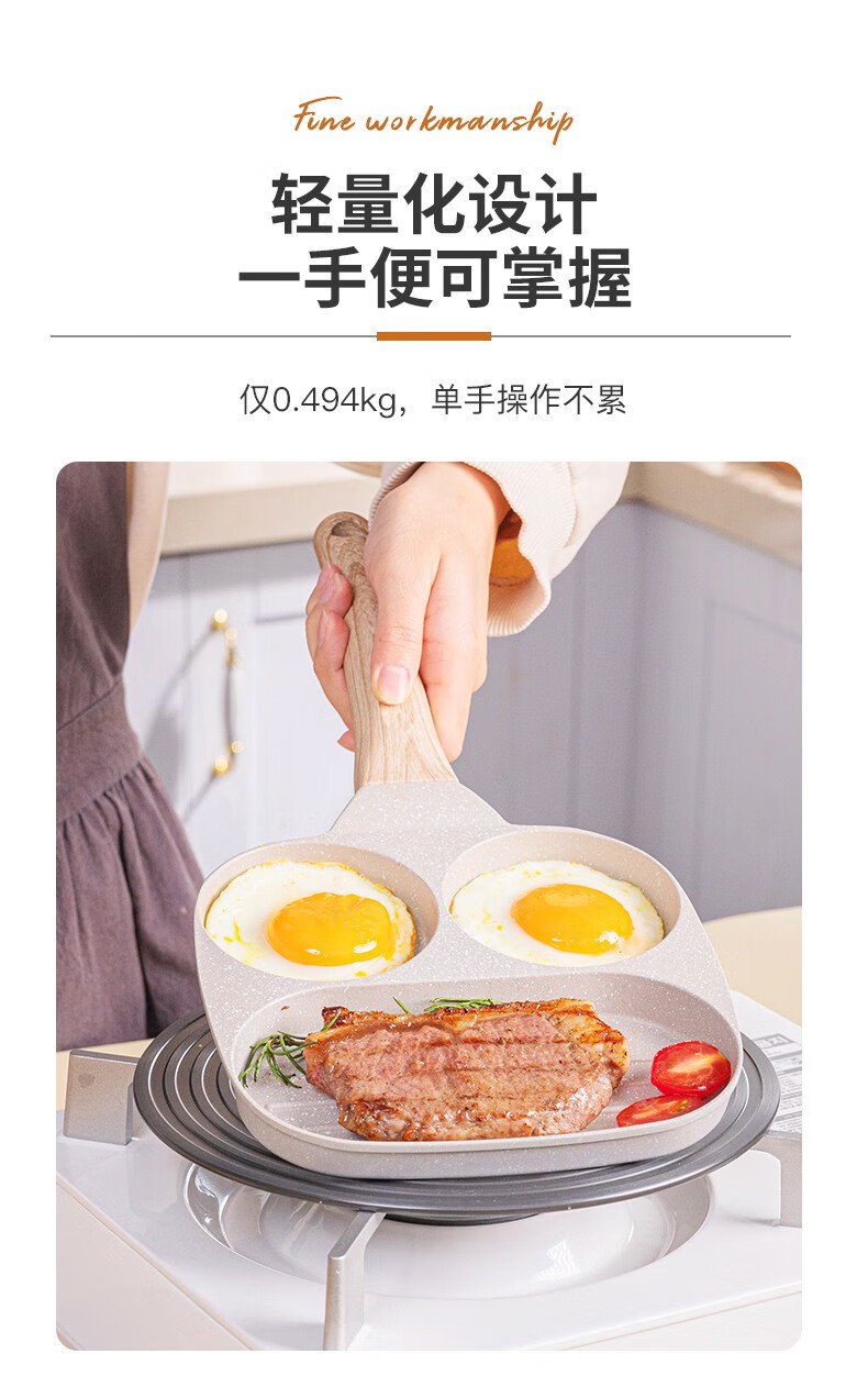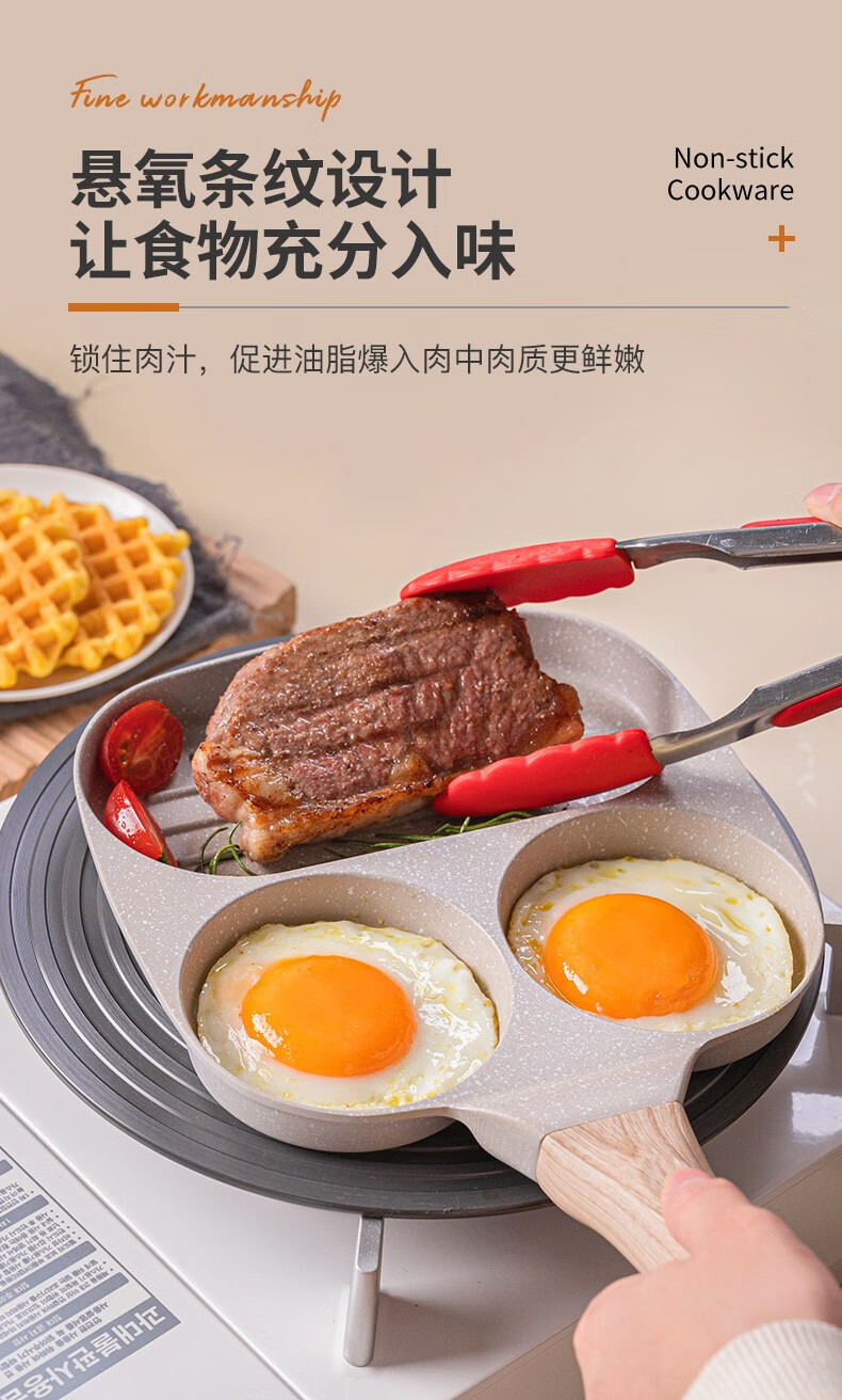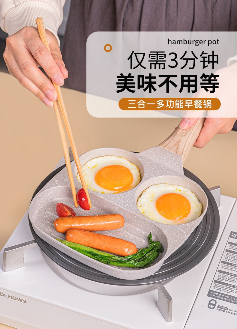 乐扣乐扣平底锅不粘锅鸡蛋汉堡锅煎蛋神器早餐锅牛排煎锅多功能煎锅 早餐锅【燃气灶专用款】