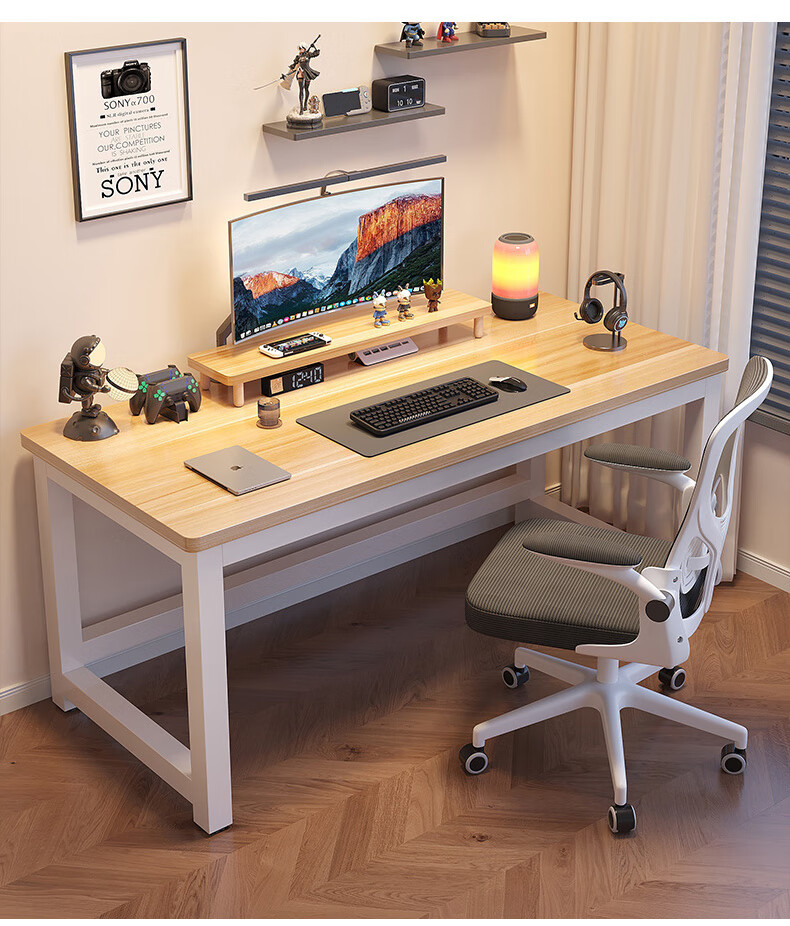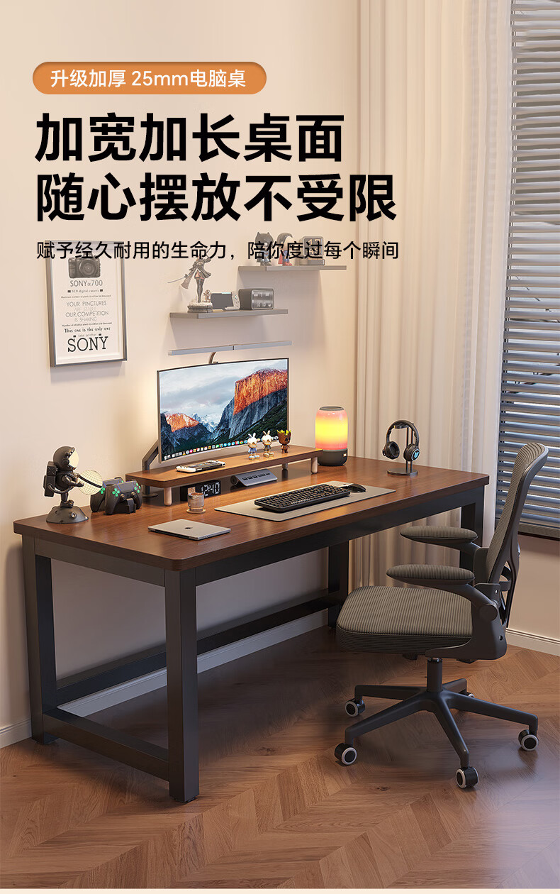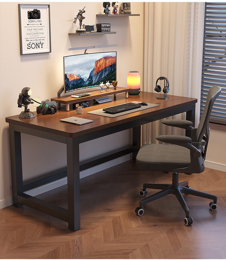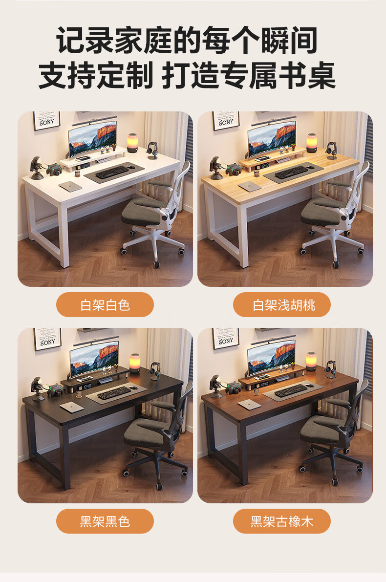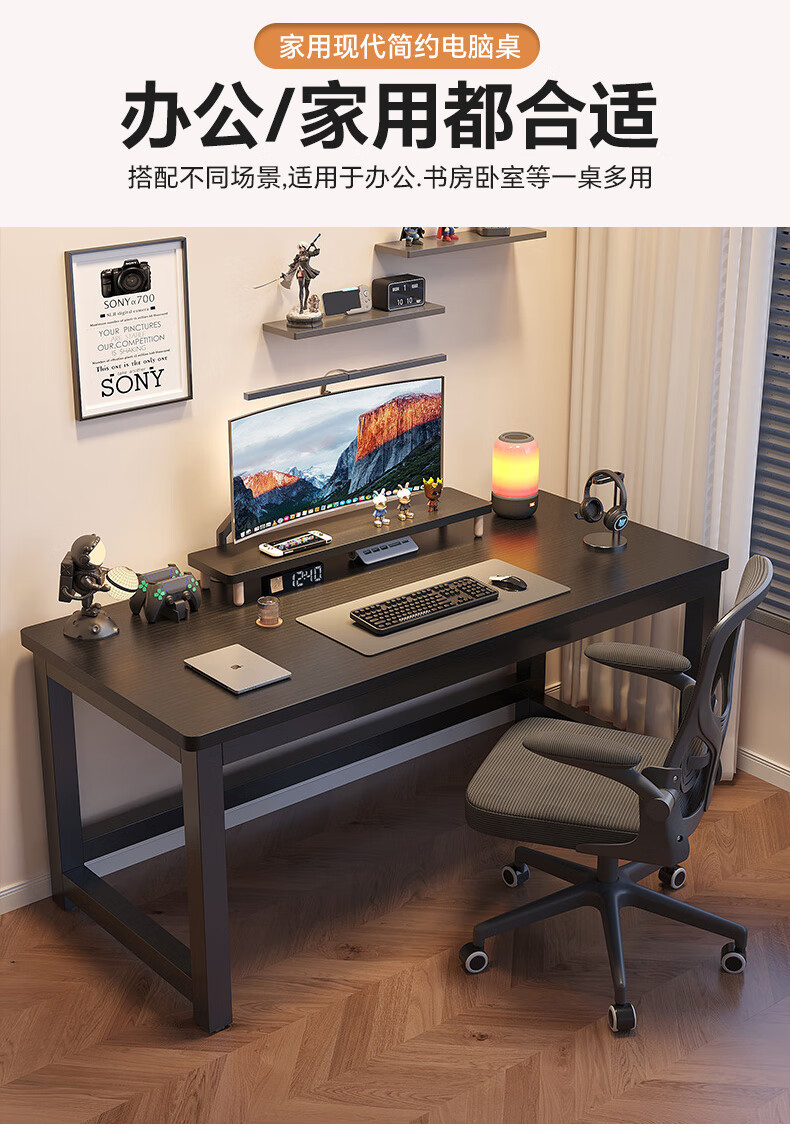 哗禾梧电脑桌电竞桌家用台式办公桌工作台学习桌书桌小户型出租屋桌子 黑架+古橡木 【25mm桌面】80*50CM