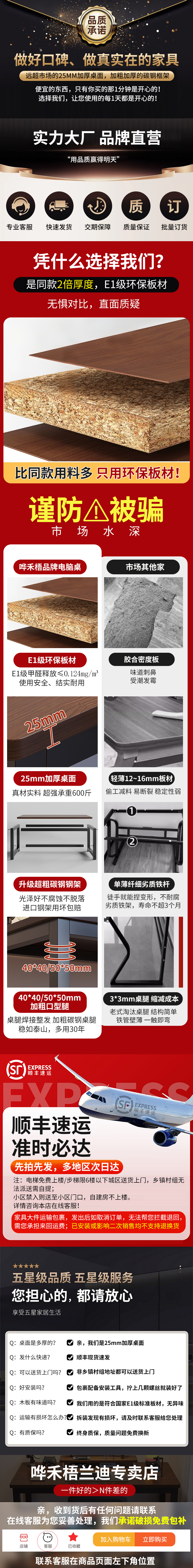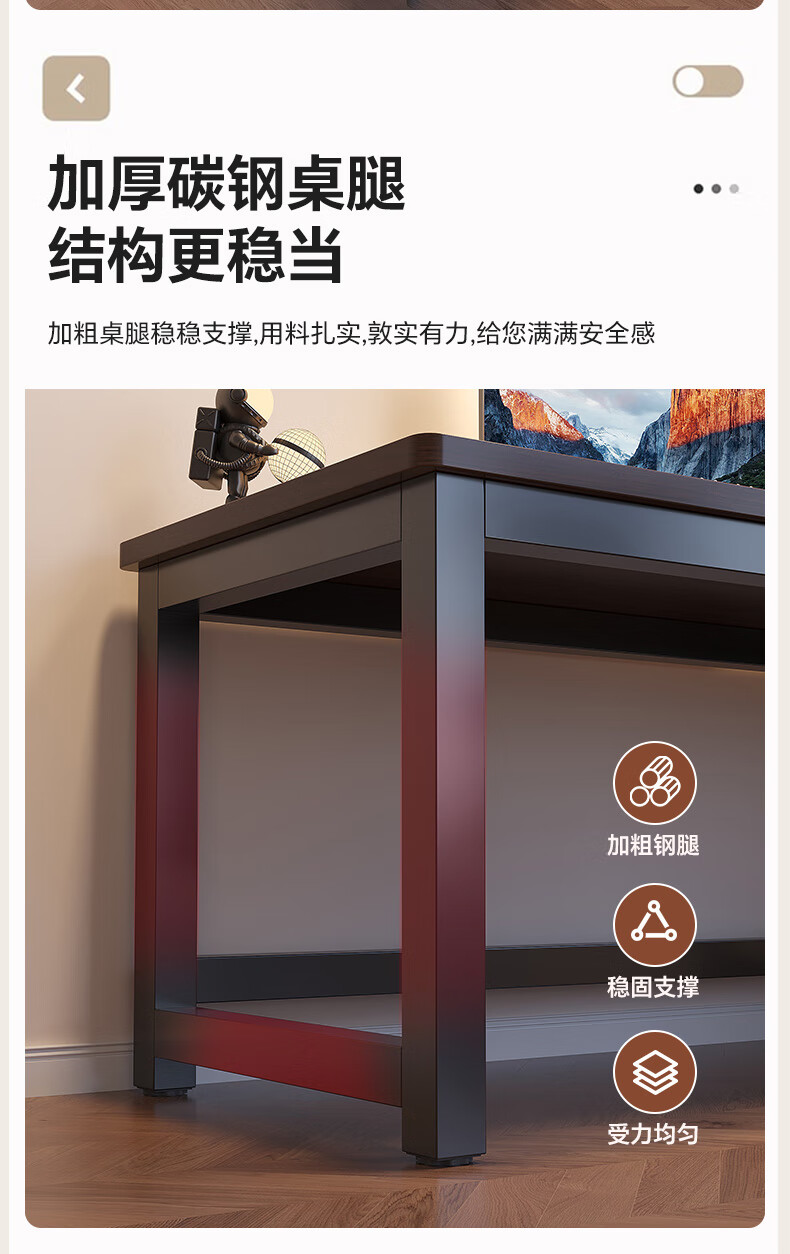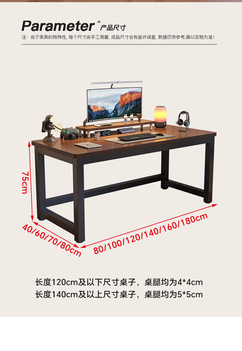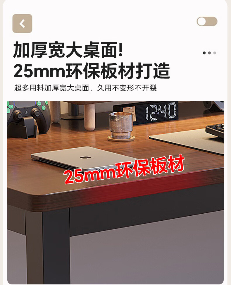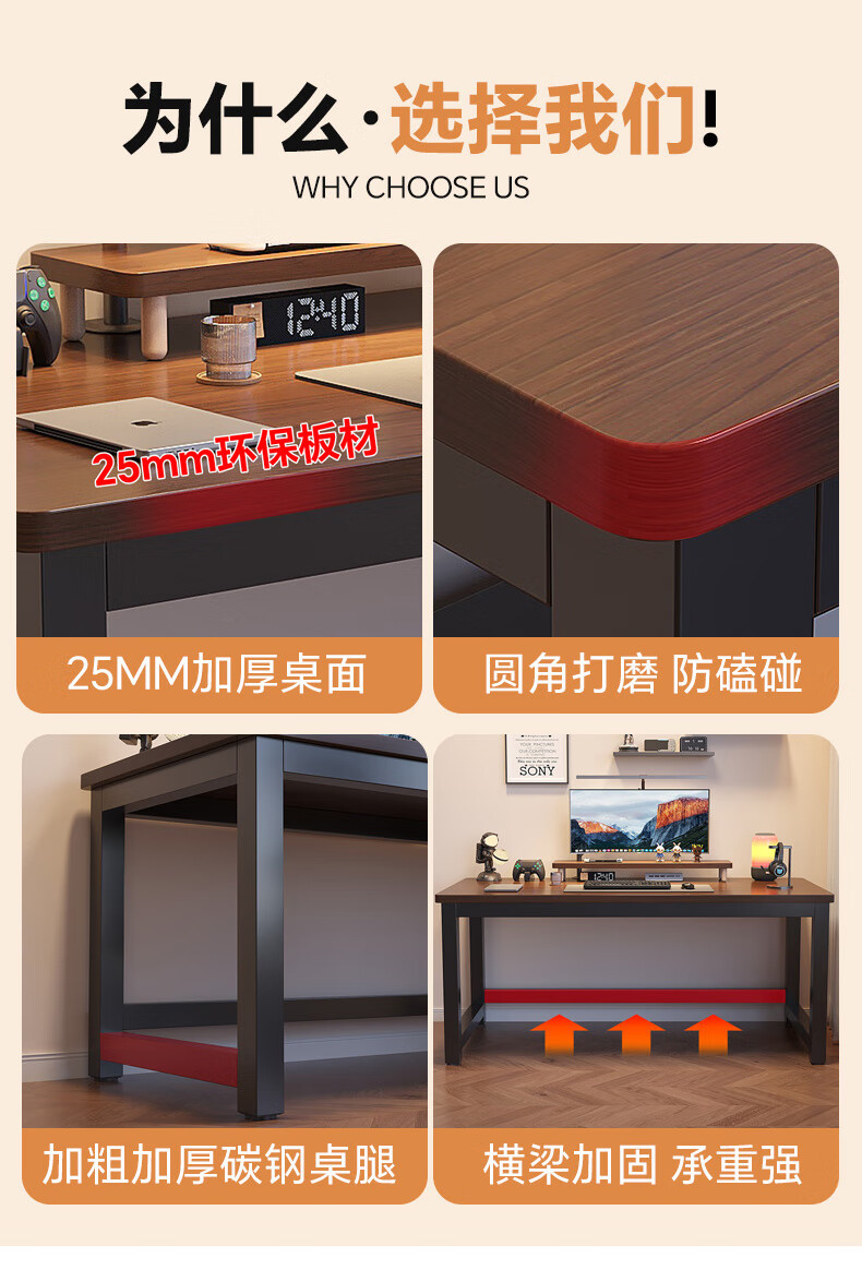 哗禾梧电脑桌电竞桌家用台式办公桌工作台学习桌书桌小户型出租屋桌子 黑架+古橡木 【25mm桌面】80*50CM
