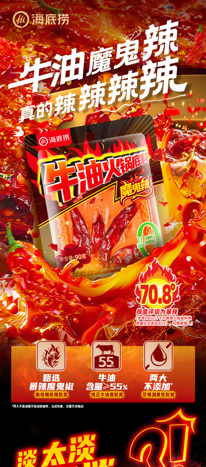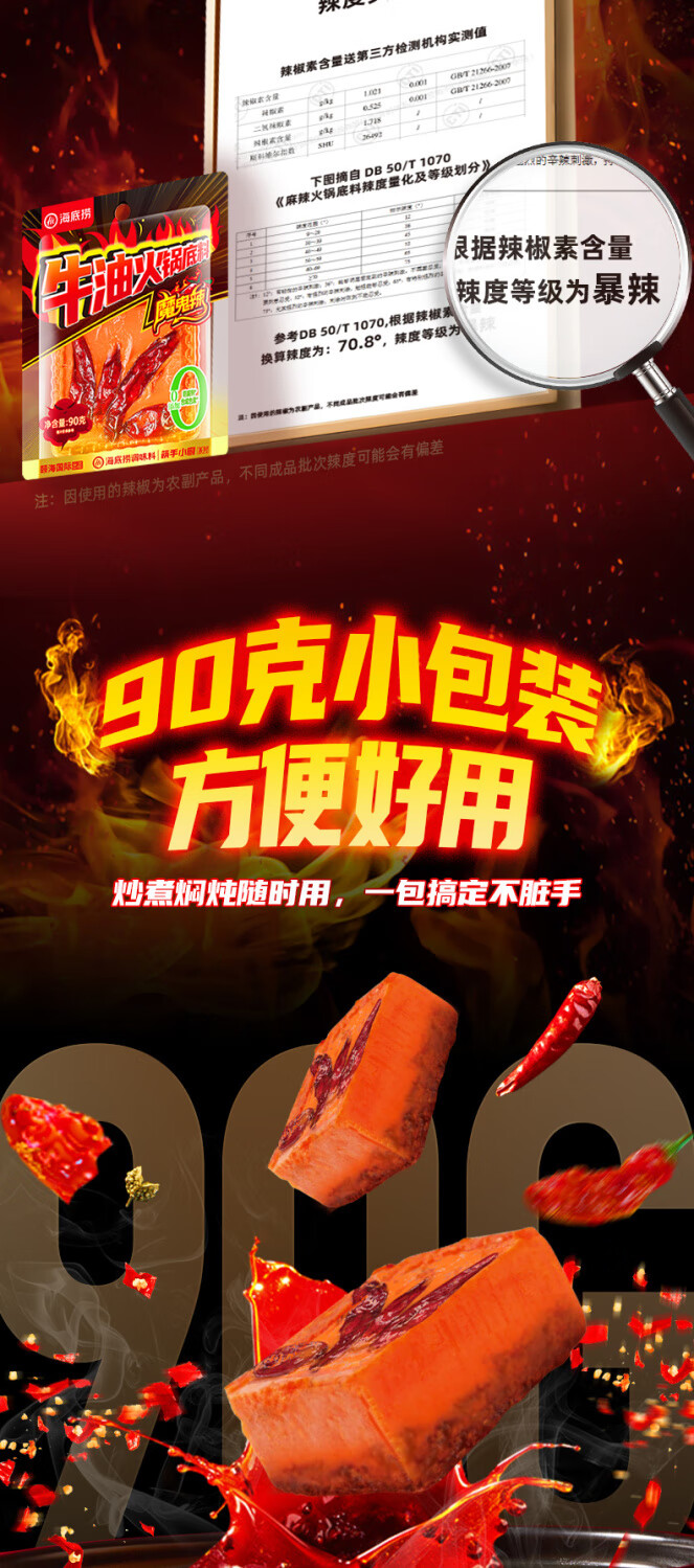 海底捞魔鬼辣牛油火锅底料超辣特辣重庆调料调味料家用商用小包装 魔鬼辣牛油底料90g*1袋