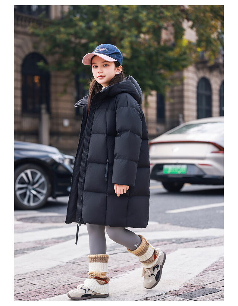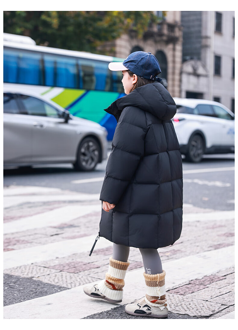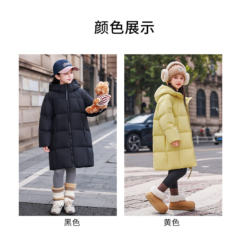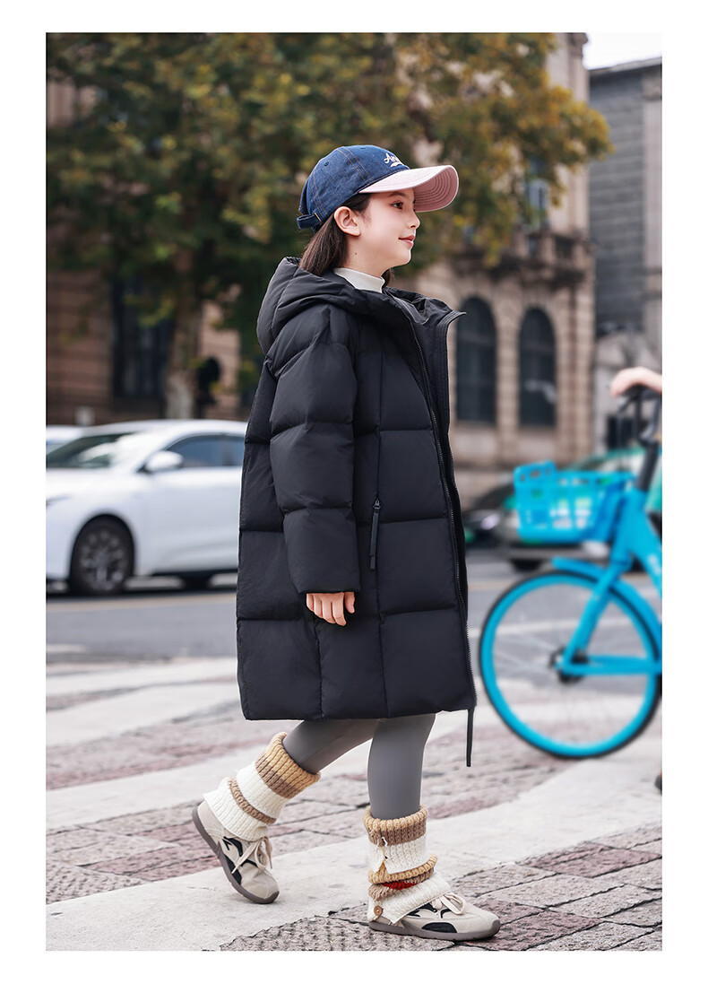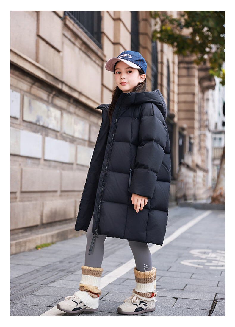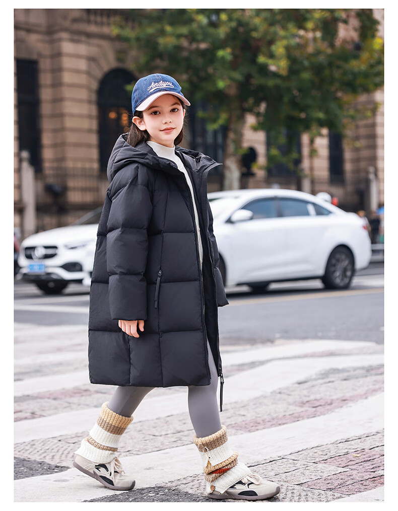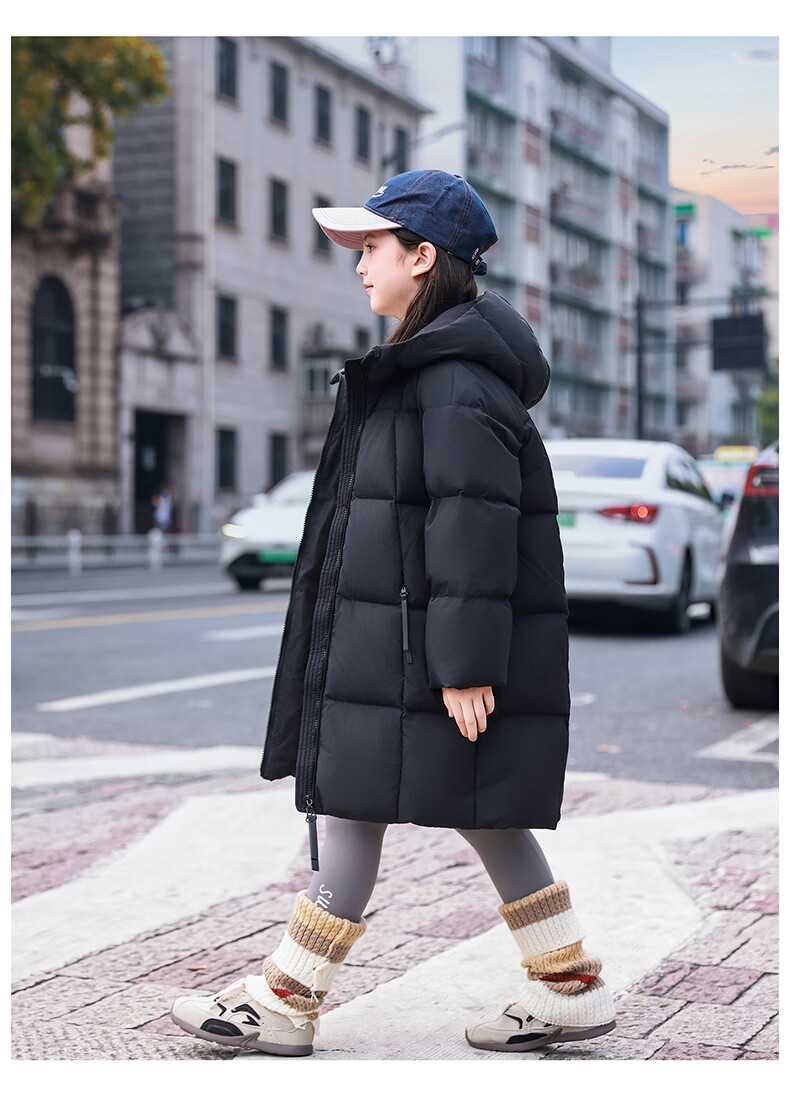 ABC KAIA女童羽绒服中长款加厚保暖外套潮冬季新款洋气中大童羽绒服小女孩 黑色 150