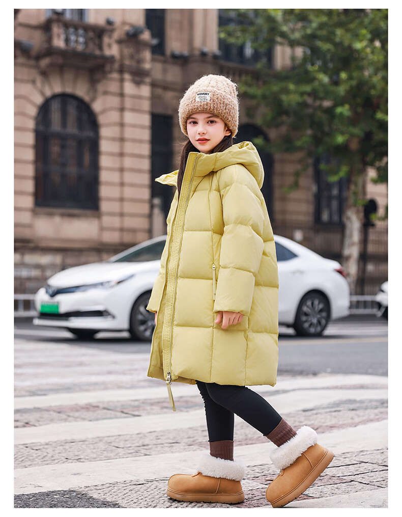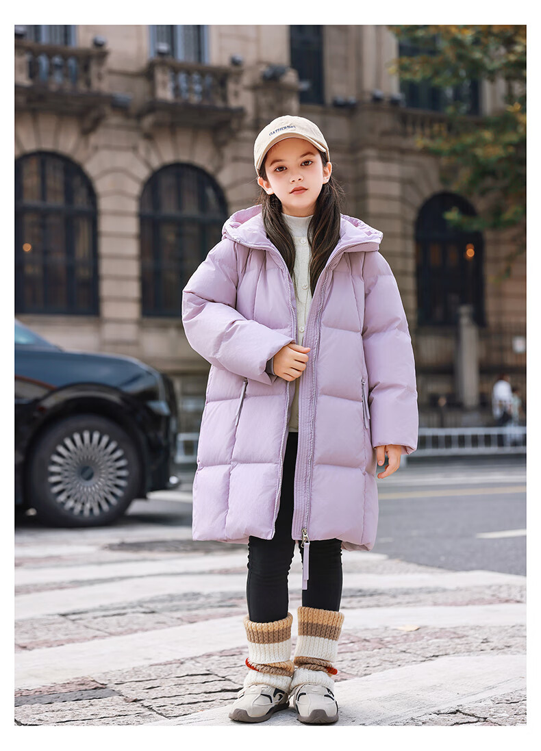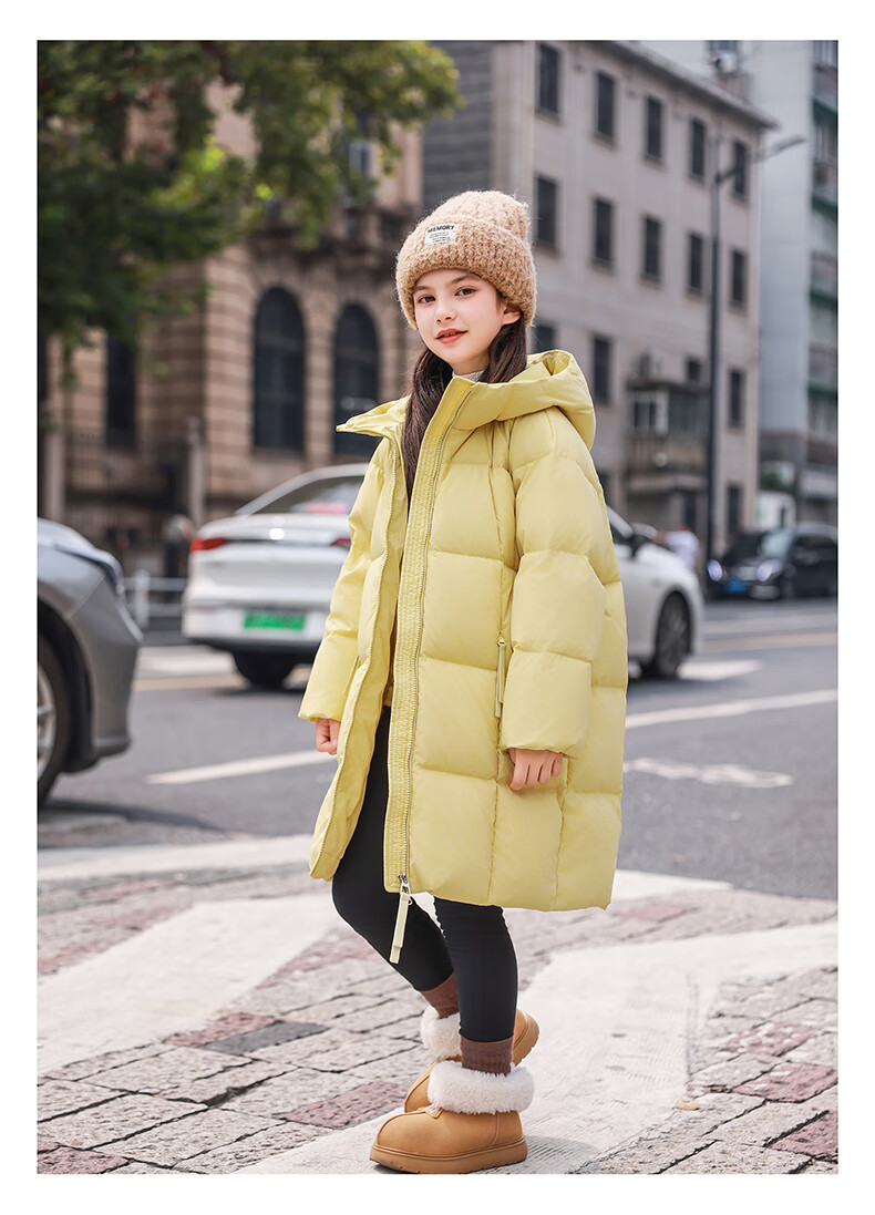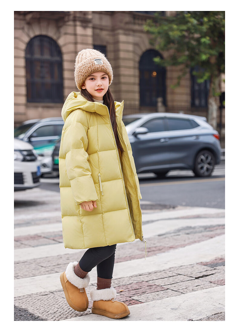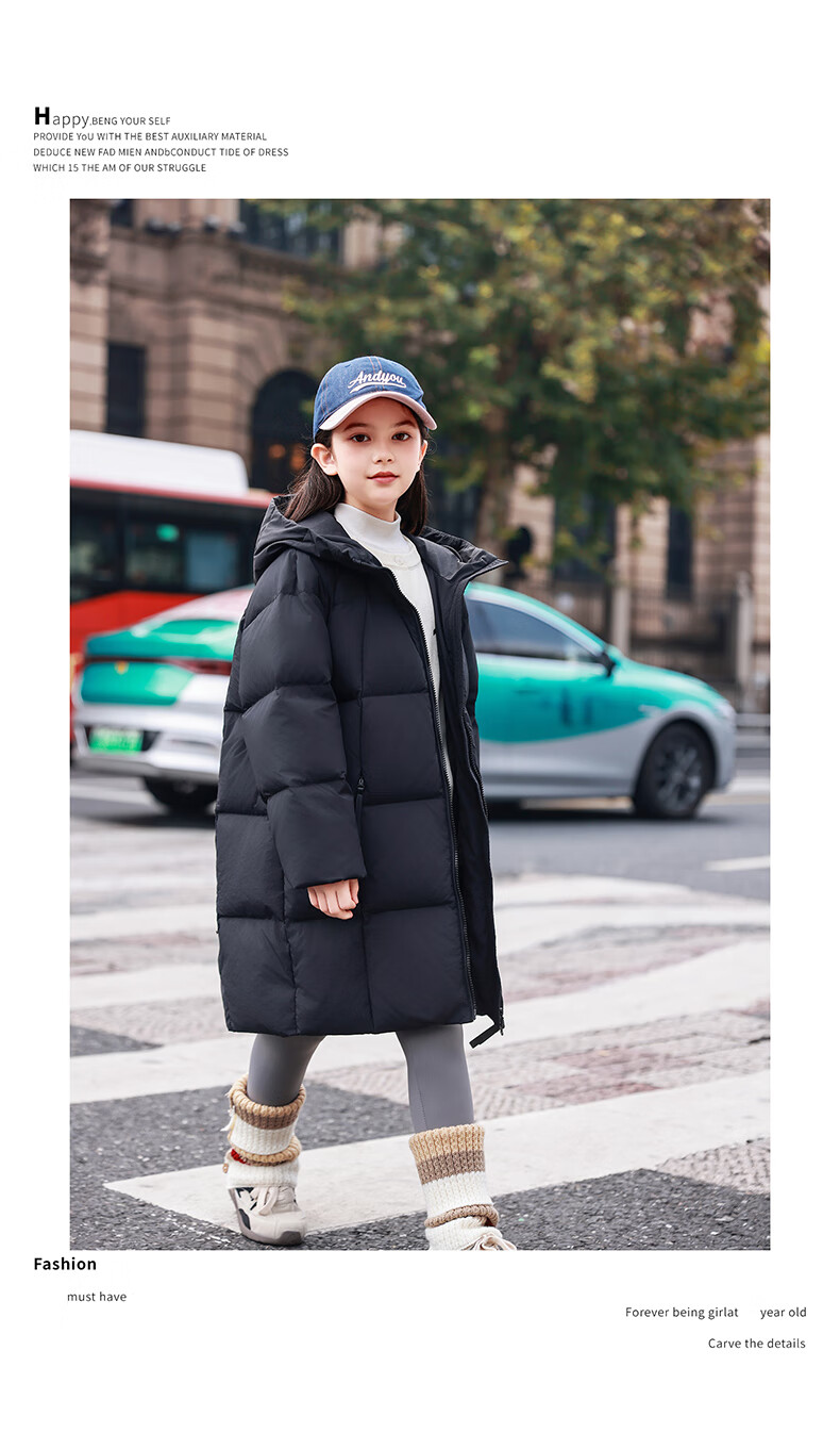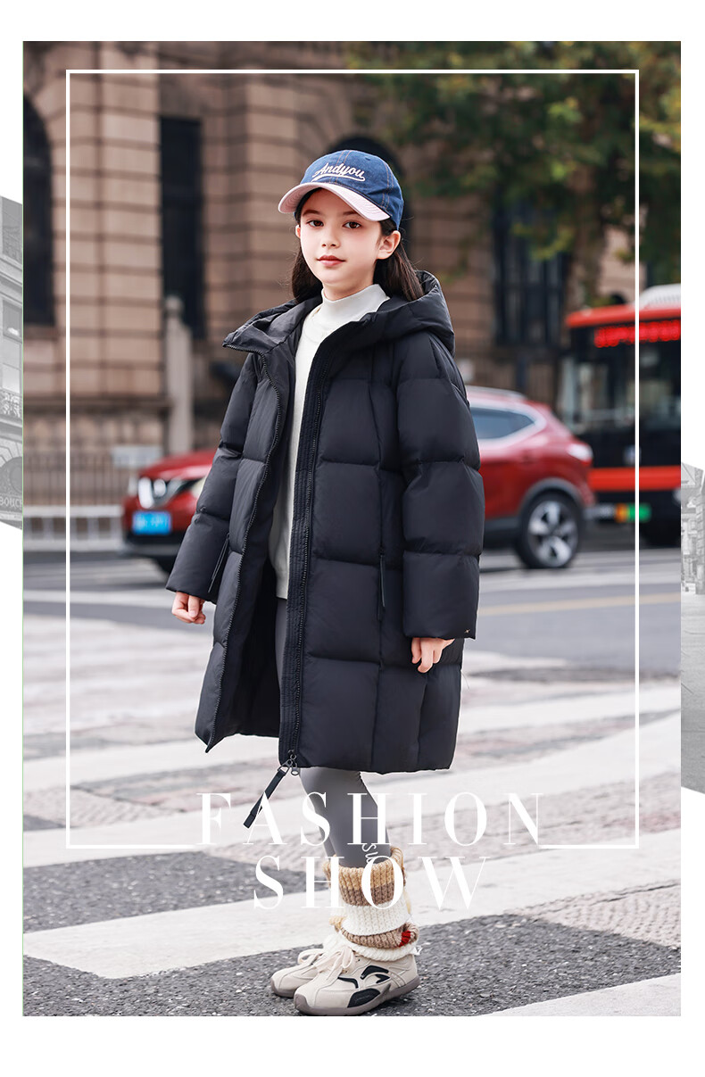 ABC KAIA女童羽绒服中长款加厚保暖外套潮冬季新款洋气中大童羽绒服小女孩 黑色 150