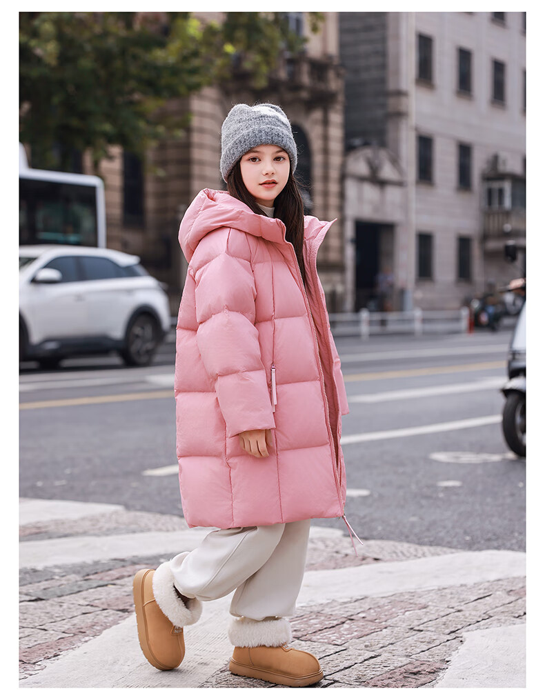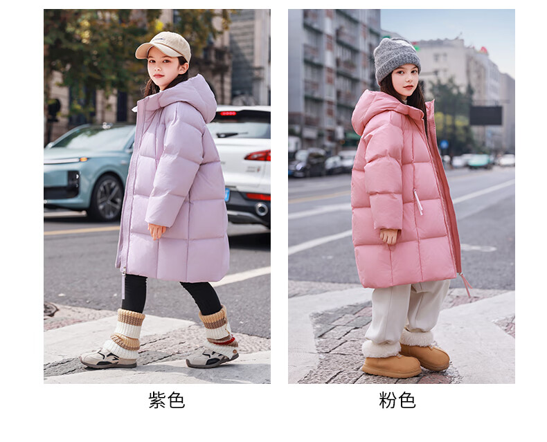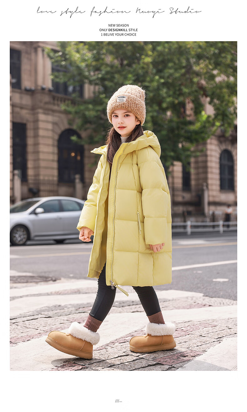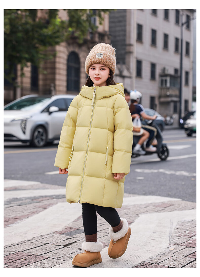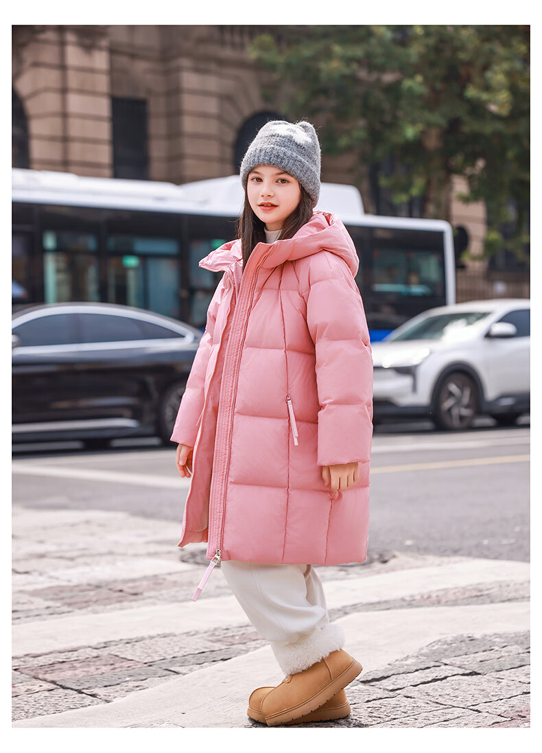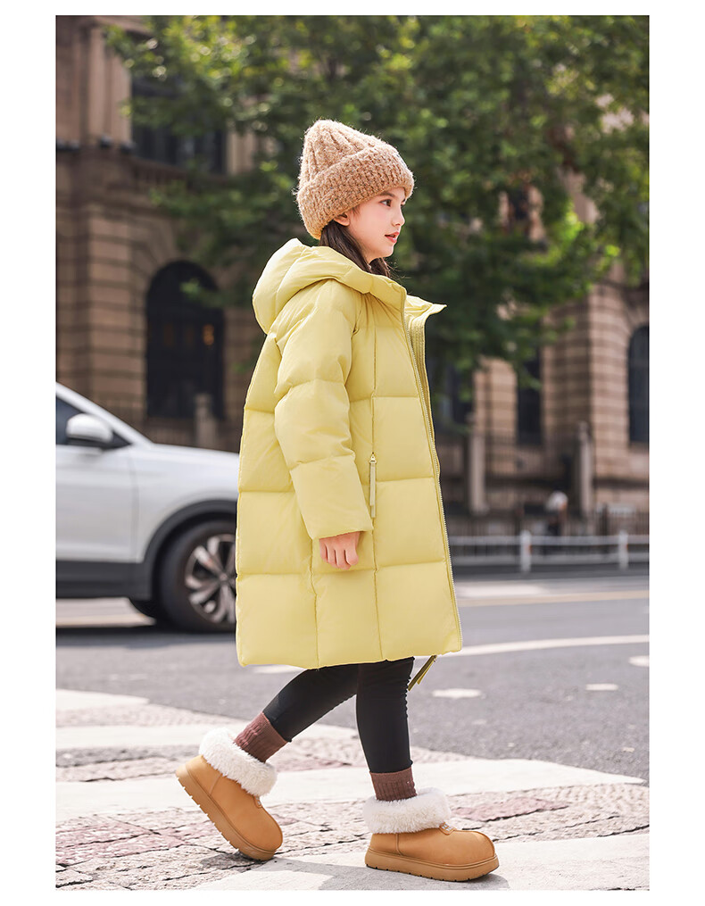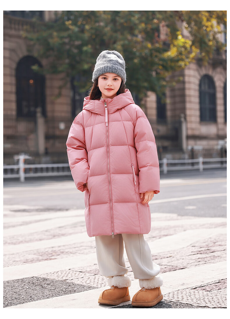 ABC KAIA女童羽绒服中长款加厚保暖外套潮冬季新款洋气中大童羽绒服小女孩 黑色 150