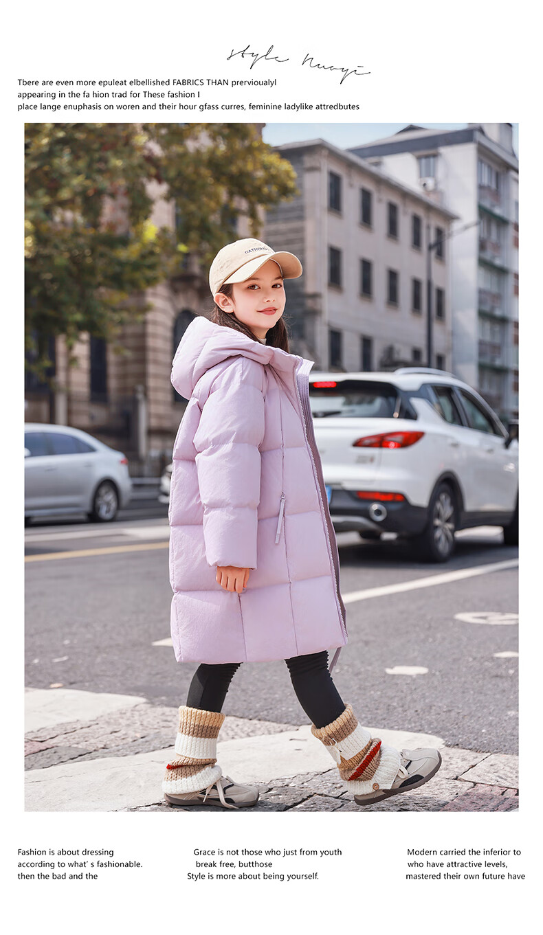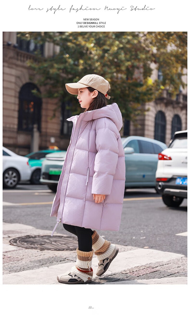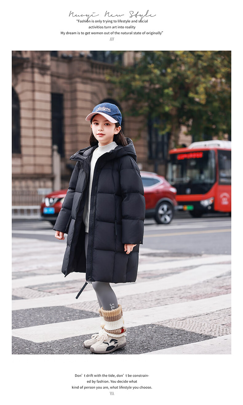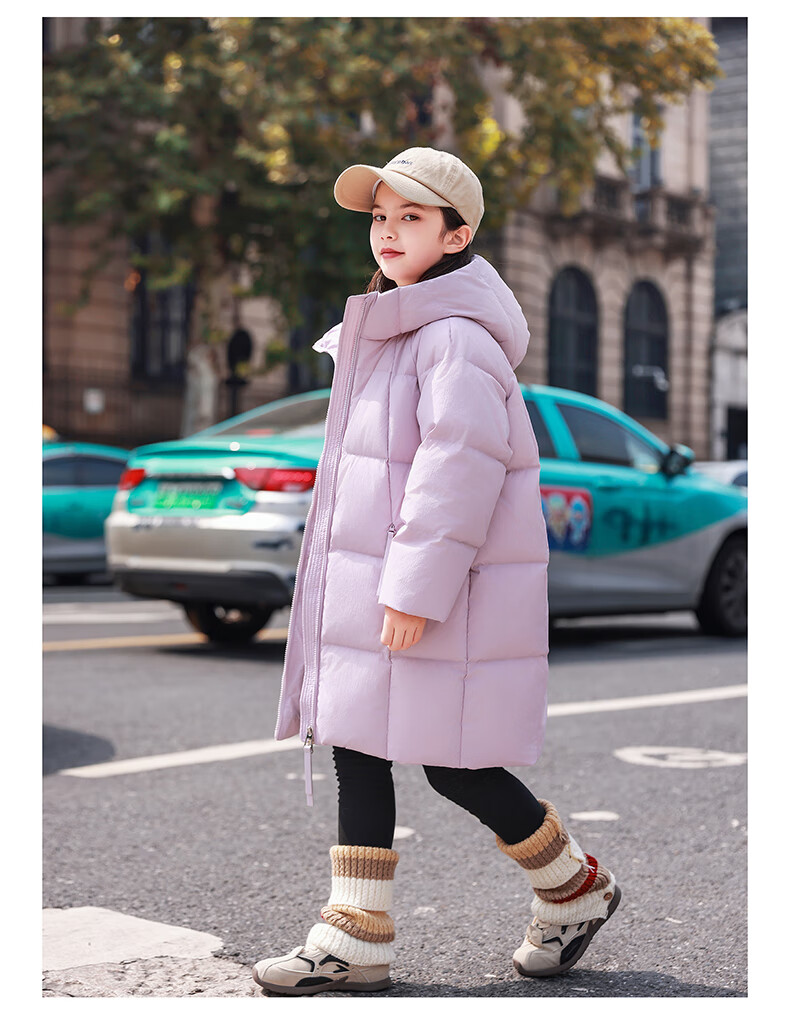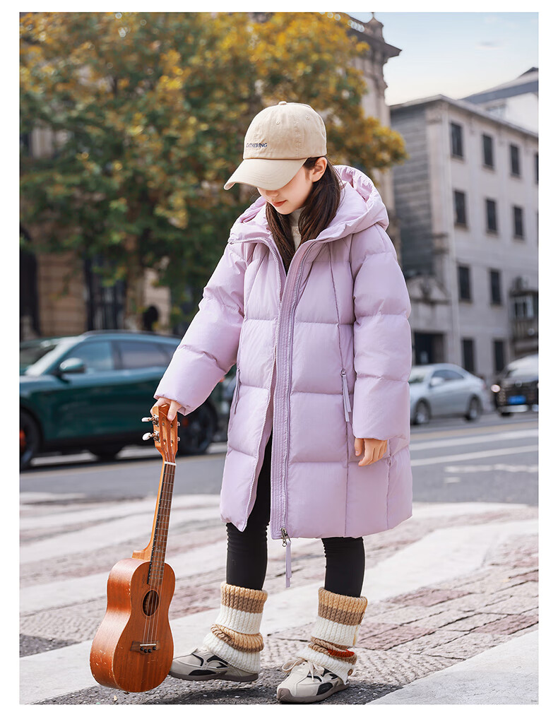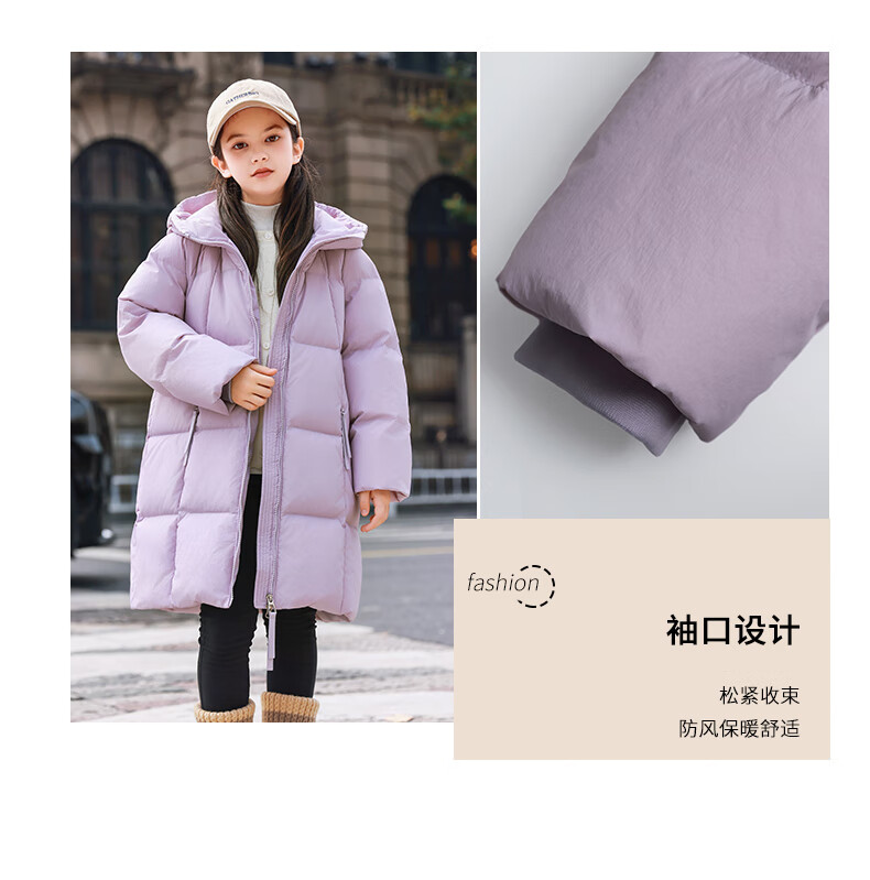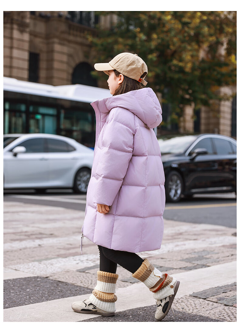 ABC KAIA女童羽绒服中长款加厚保暖外套潮冬季新款洋气中大童羽绒服小女孩 黑色 150