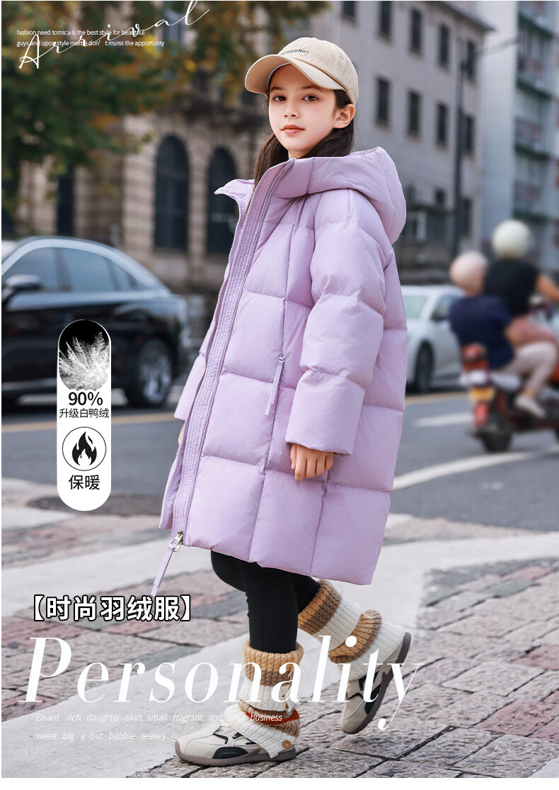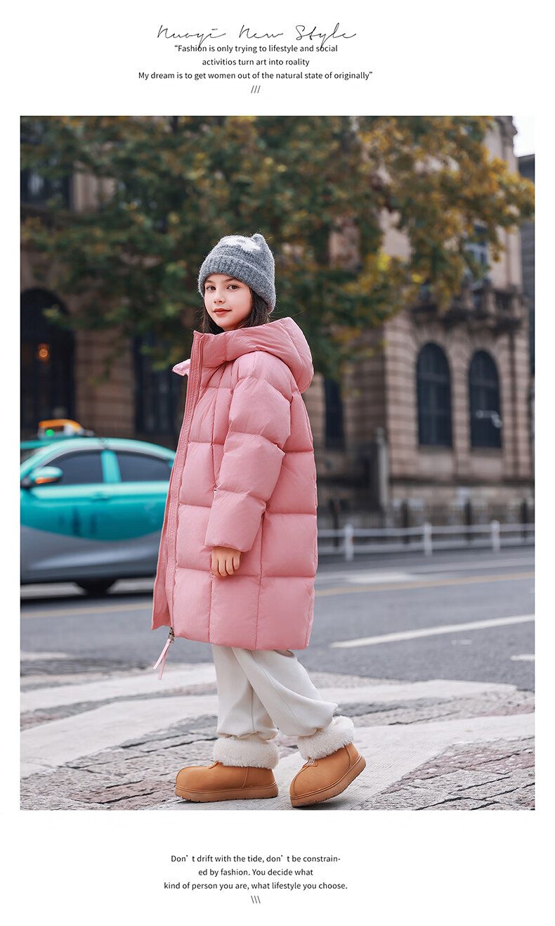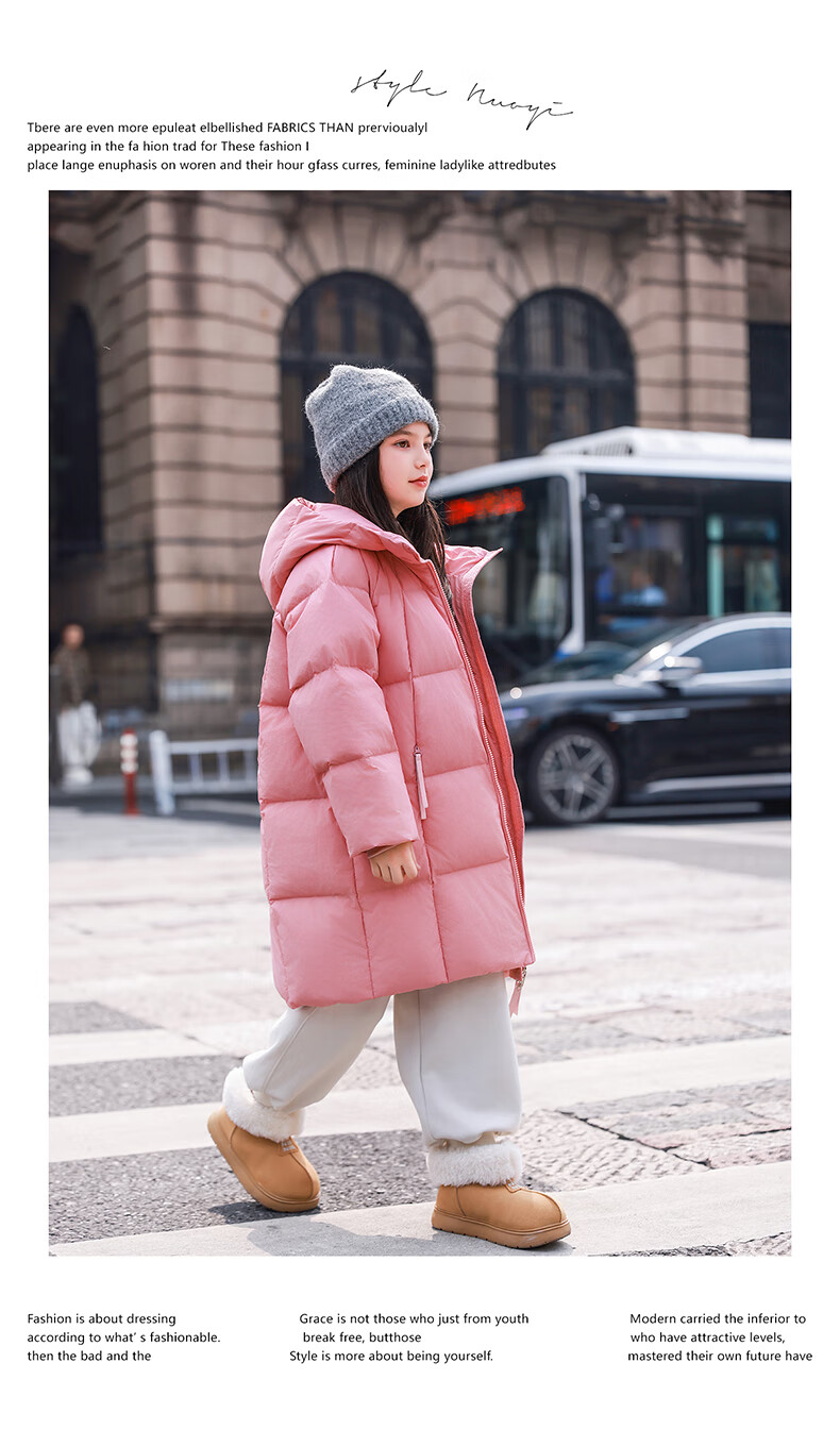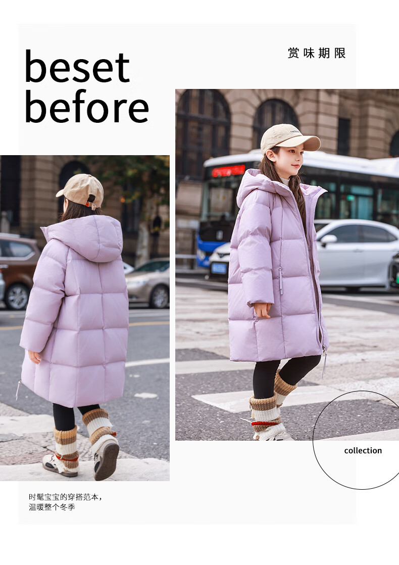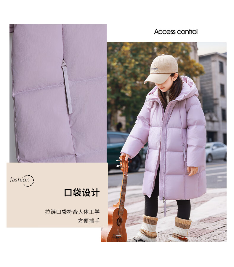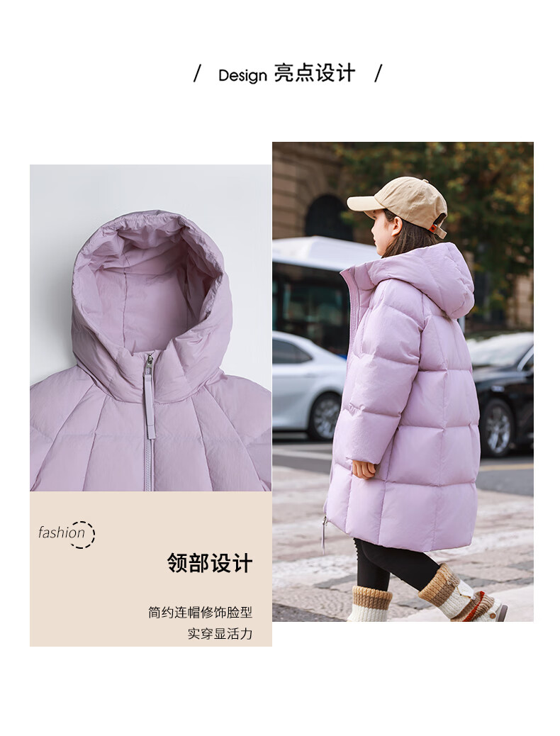 ABC KAIA女童羽绒服中长款加厚保暖外套潮冬季新款洋气中大童羽绒服小女孩 黑色 150