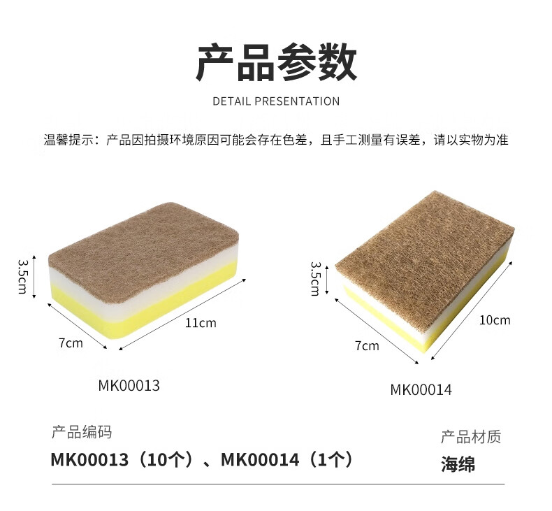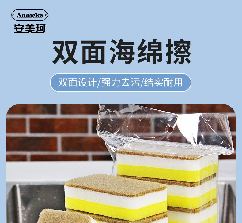 安美珂 百洁擦 加厚清洁海绵块 厨房刷碗刷锅百洁布 去油污海绵擦 10片/MK00013