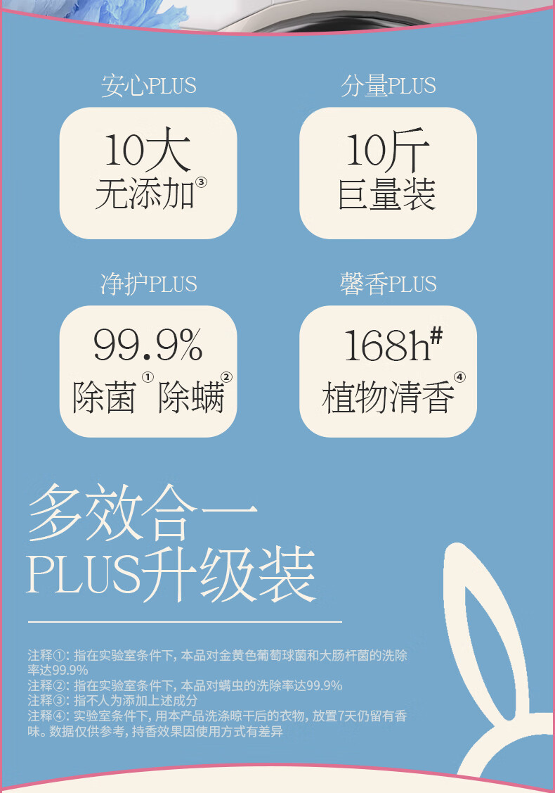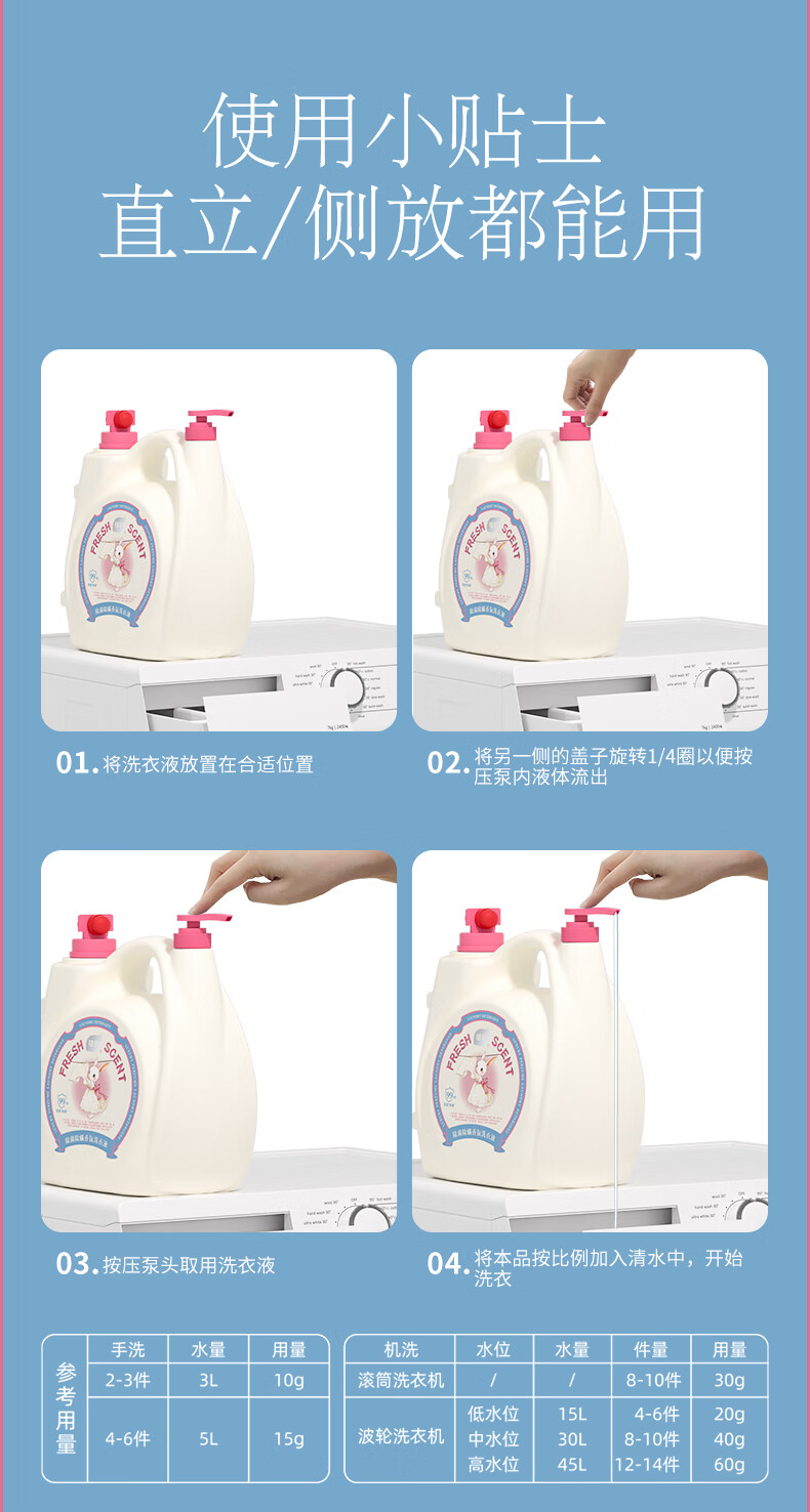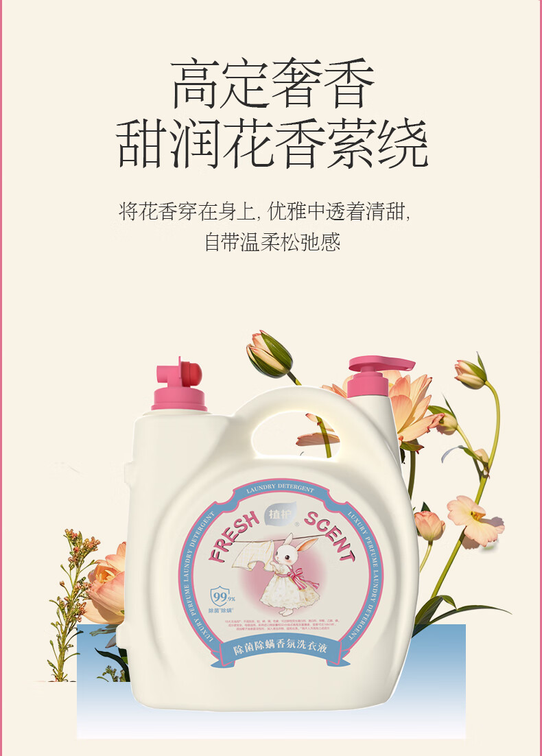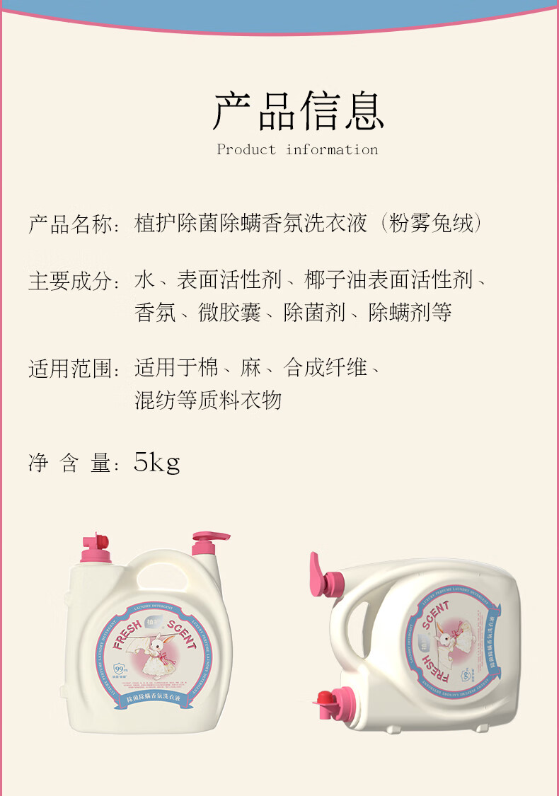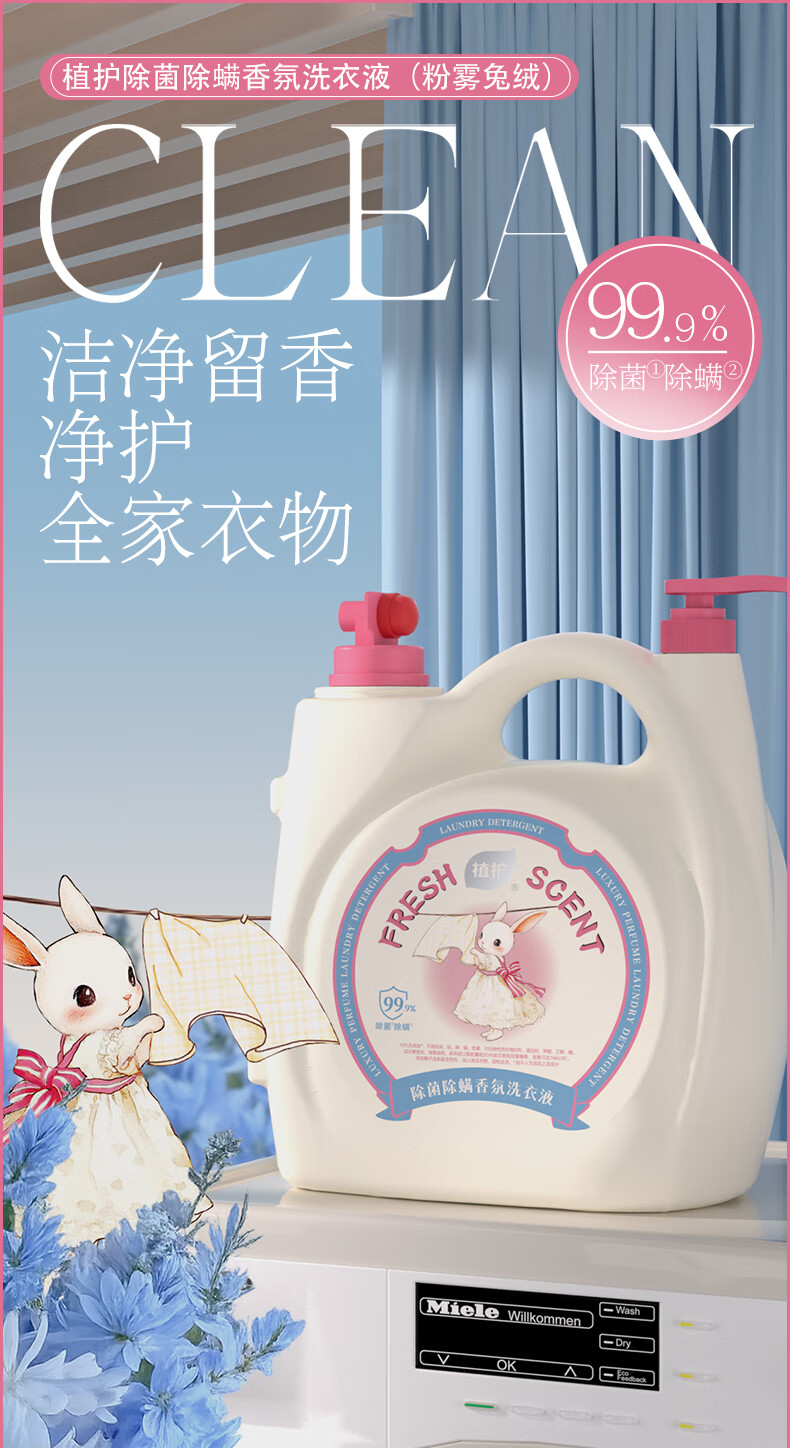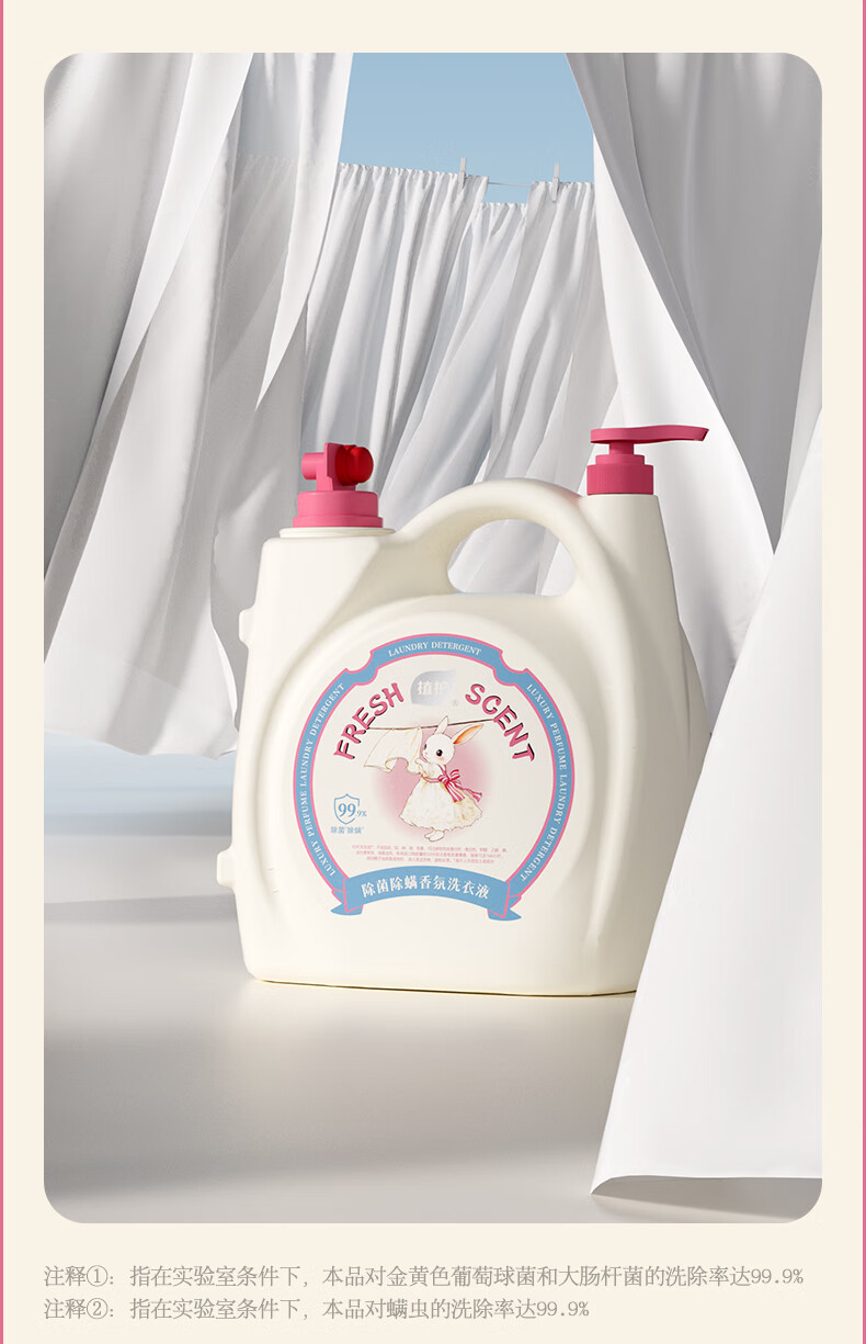植护香氛洗衣液 10斤大大桶持久留香 除菌除螨深层洁净 家用整箱装 粉雾兔绒10斤*1瓶(赠清洁剂)
