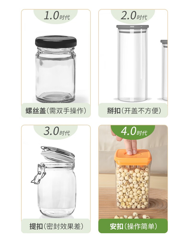安扣创意坚果密封罐干果密封罐零食杂粮收纳罐储物罐 pp零食罐350ml*2