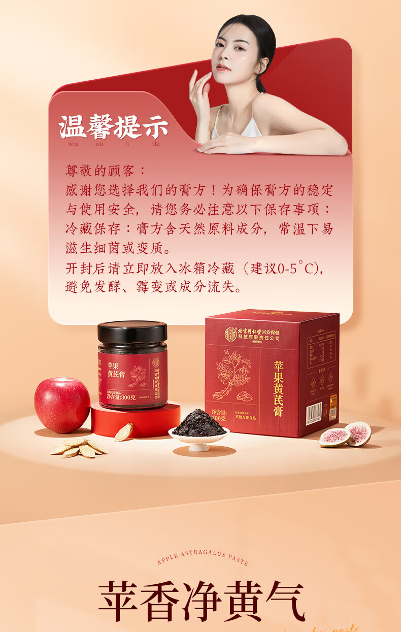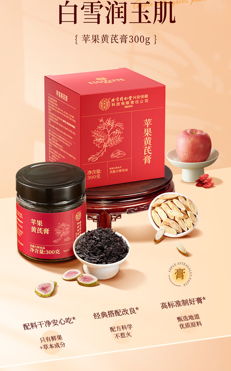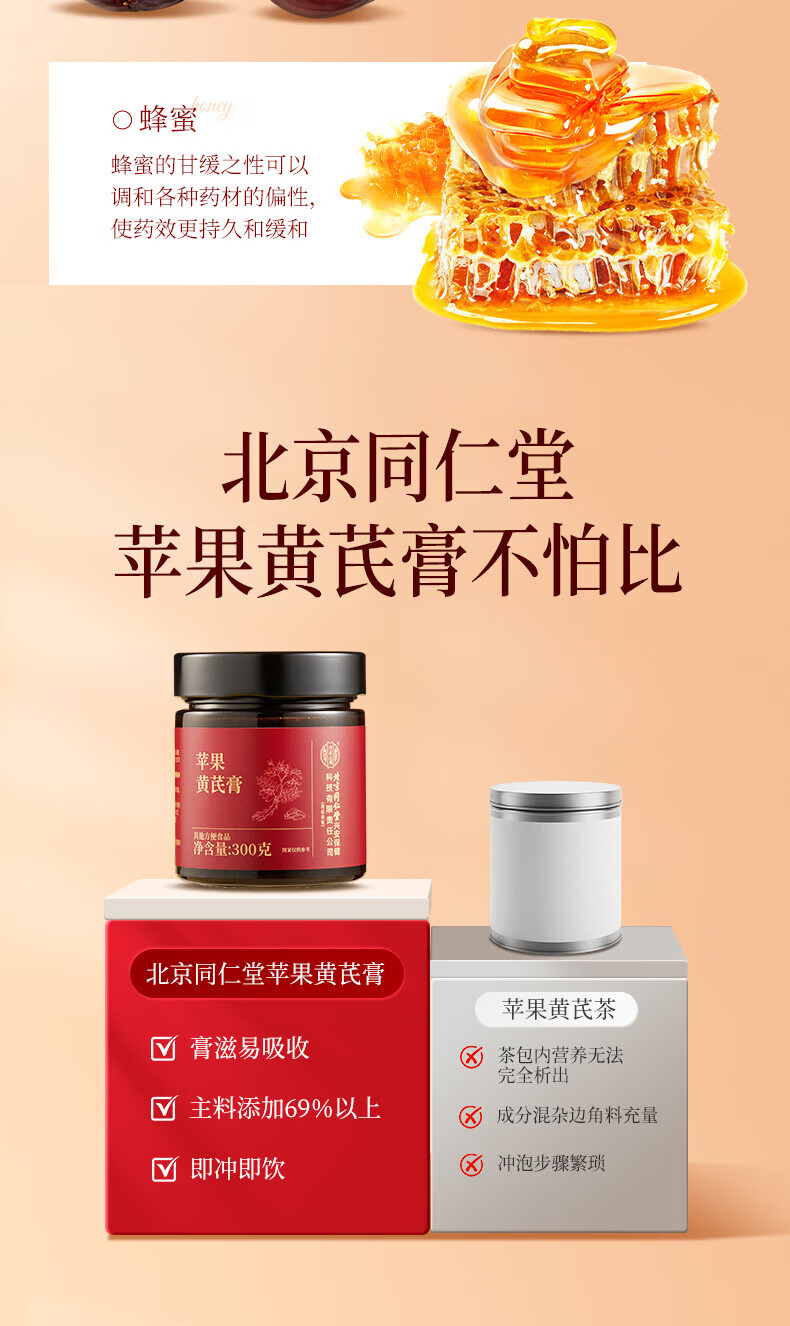 内廷上用北京同仁堂苹果黄芪膏红枣枸杞无花果蜂蜜养生补气养血女神素颜水 【1瓶体验装】300g/瓶