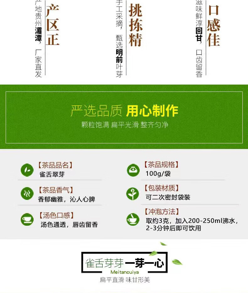 兰馨茶叶湄潭雀舌翠芽茶明前嫩芽高山绿茶口粮自饮茶叶 雀舌翠芽100g*1袋