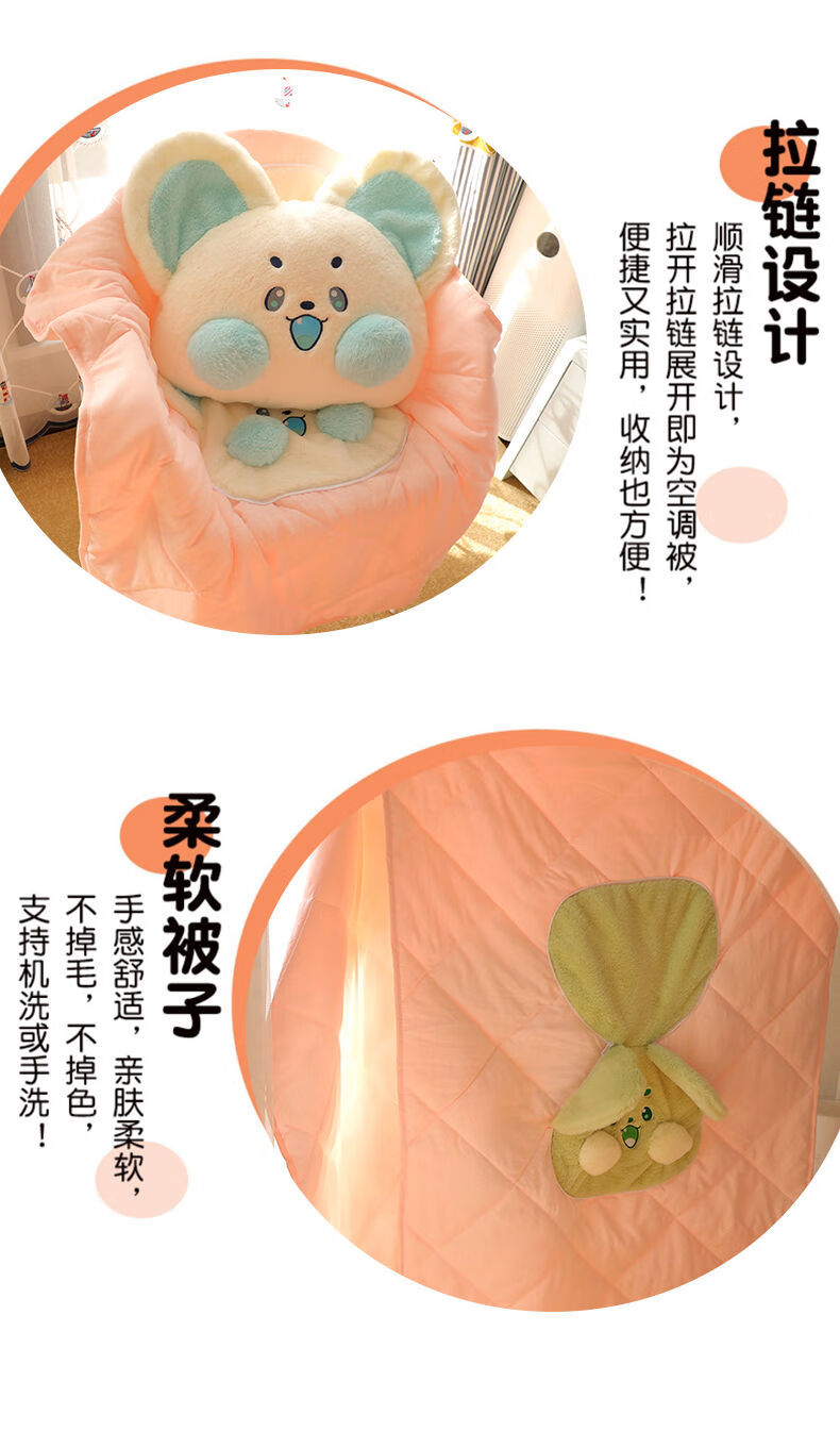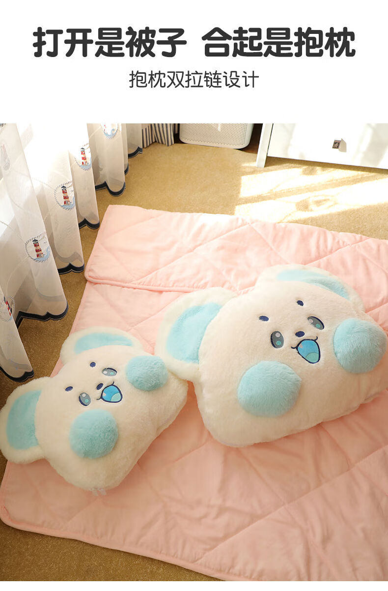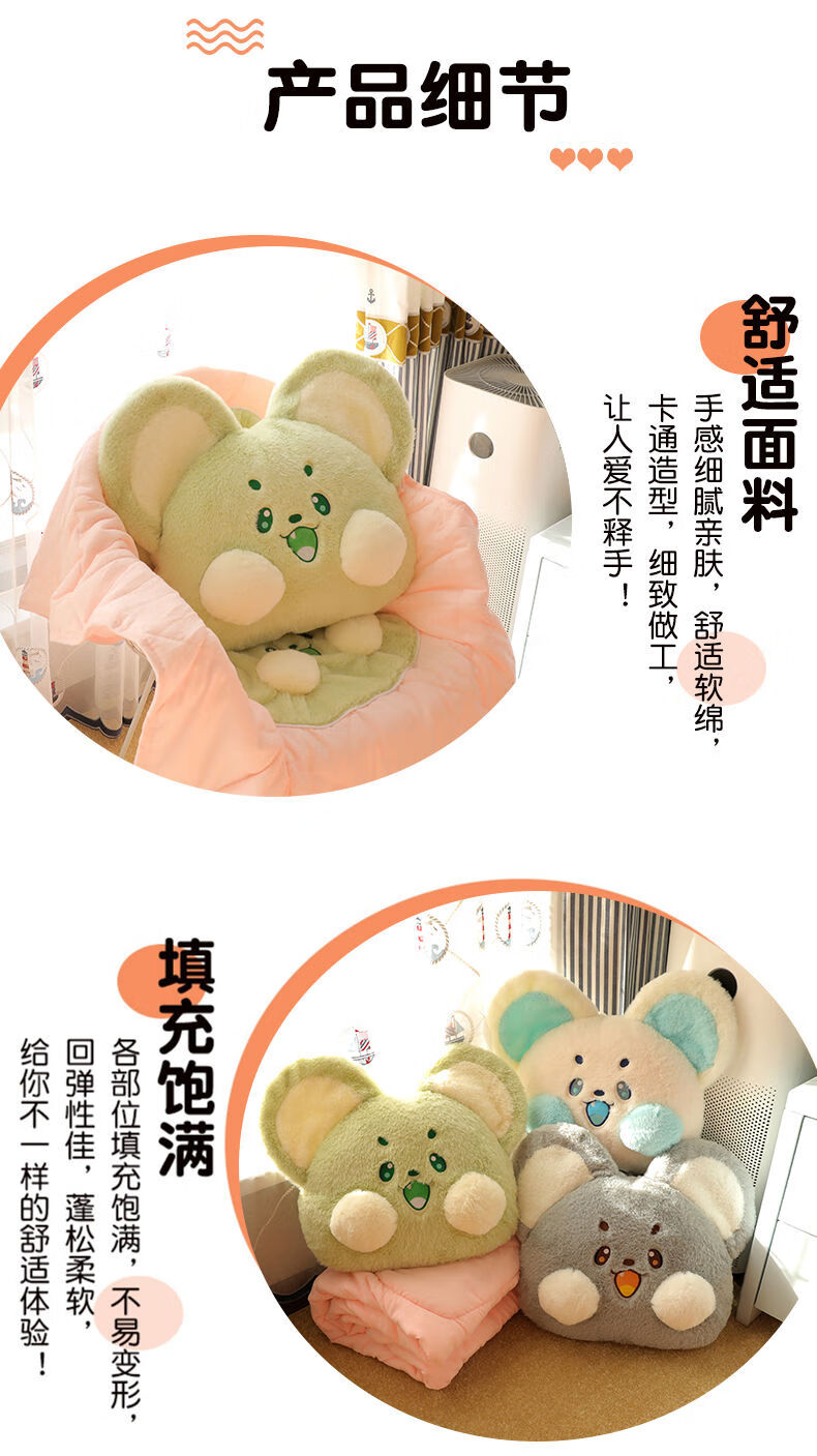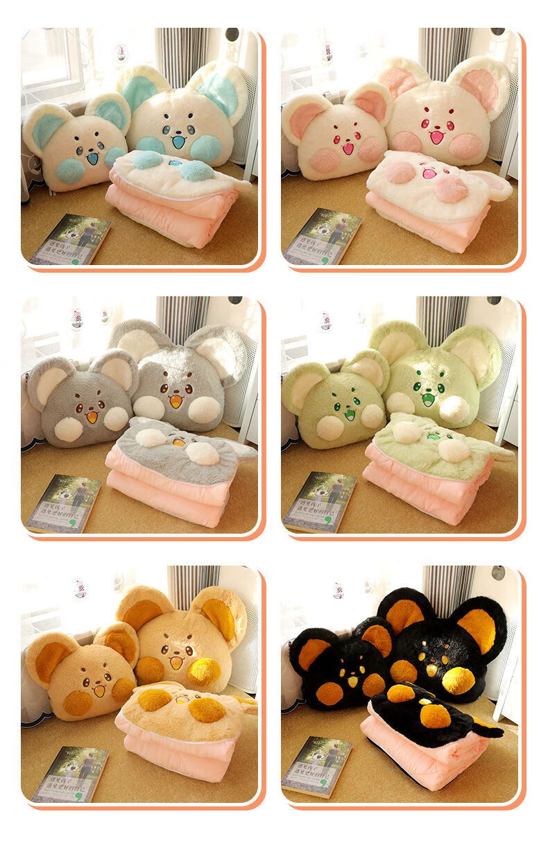 山头林村冬季加厚抱枕被子两用二合一折叠汽车载枕头被办公室午睡毯子靠枕 抹茶-萌鼠 大号抱枕55*45cm展开被子1点5*1点8米