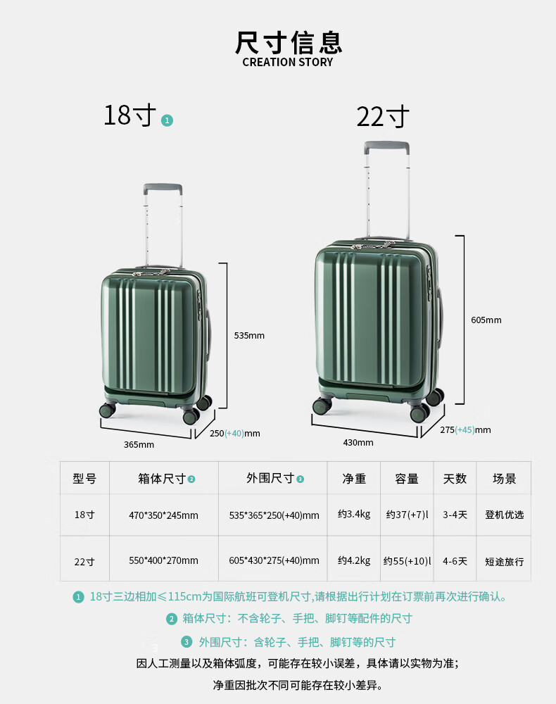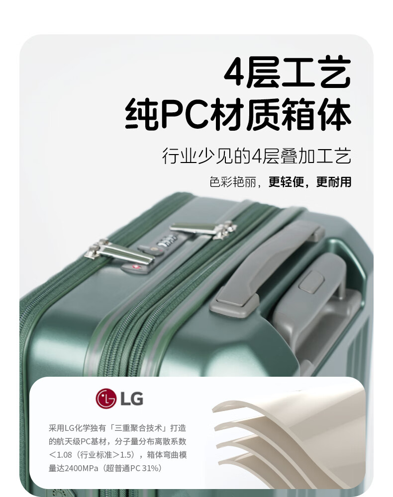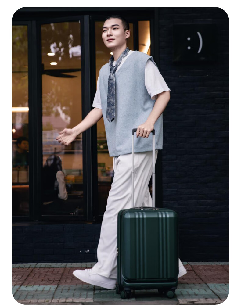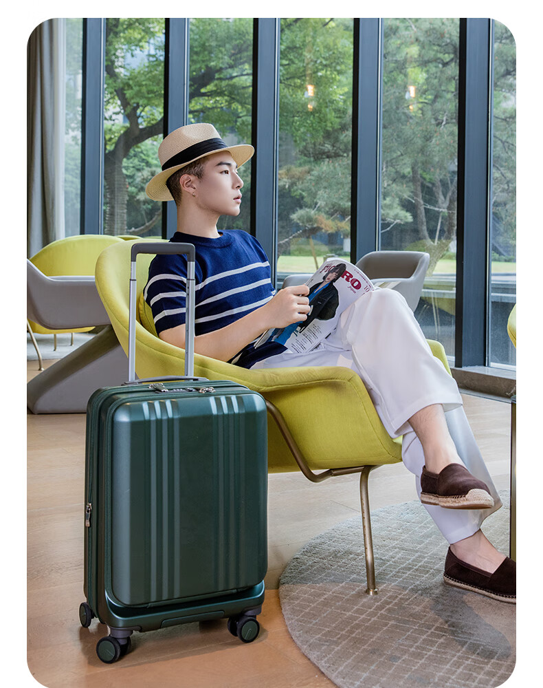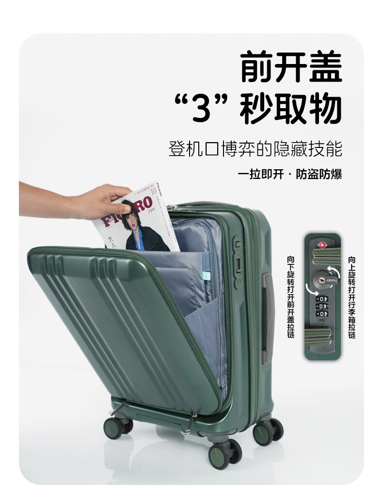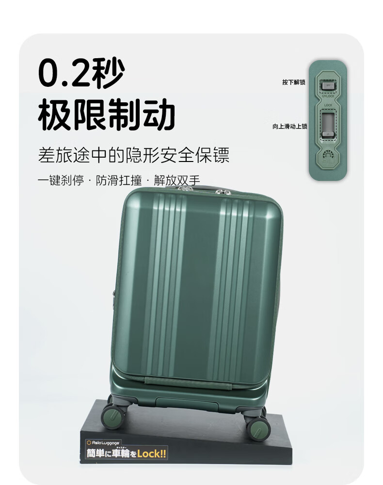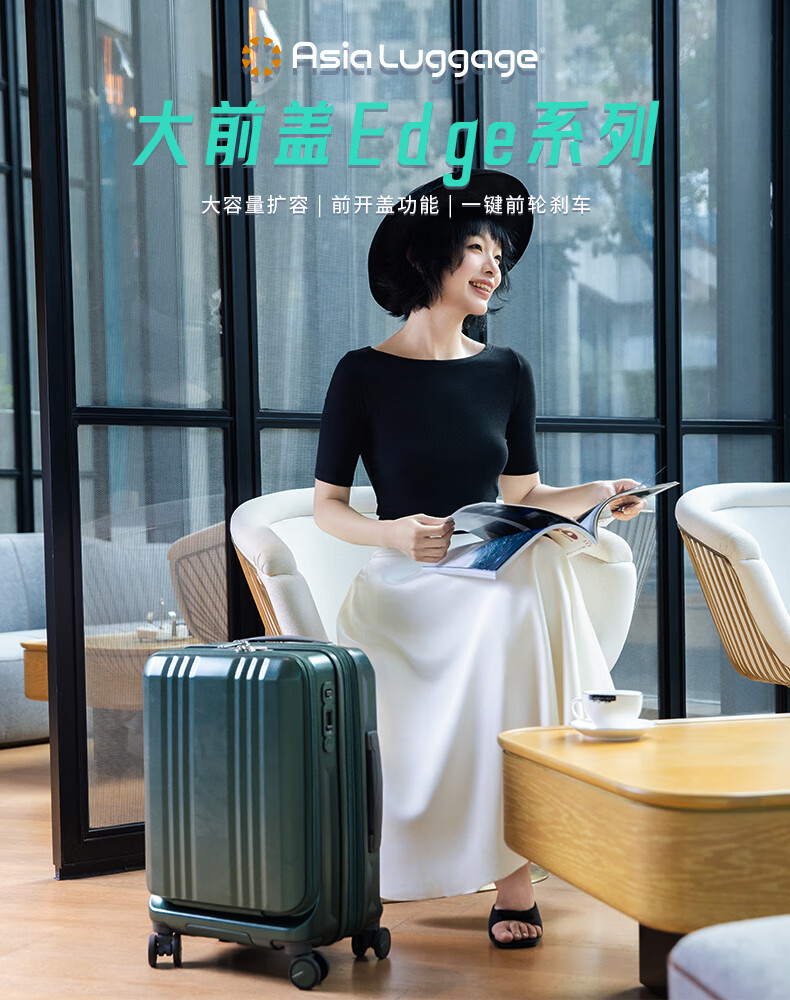 Asia Luggage大前盖日本Edge系列扩容静音刹车万向轮出差行李箱登机箱电脑 橄榄绿 22英寸 5-7天出行,托运箱