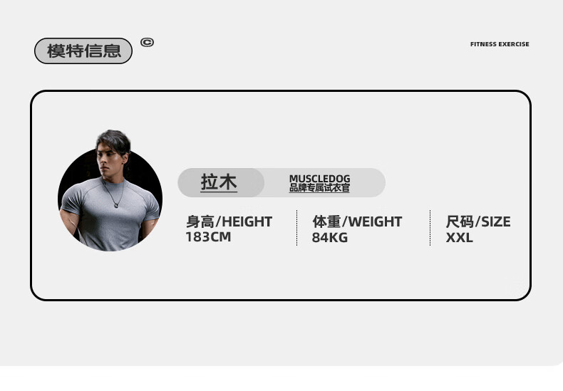 MUSCLE DOG肌肉狗 运动T恤男2025新款轻量7A抗菌皮UPF50印花短袖健身训练服 深灰色 3XL