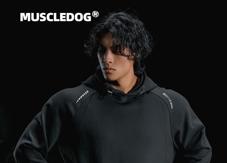 MUSCLE DOG肌肉狗 运动卫衣男秋季新款美式连帽保暖休闲训练健身上衣 黑色 3XL