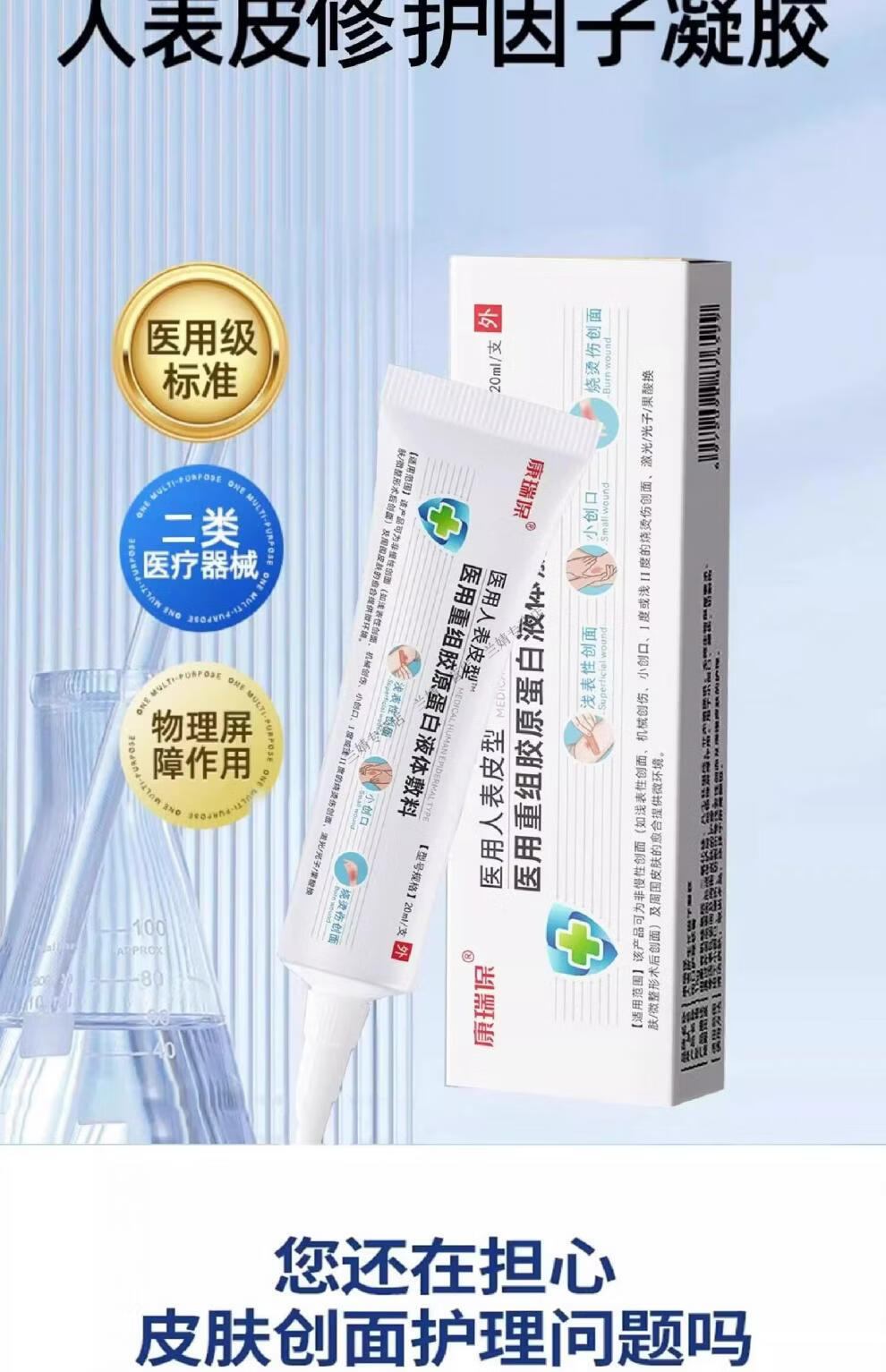 MRYU易孚人表皮生长凝胶重组因子医用皮肤修复 2支【持续装】第二件半价 官方直售 京质保障