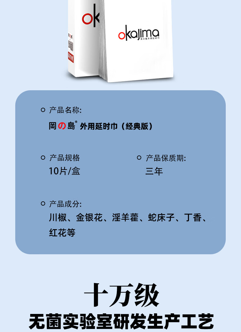 冈岛正品延时湿巾草本植物萃取不麻木男士外用情趣用品延长持久 冈岛经典款10片装