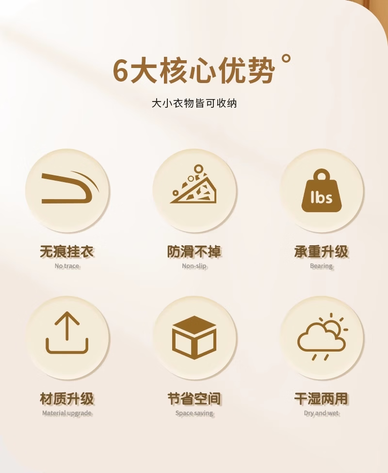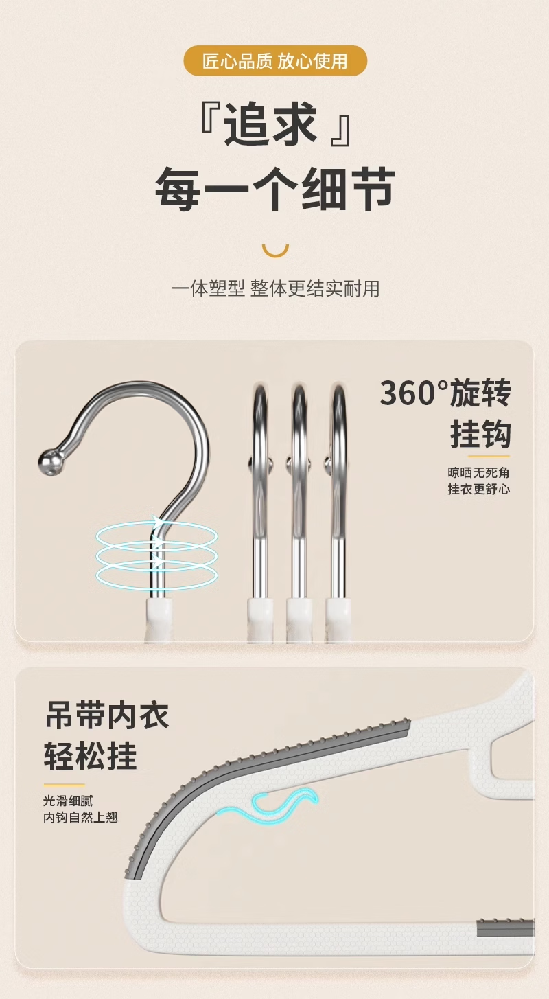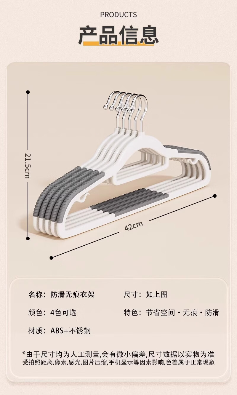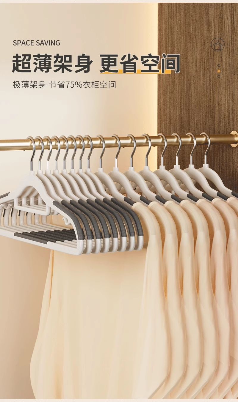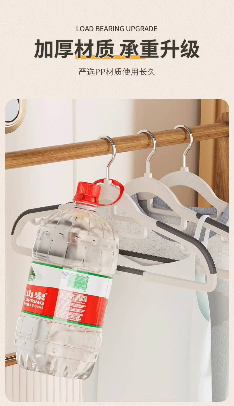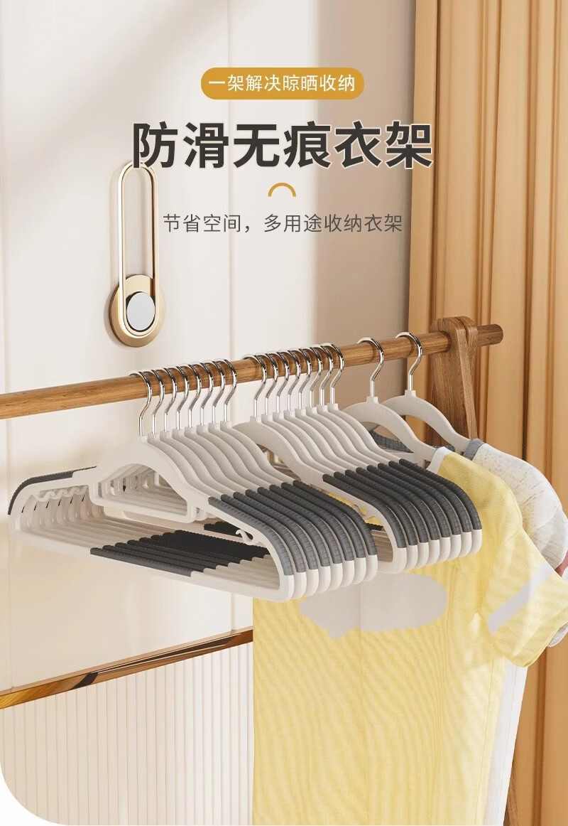 米卡博衣架家用挂衣无痕防肩角衣撑晾衣服防滑护衣架子衣柜衣挂撑子挂架 【防滑无痕-双位款】灰色 1支20个