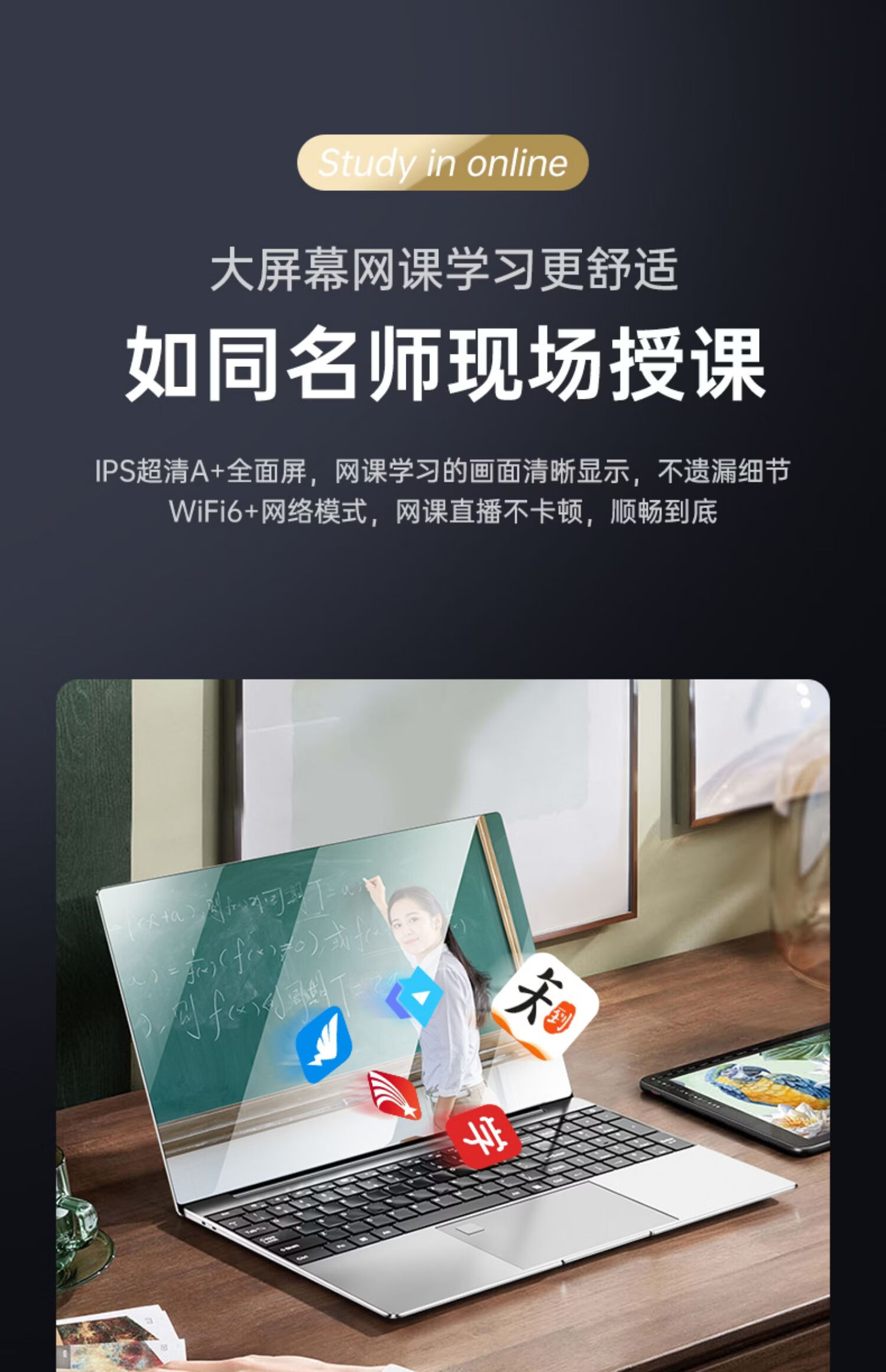 智美派2026新款英特尔15.6英寸高性能笔记本电脑轻便办公学生学习编程电竞游戏上网本酷睿i7级手提电脑 银色 512G+16G【送鼠标+支架+电脑包】