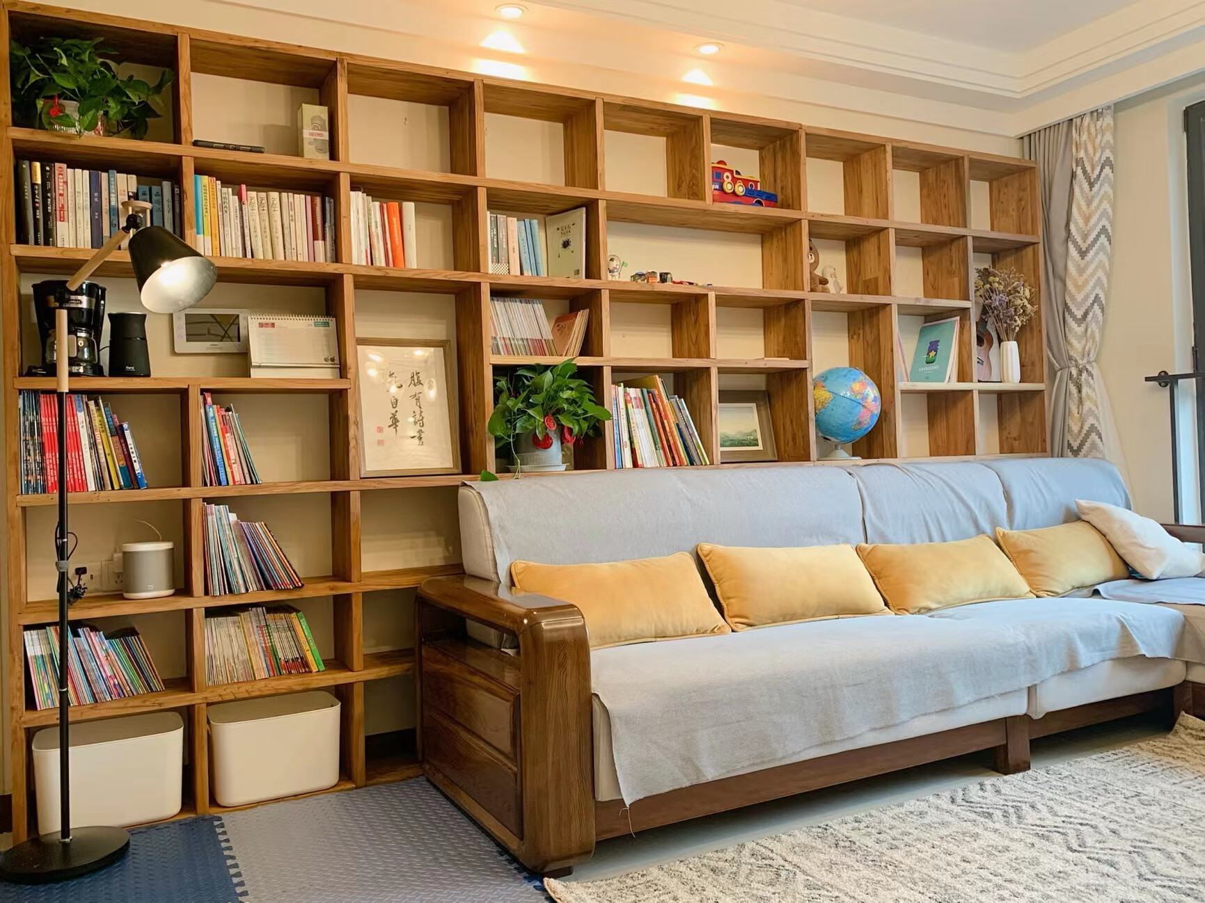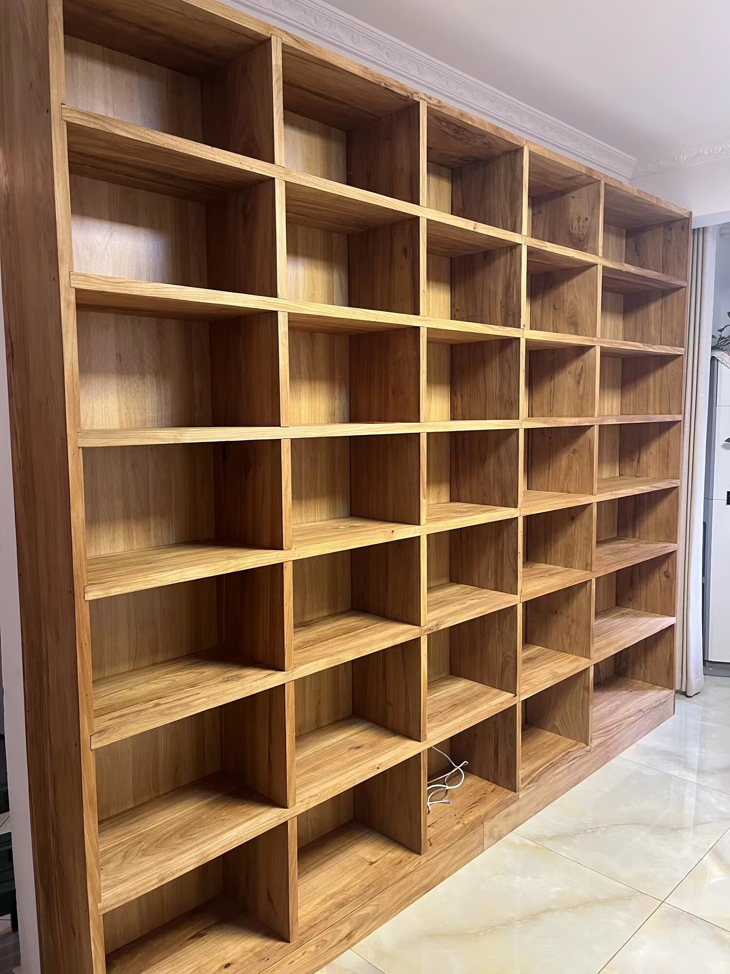 定制老榆木书架落地书柜隔断吊柜实木书柜格子架置物定做满墙书架 原木 3cm厚老榆木板定制设计