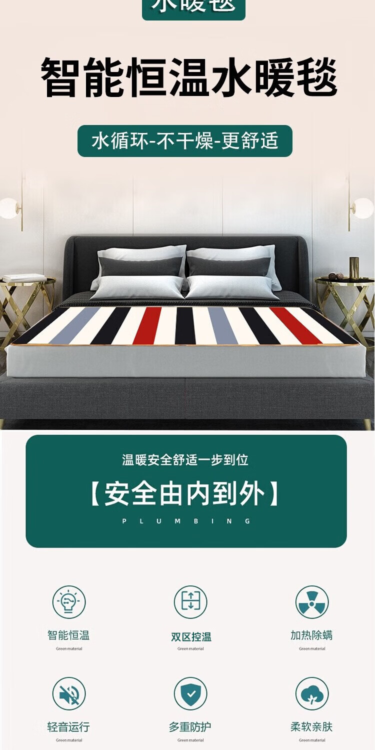 贵人梦水暖电热毯(长1.8米宽1.5米)双控调温定时断电家用水循环电褥子 水暖舒适面料/高低档 150cm*70cm单控