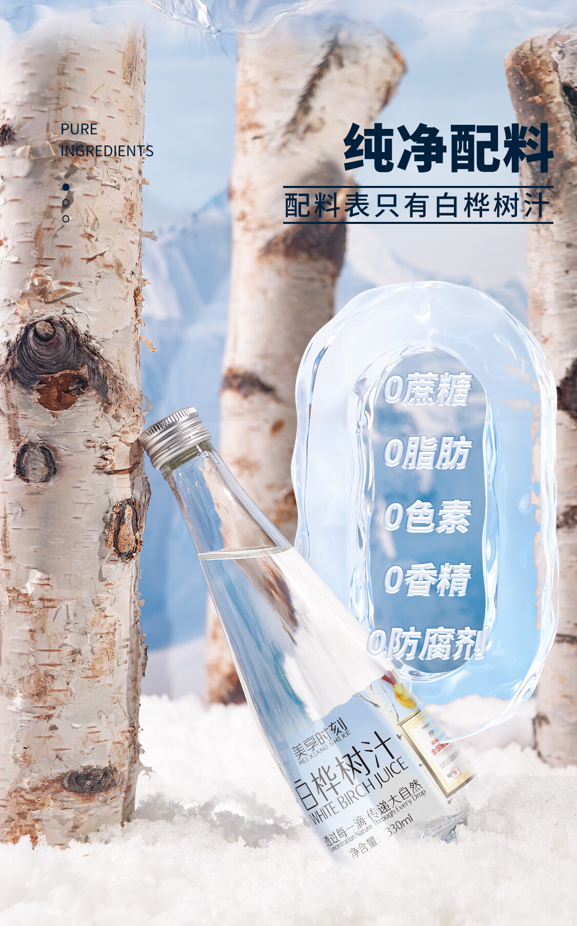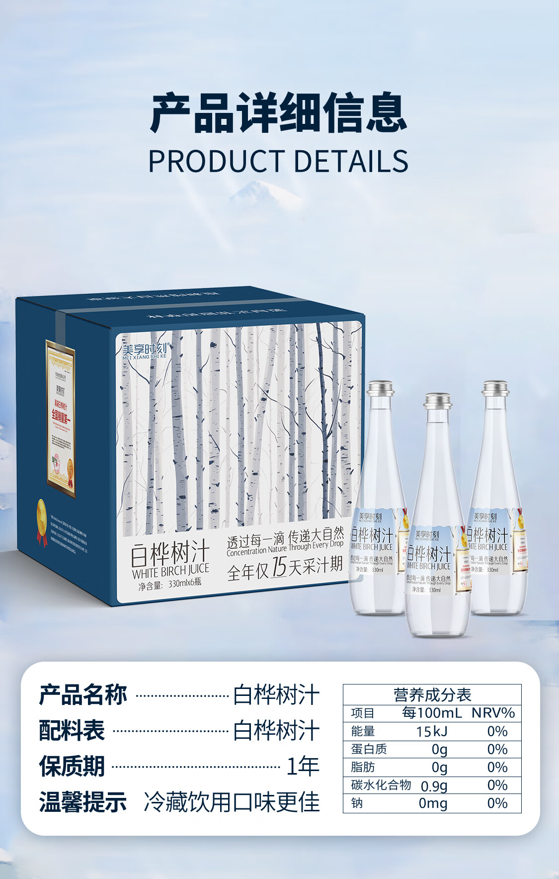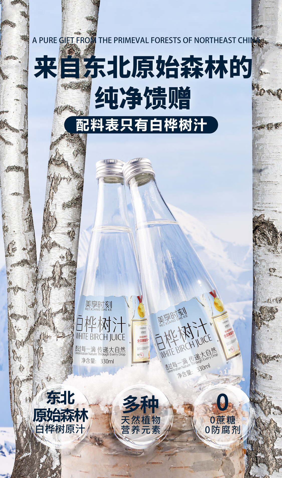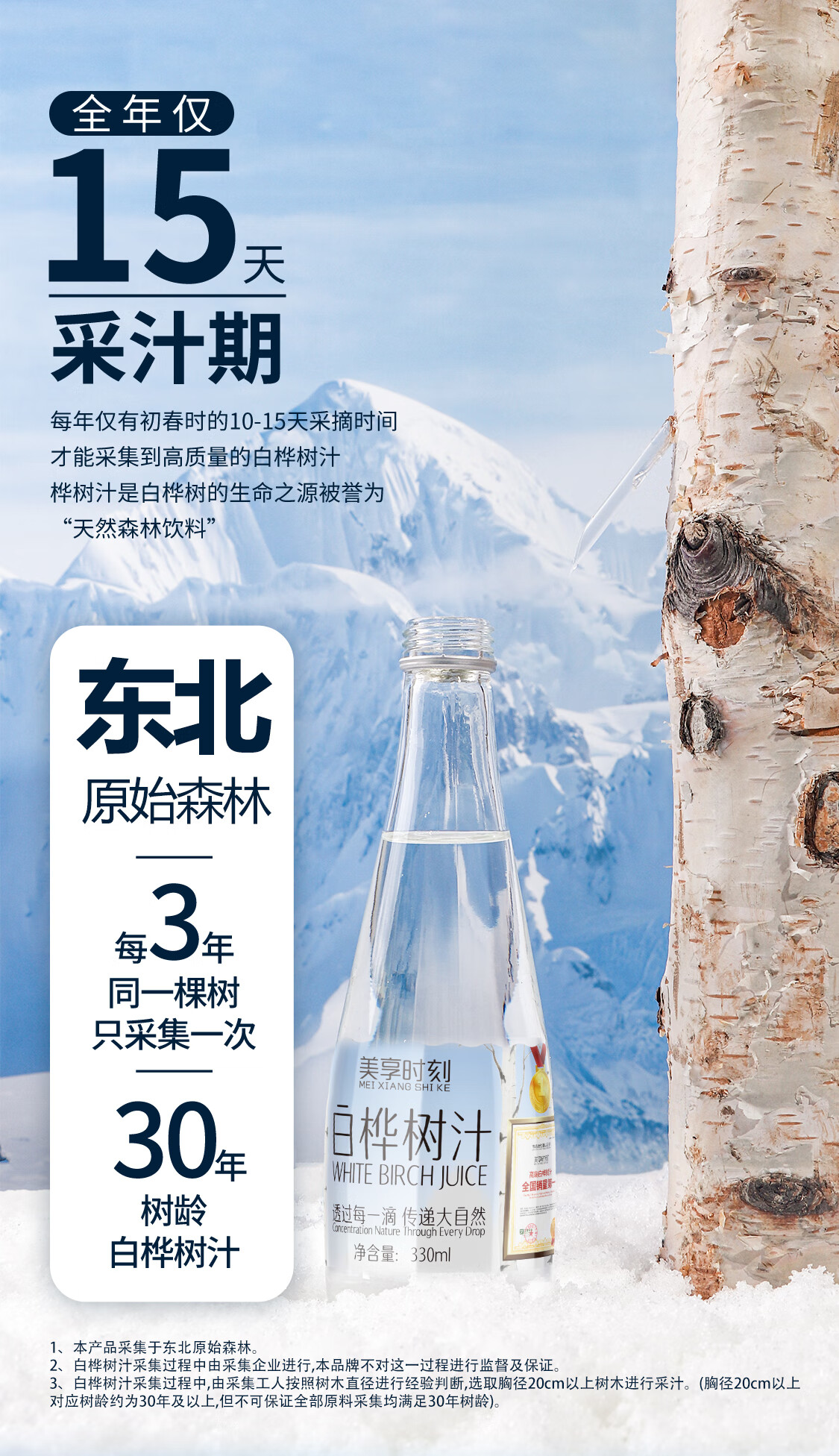 【地标甄选】美享时刻小兴安岭白桦树汁NFC100%原汁330ml*6瓶 白桦树汁330ml*24瓶/4箱