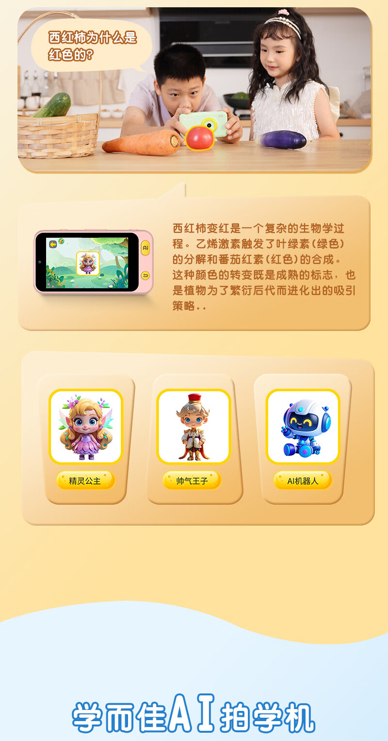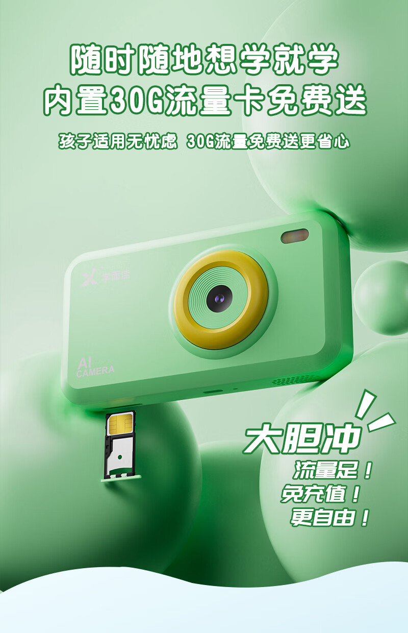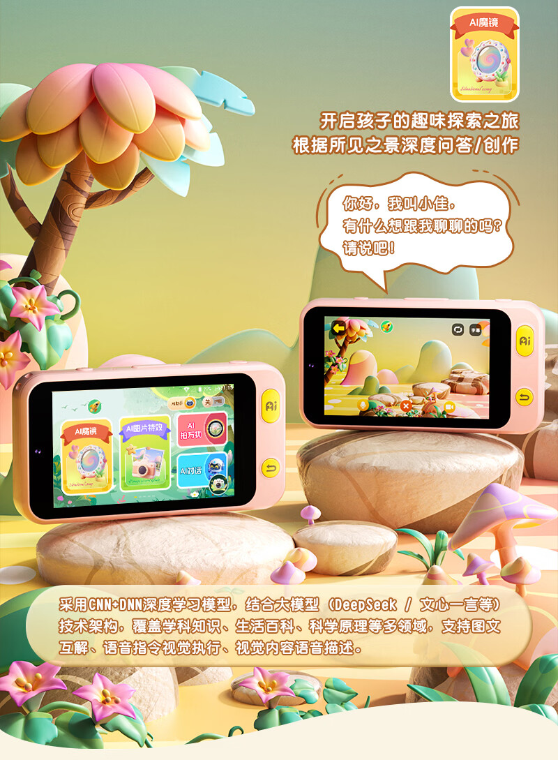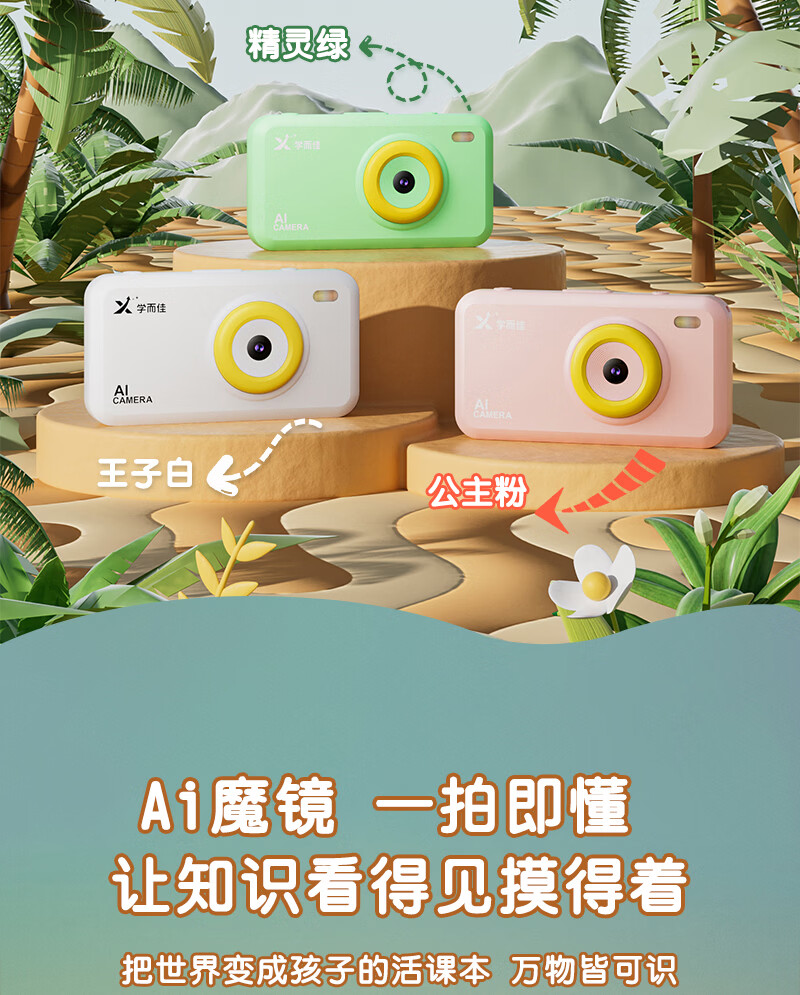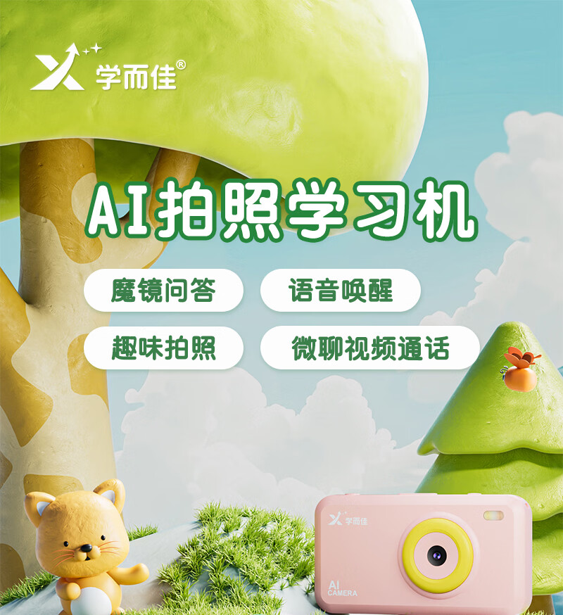学而佳AI拍学机高像素儿童拍照人工智能玩具口袋学习机英语早教机故事机触屏听力宝点读机家教机学练机 公主粉 K7(32G)送1年无限流量