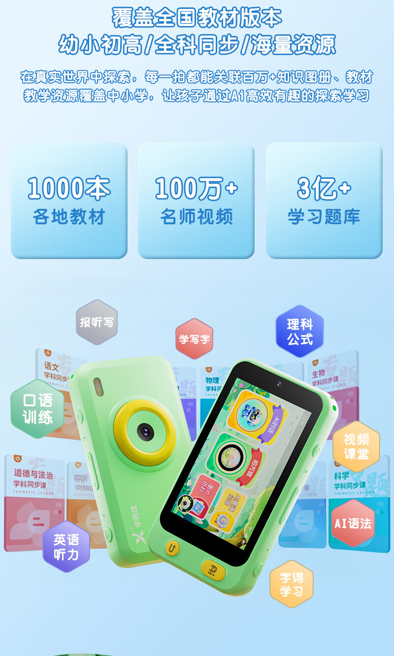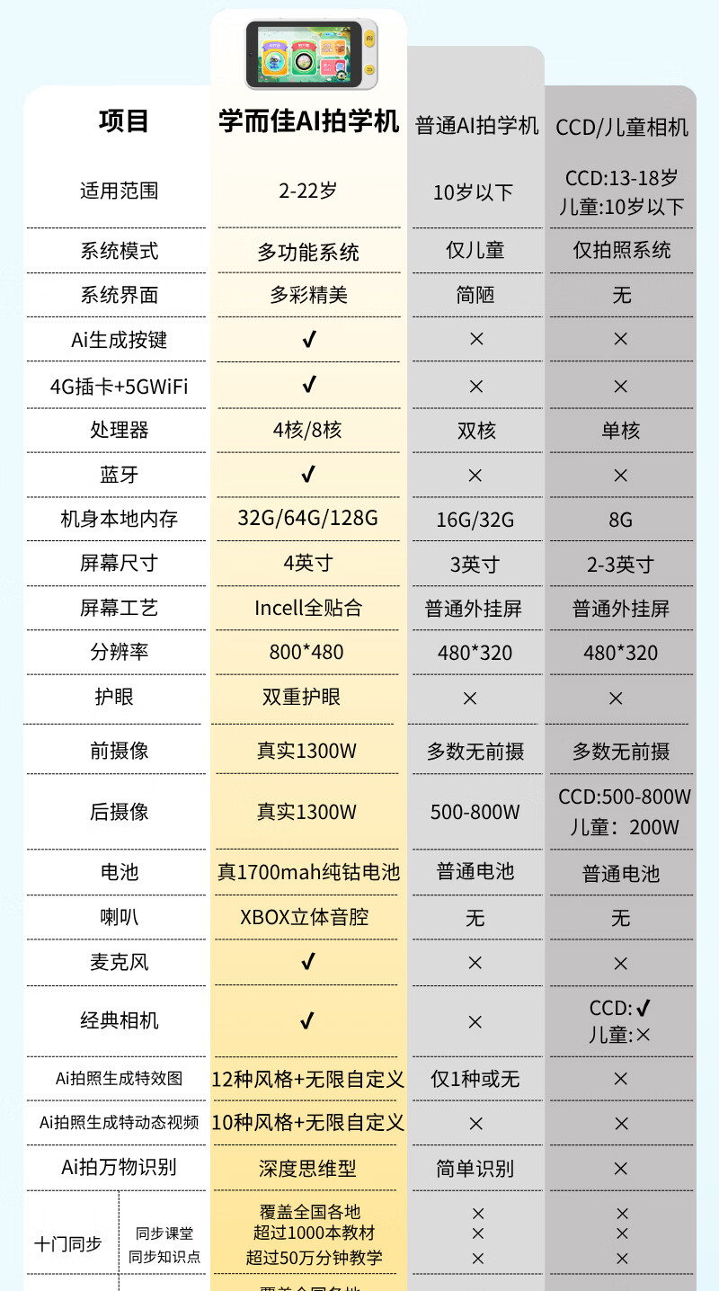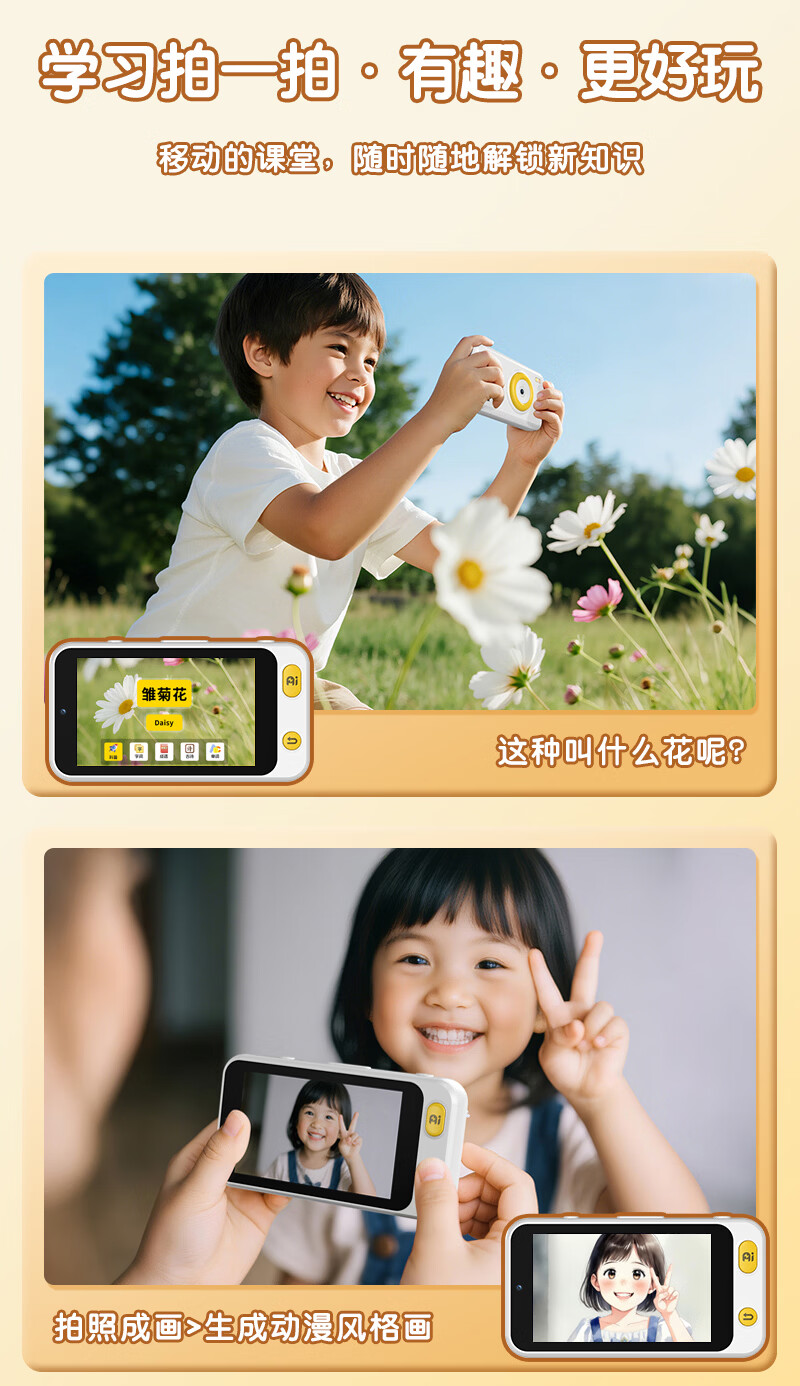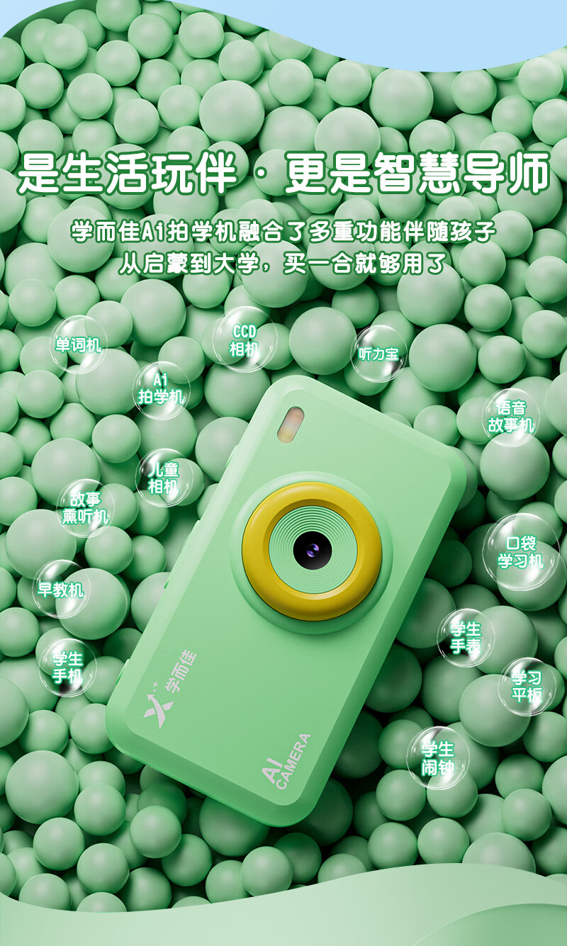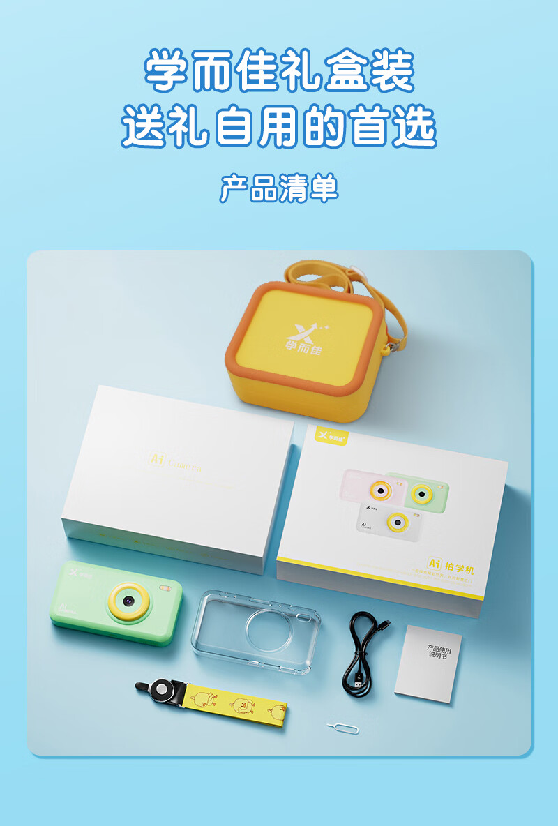 学而佳AI拍学机高像素儿童拍照人工智能玩具口袋学习机英语早教机故事机触屏听力宝点读机家教机学练机 公主粉 K7(32G)送1年无限流量
