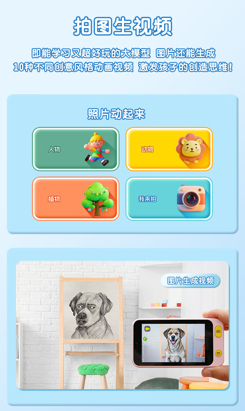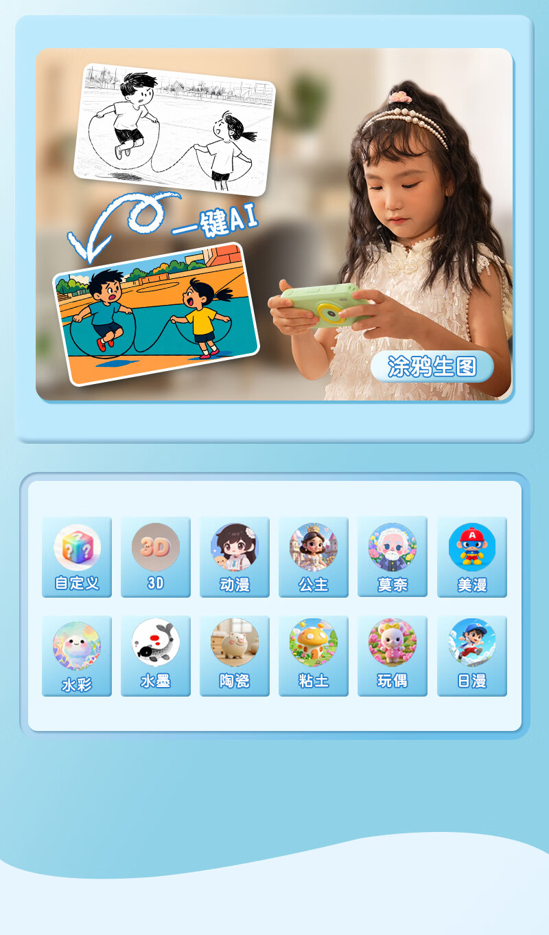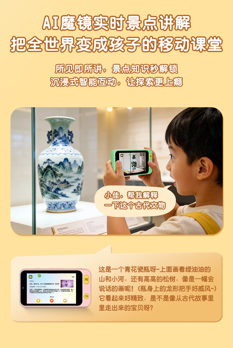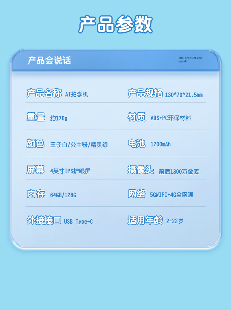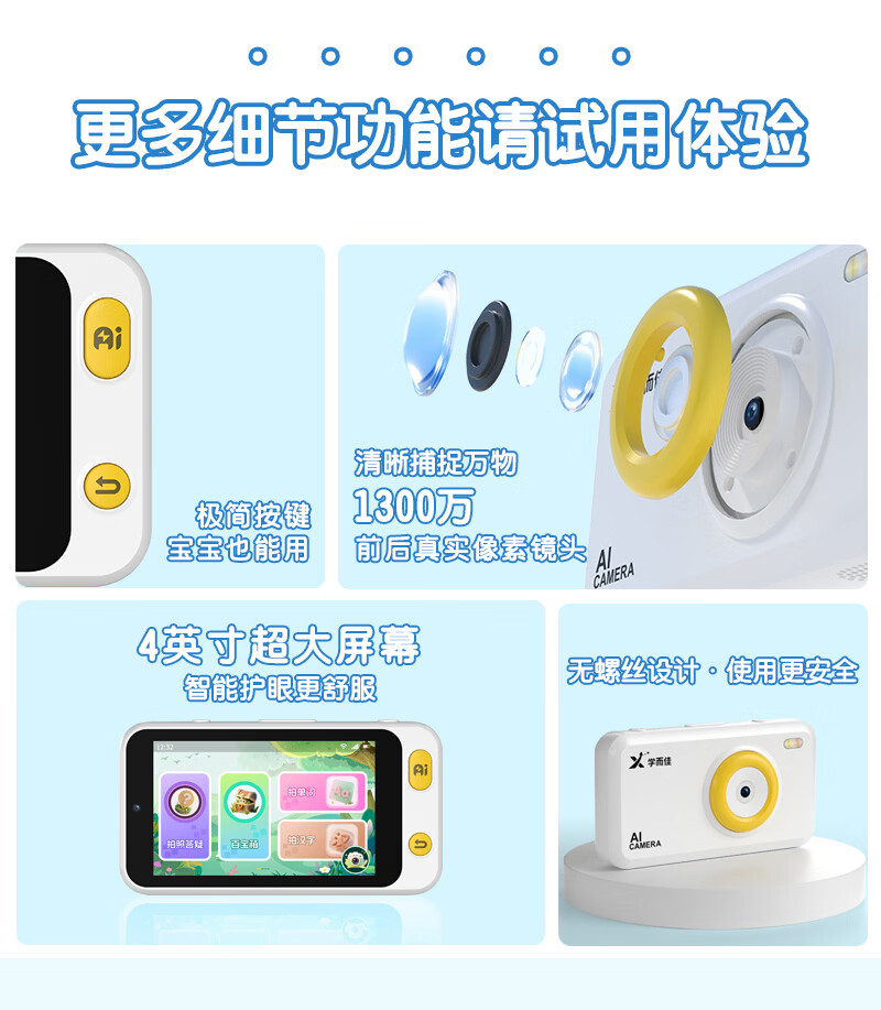 学而佳AI拍学机高像素儿童拍照人工智能玩具口袋学习机英语早教机故事机触屏听力宝点读机家教机学练机 公主粉 K7(32G)送1年无限流量