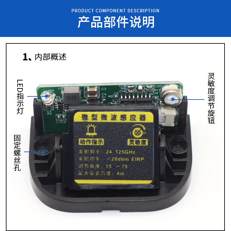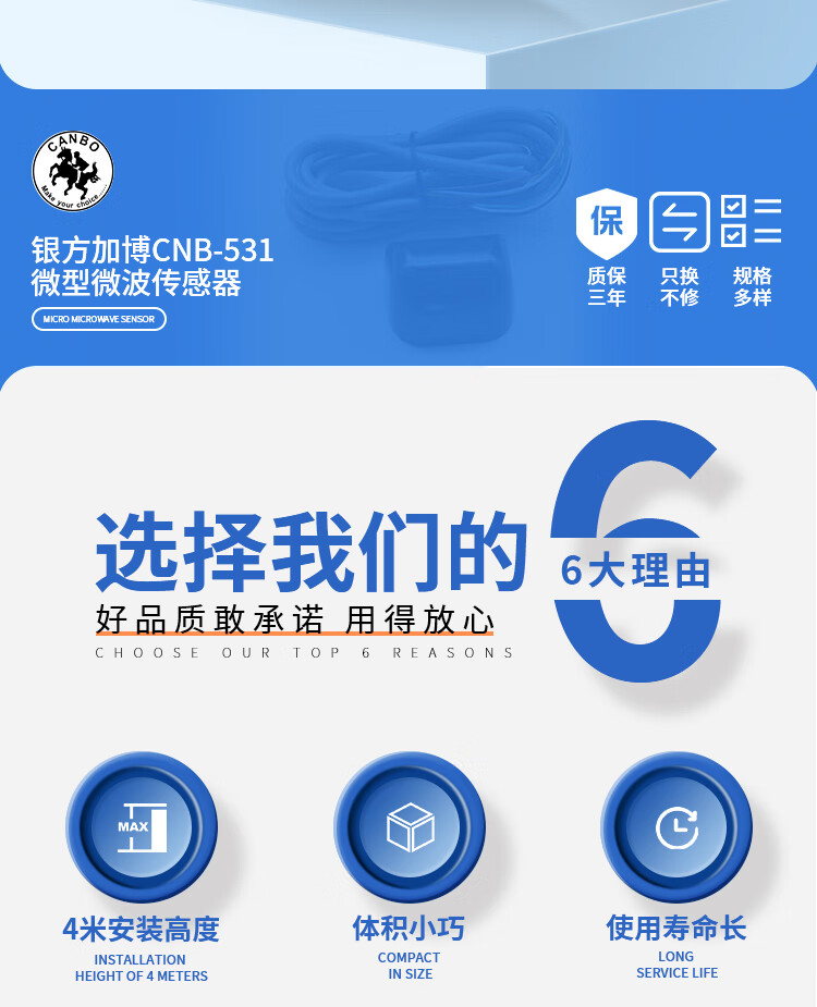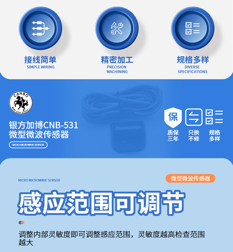 星柏龙感应门微型微波传感器自动门进出迷你感应小探头531玻璃门配件 531D单向微型微波传感器