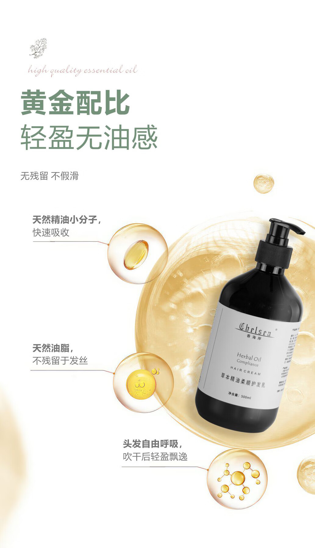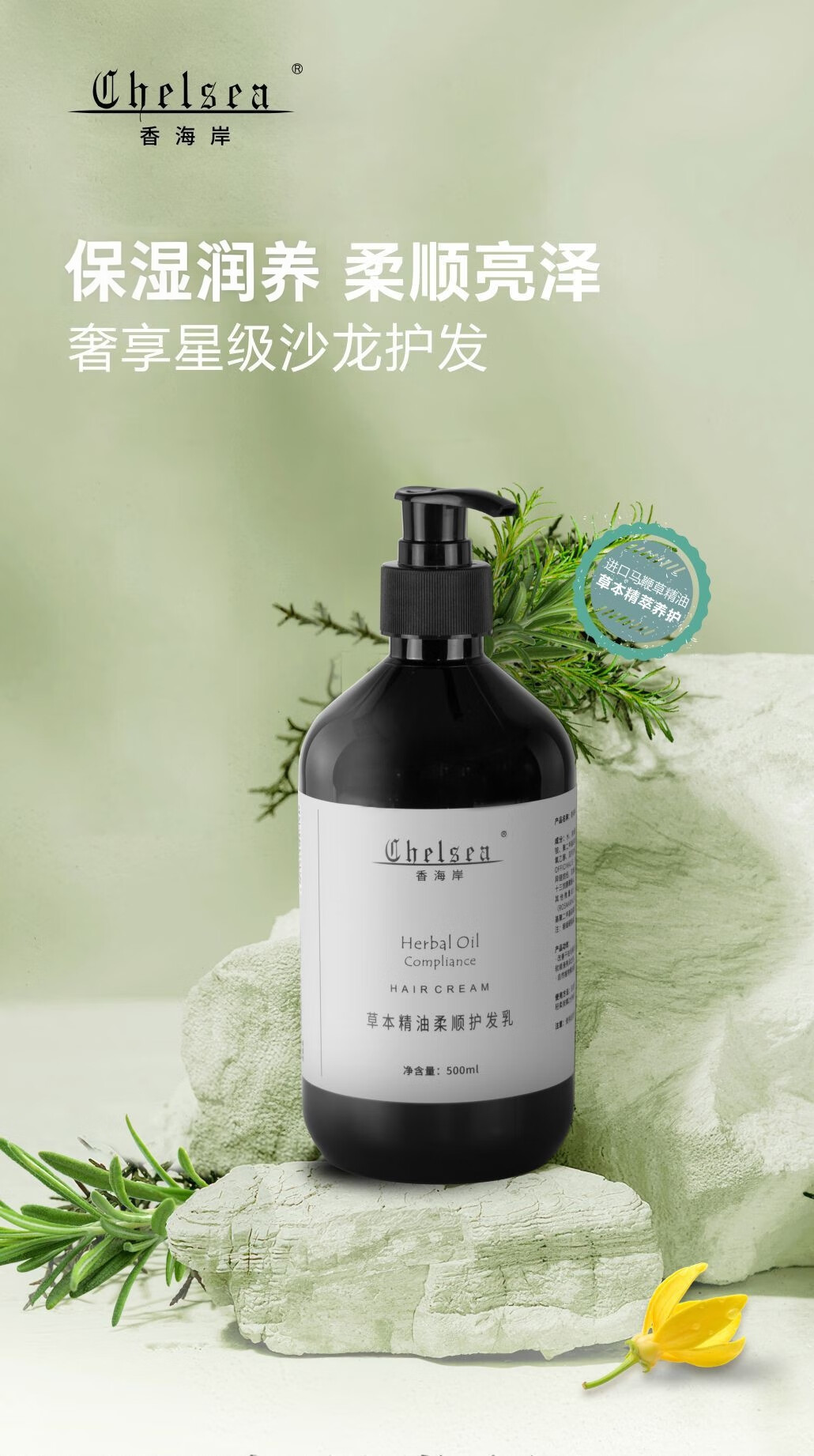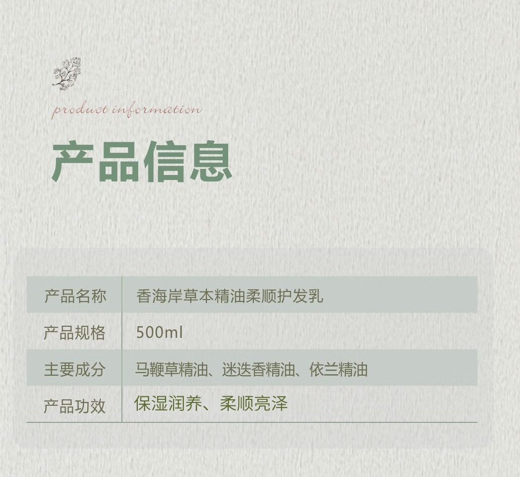 芳香世家香海岸精油洗发乳护发乳 清爽保湿柔顺秀发元旦礼物 草本精油润发乳轻盈护发500ml
