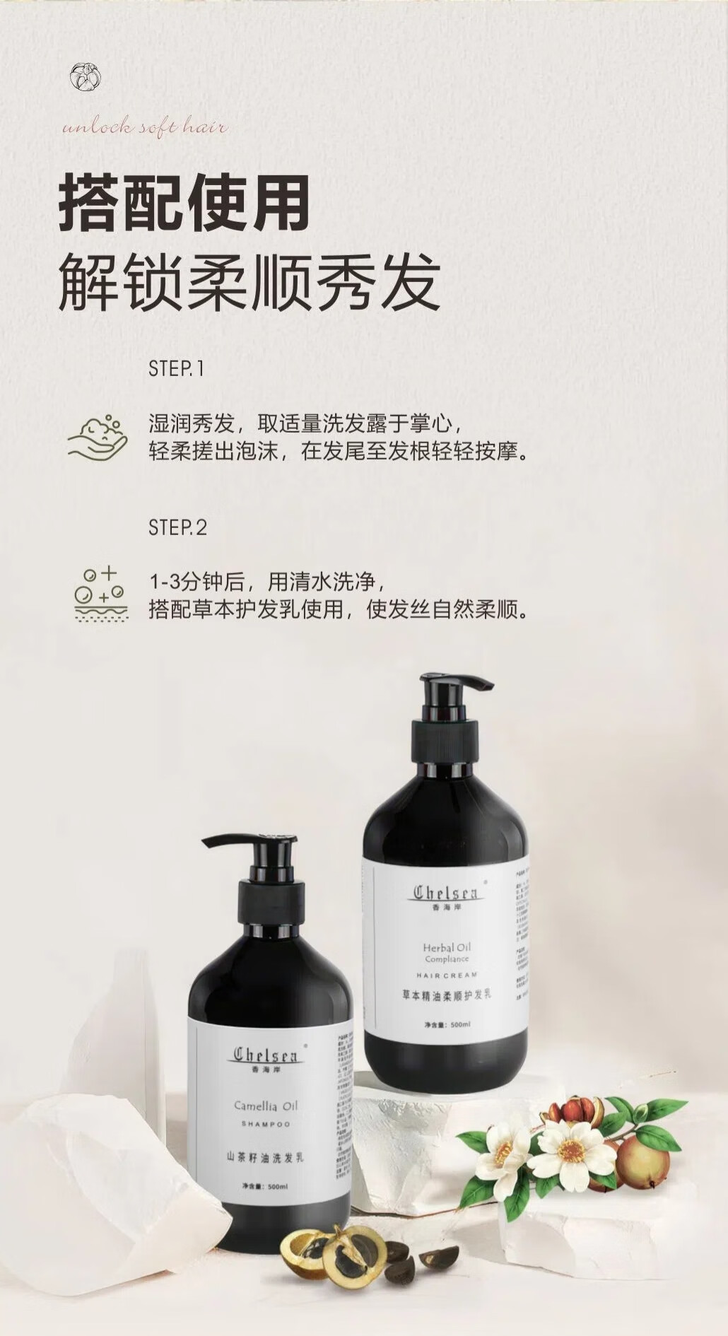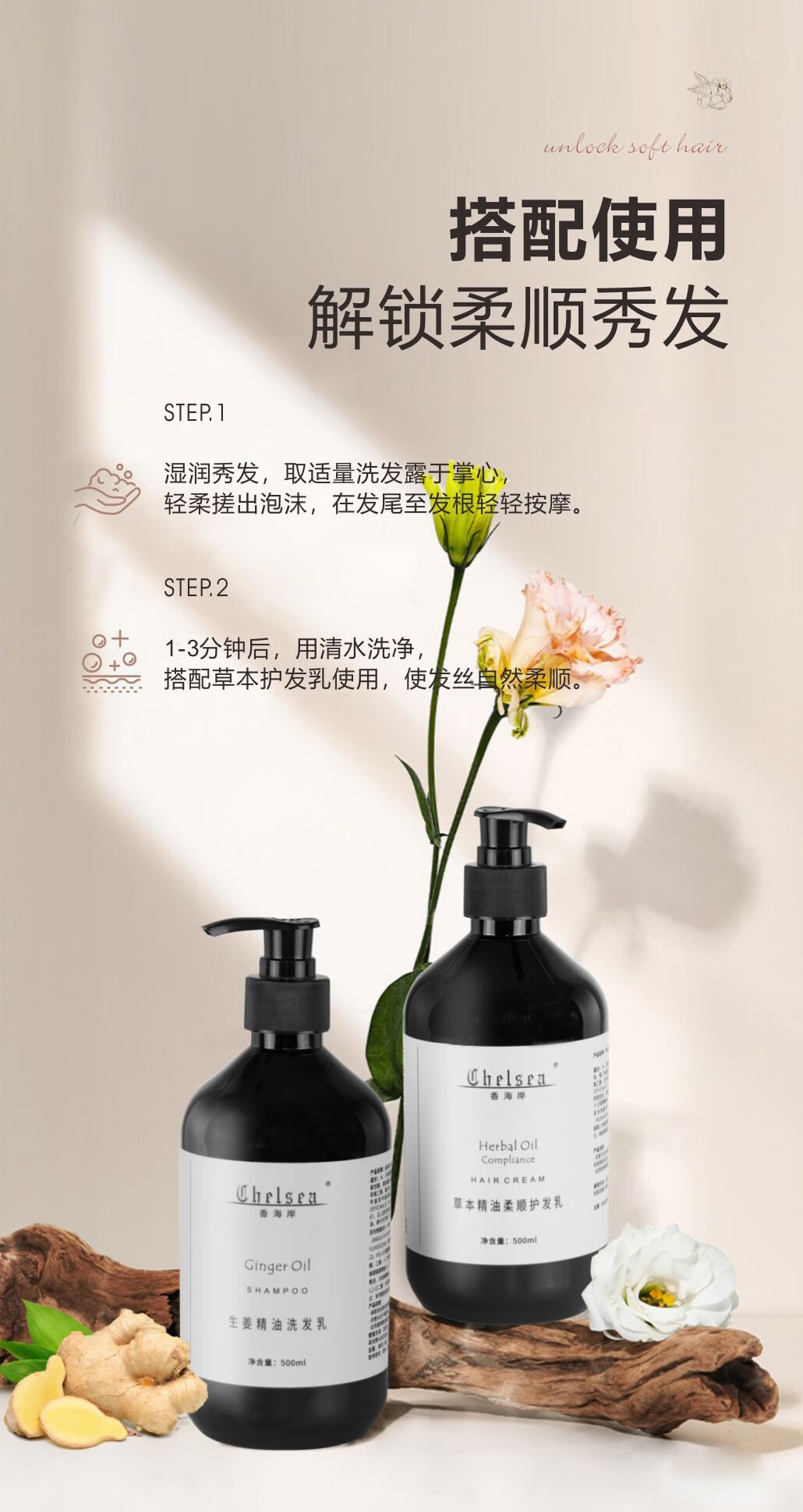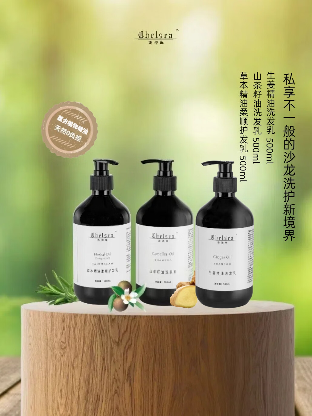 芳香世家香海岸精油洗发乳护发乳 清爽保湿柔顺秀发元旦礼物 草本精油润发乳轻盈护发500ml