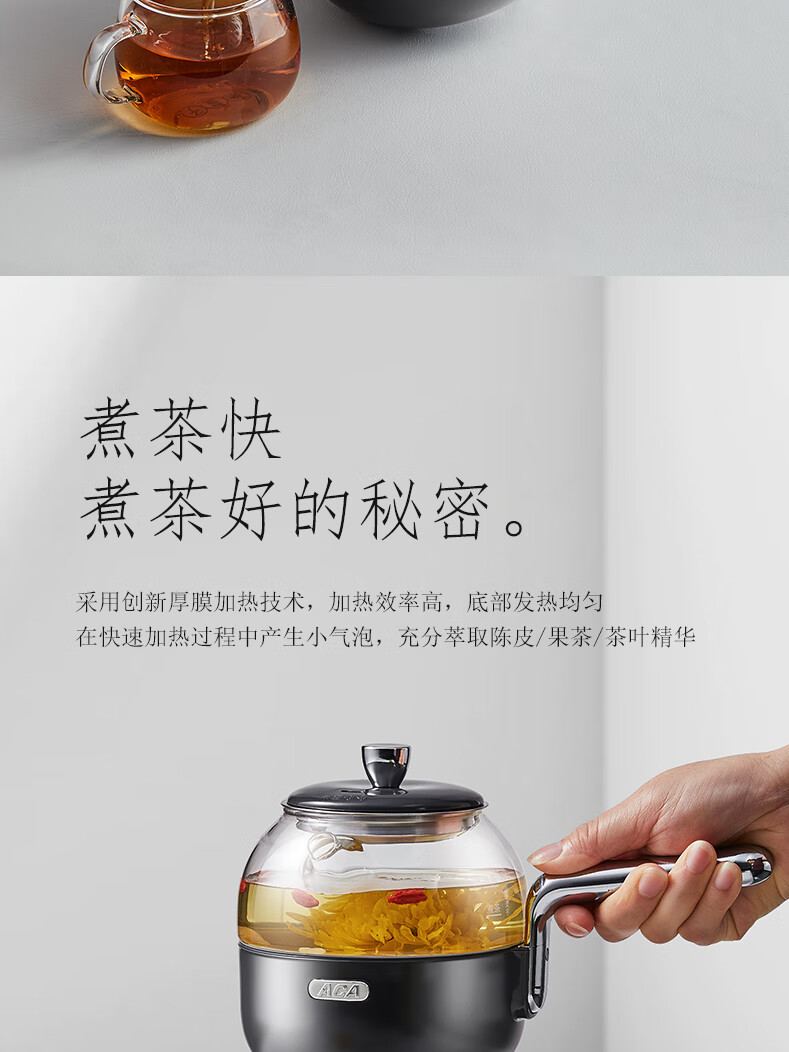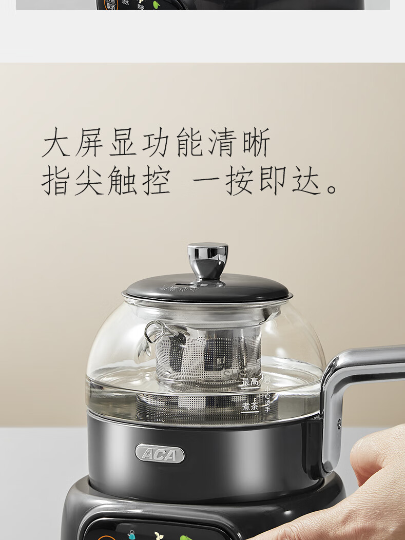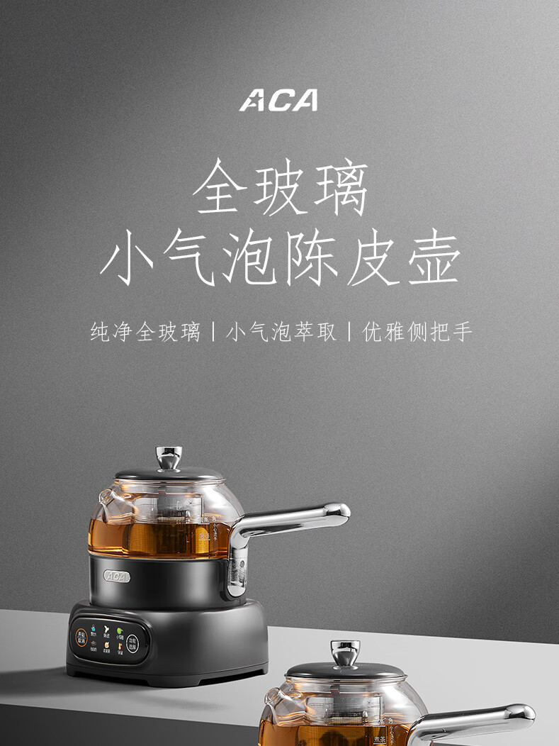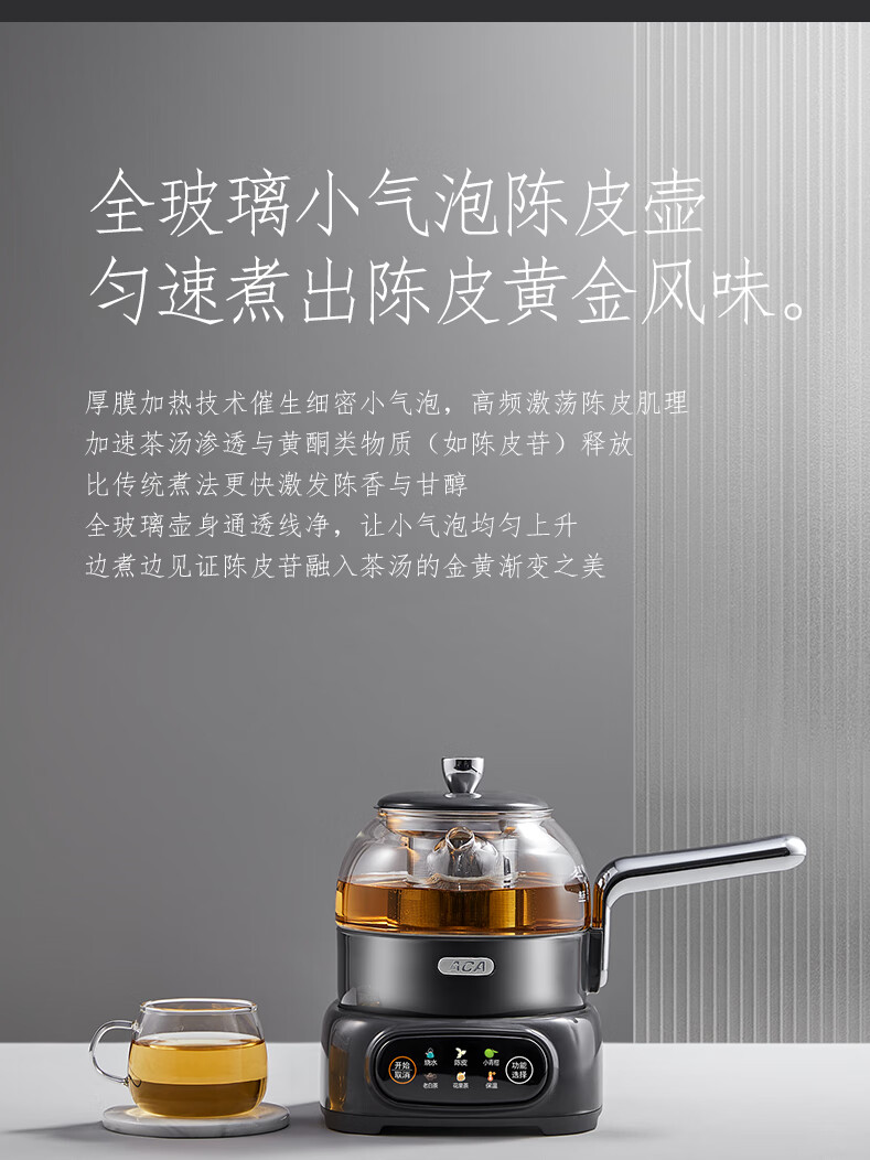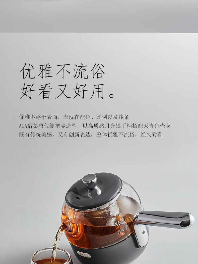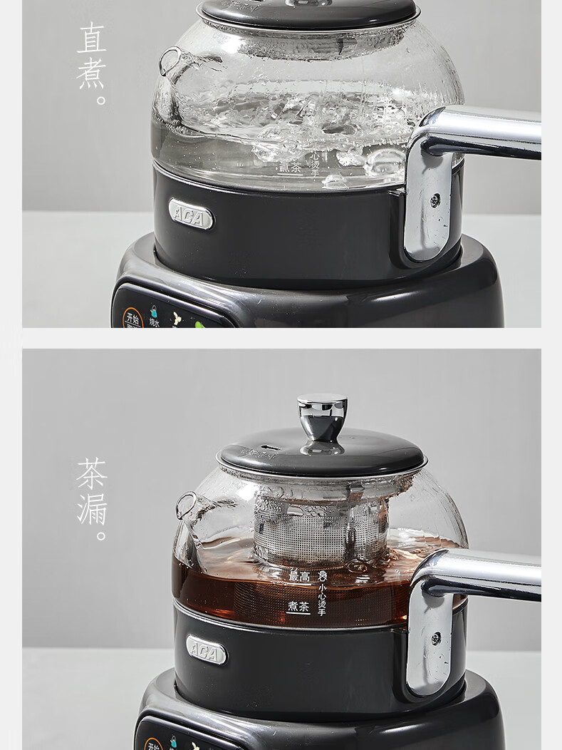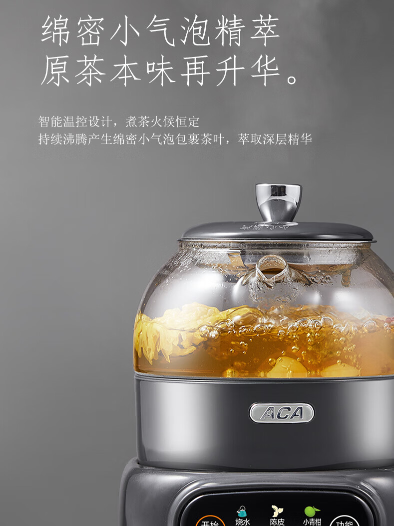 ACA【纯钛全玻璃】高端全玻璃纯钛煮茶壶办公家用茶壶多功能自动保温煮茶自动煮茶器养生壶烧水壶 铁灰色(钛盖+钛圈+钛茶漏+小钛杯2个)