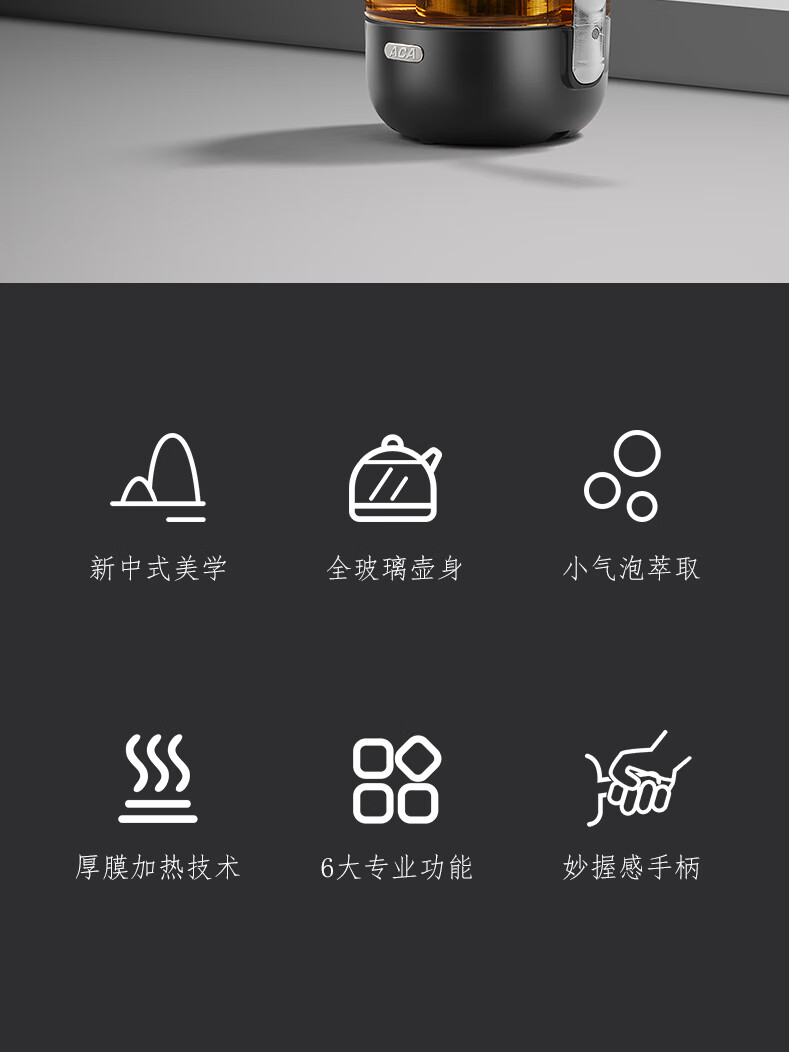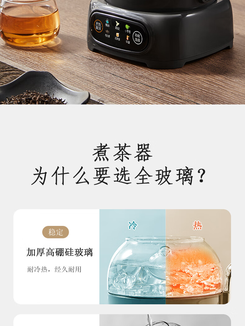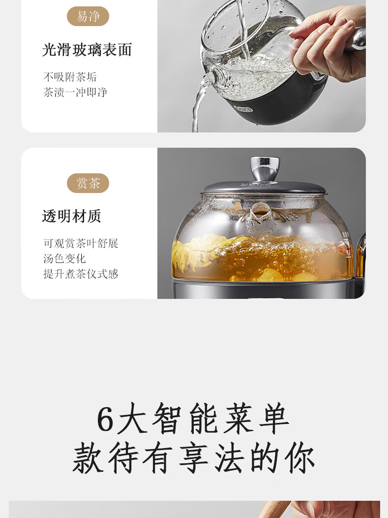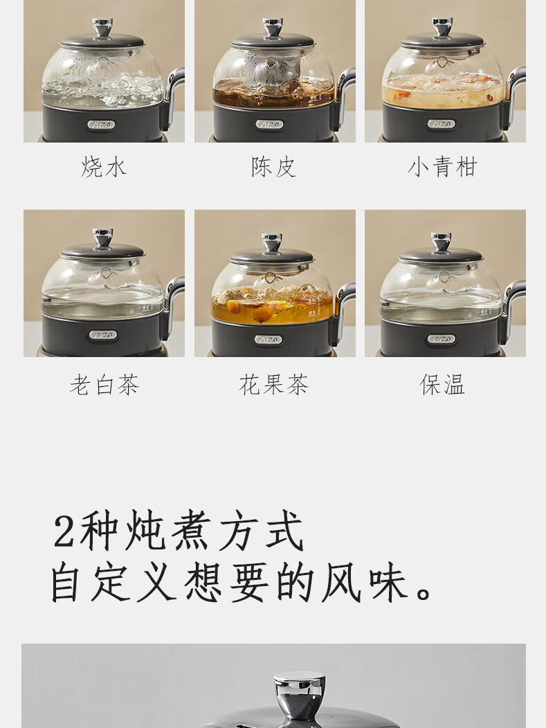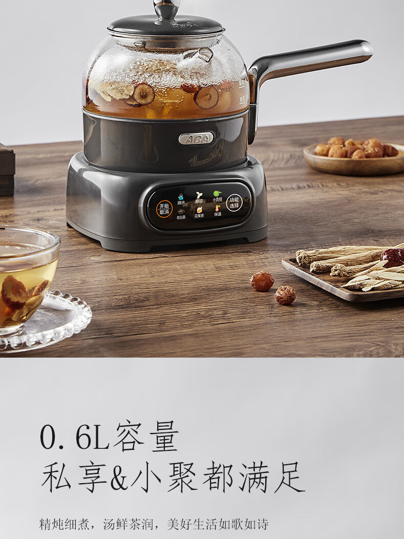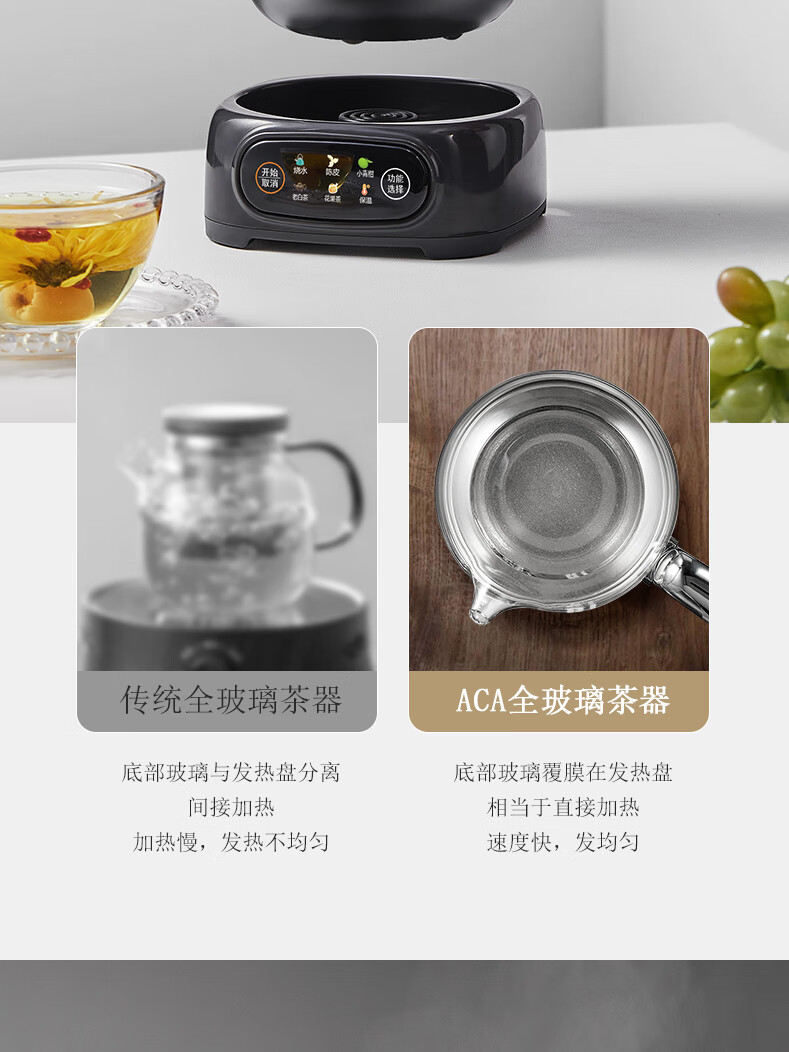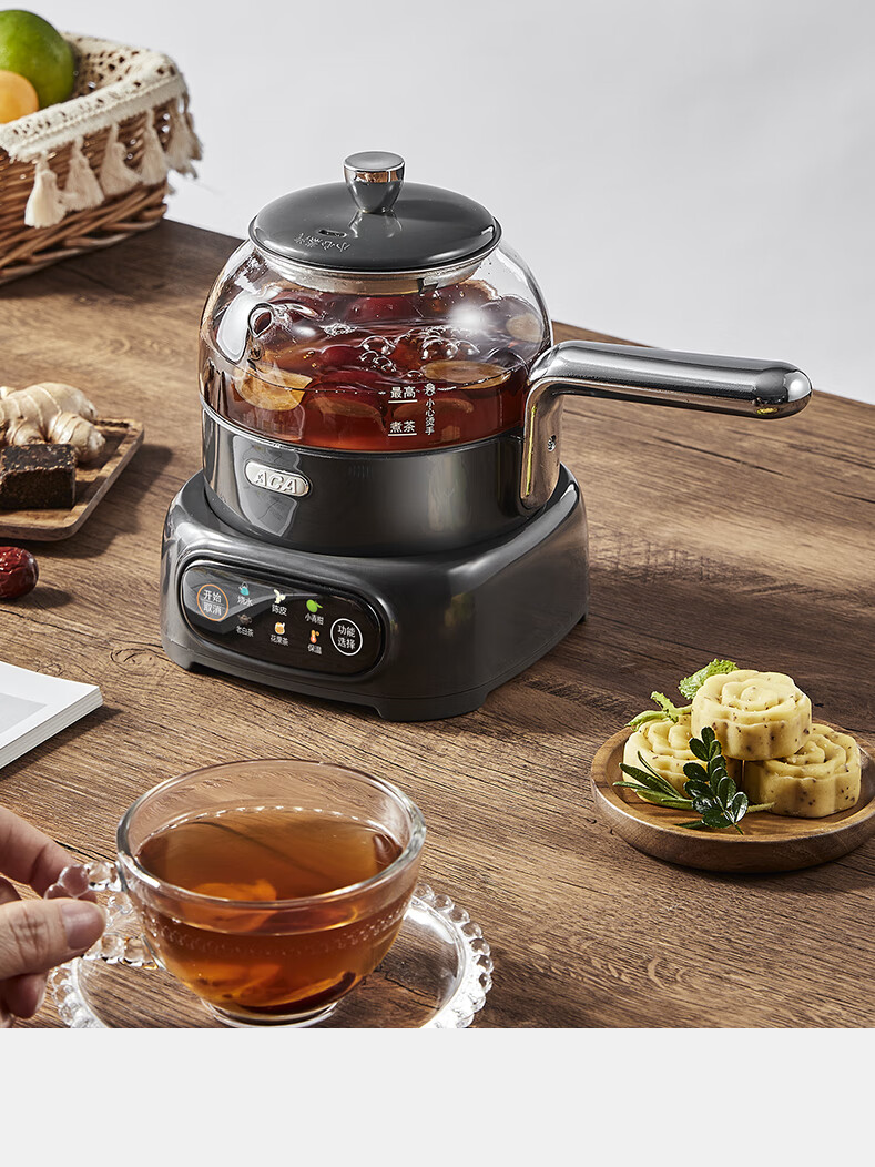 ACA【纯钛全玻璃】高端全玻璃纯钛煮茶壶办公家用茶壶多功能自动保温煮茶自动煮茶器养生壶烧水壶 铁灰色(钛盖+钛圈+钛茶漏+小钛杯2个)