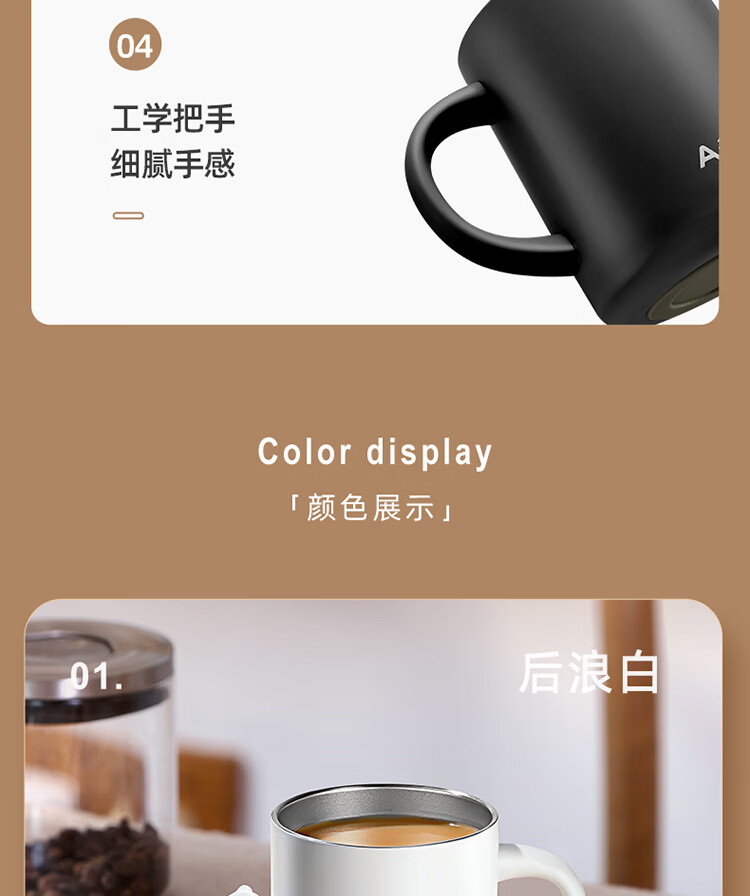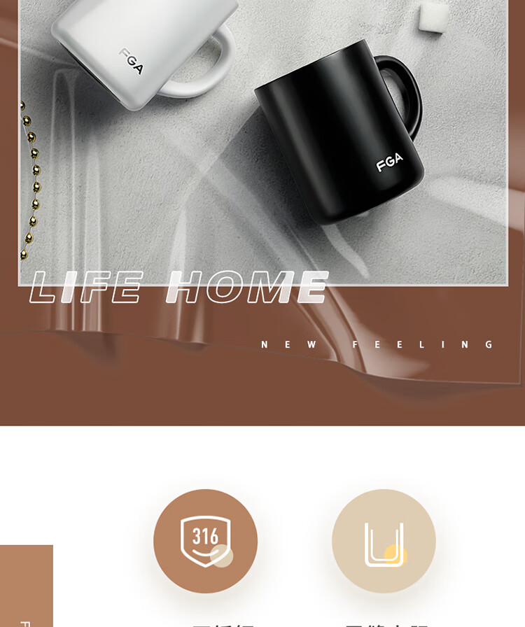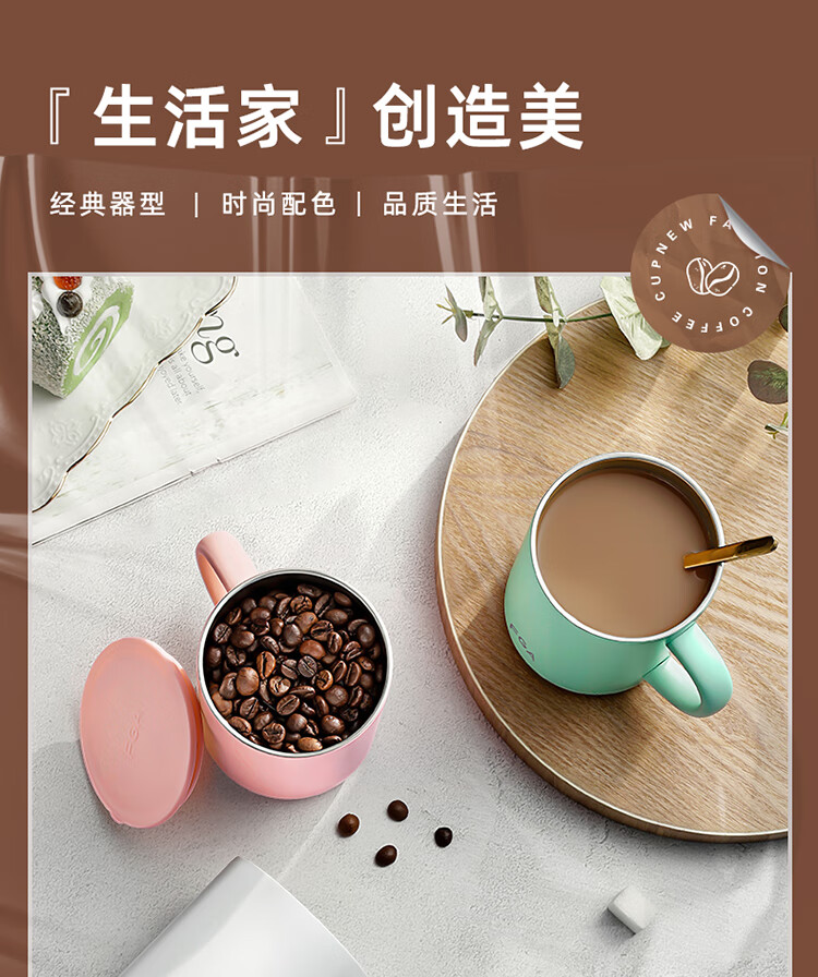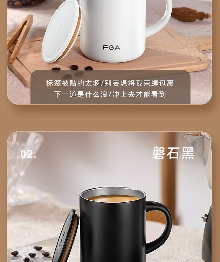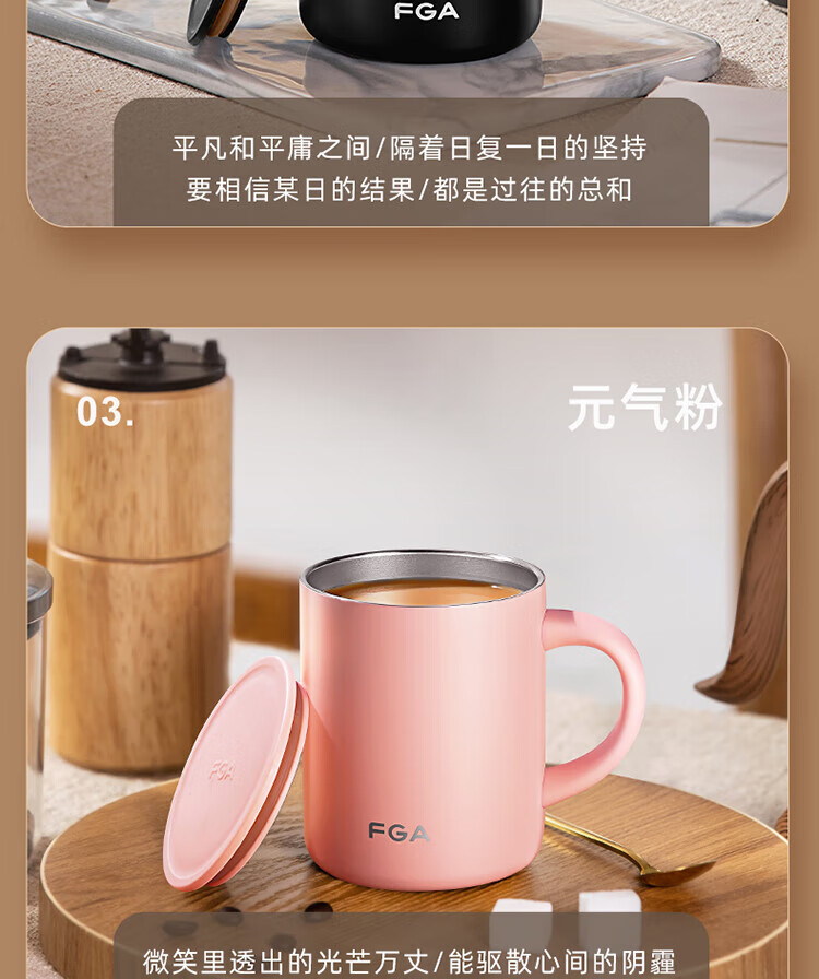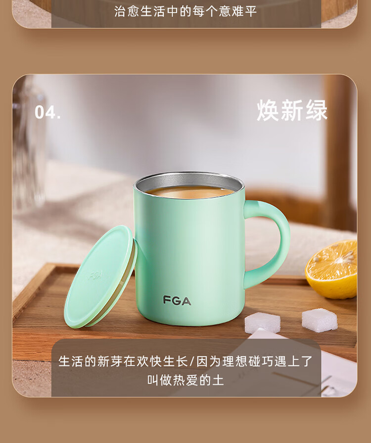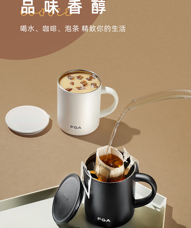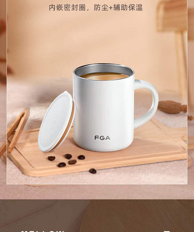 富光不锈钢保温杯马克水杯子大容量办公泡茶咖啡男女士便携简约带盖 白色420ml