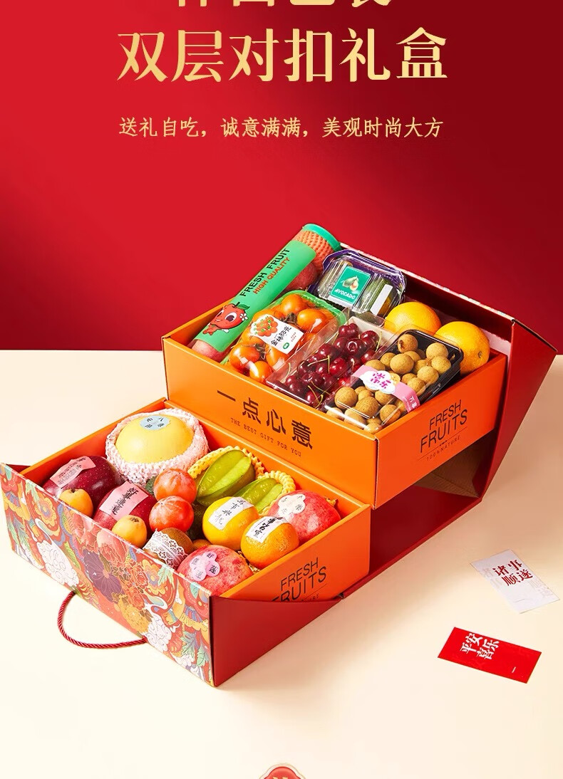 京挑果双层水果礼盒高端送礼应季水果混搭果篮中秋年货春节长辈礼品送礼 手提双层品质装【10-11斤】