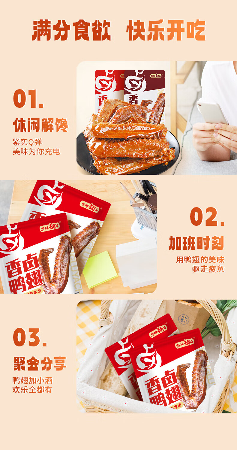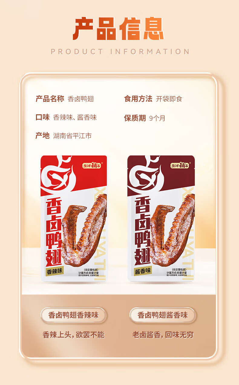 盐津铺子香卤鸭翅鸭肉熟食卤味零食夜宵下酒菜即食食品小吃解馋 180g香卤鸭翅(混合味)(10个)